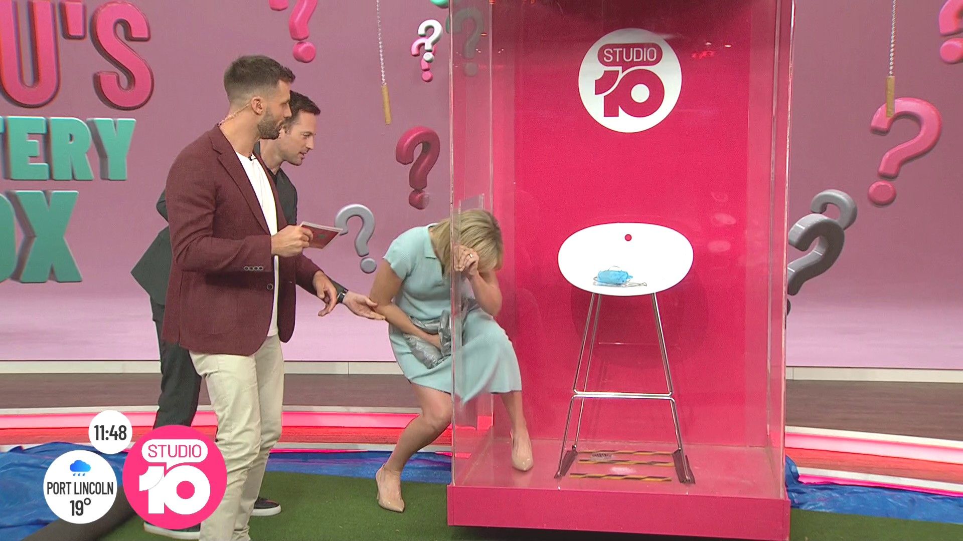 Zygon wrote: very nice, sexy leg action Angela too I'm sure ch10 put those logos in the way on purpose  narly  I missed the show today but Angela never fails in the leg action but rare from Sarah these days.