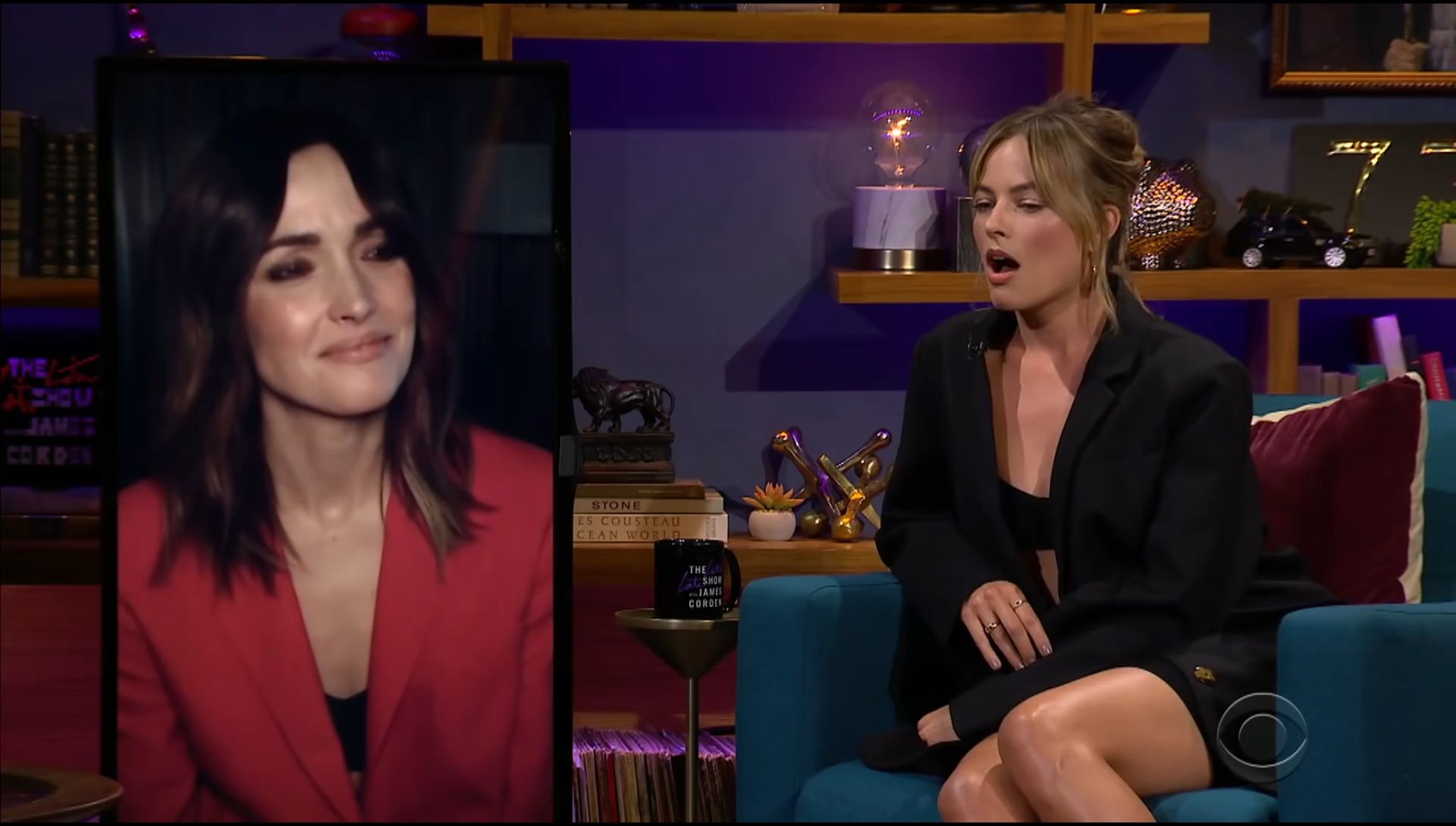 Margot and Rose On the Late Late show with James Corden.