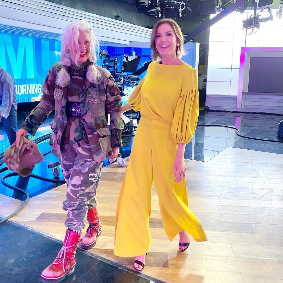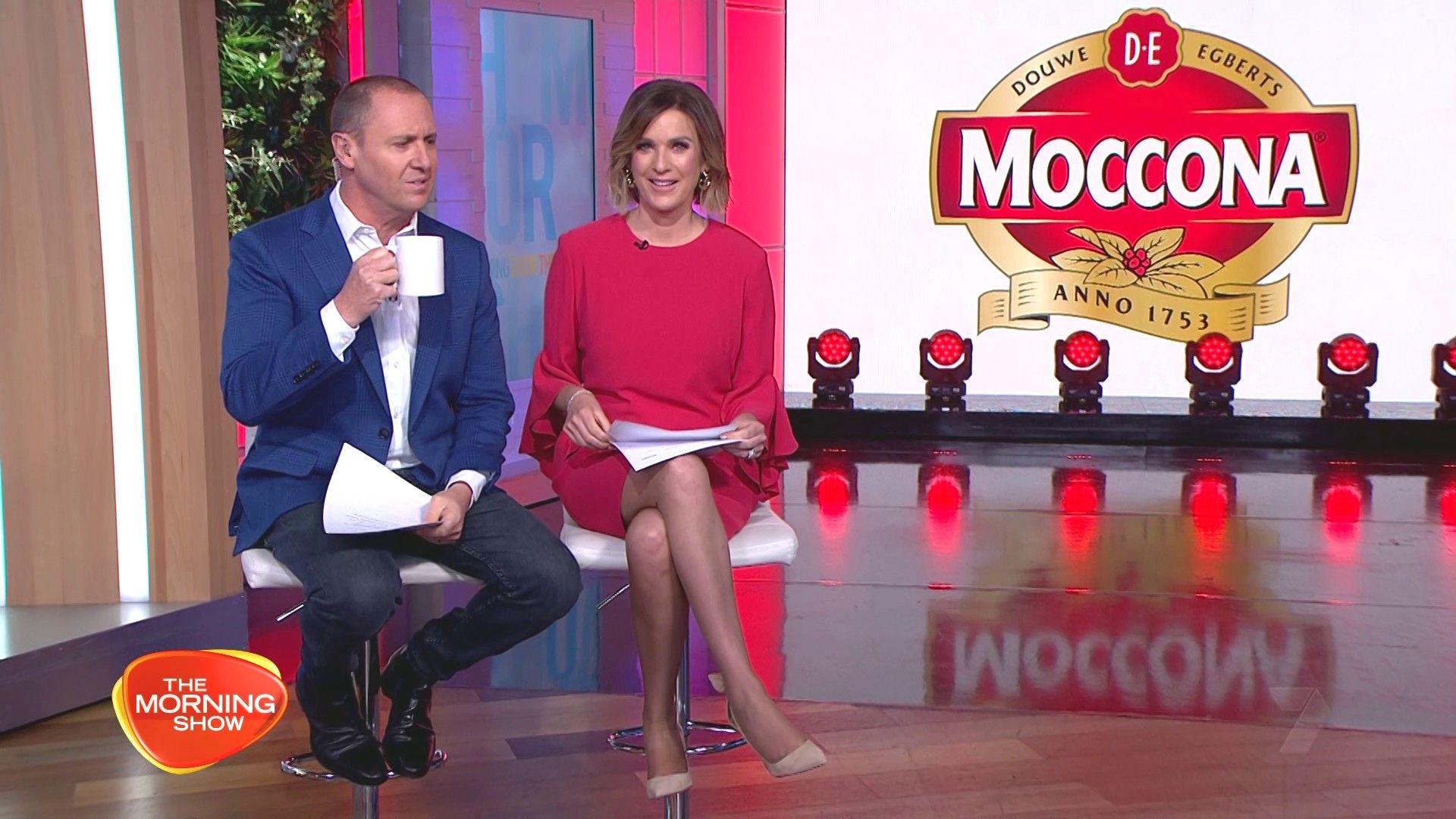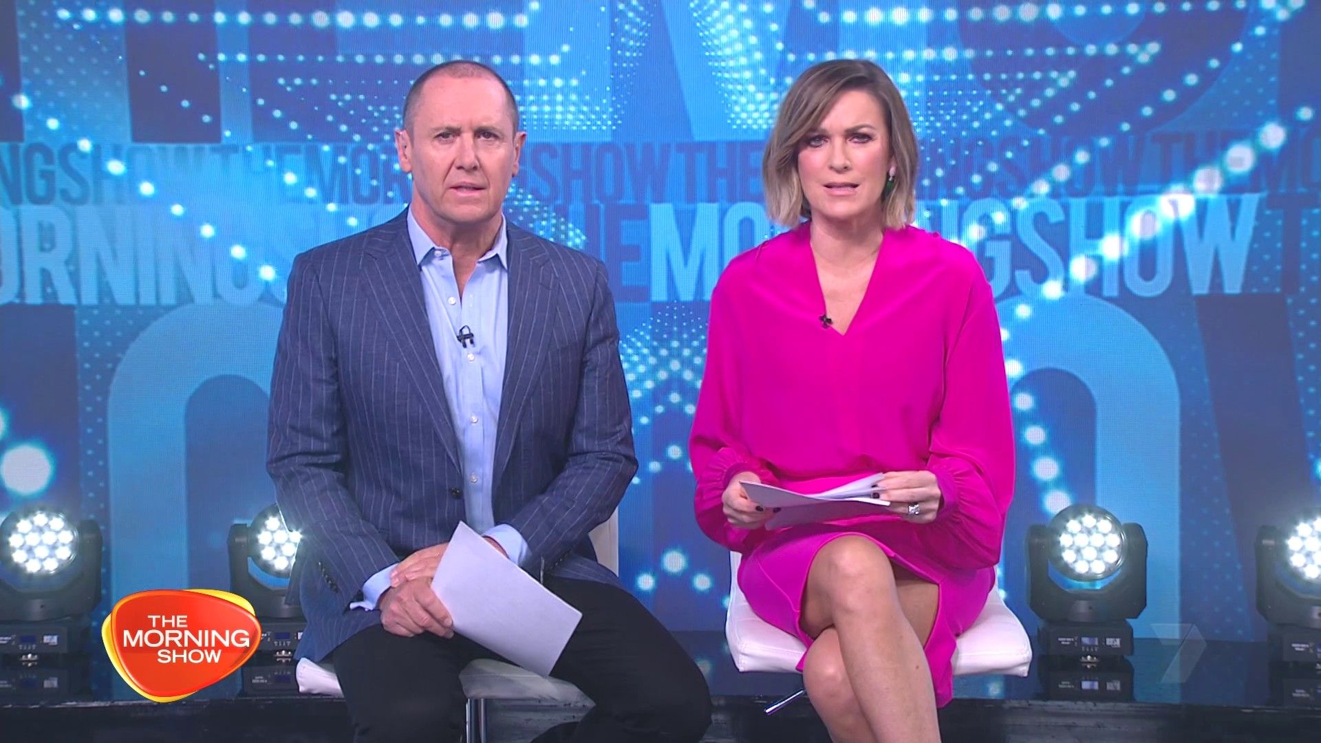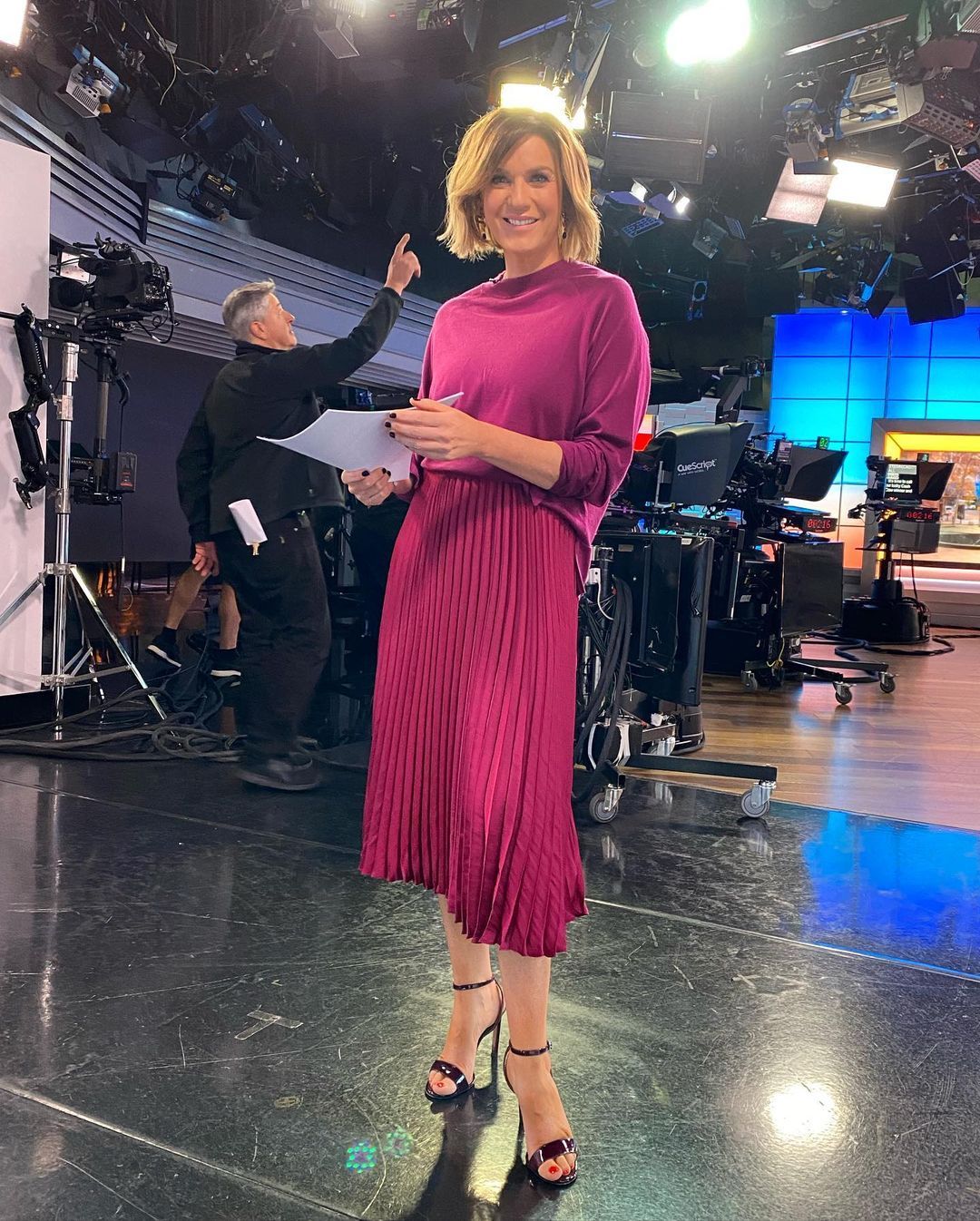 Looking good in pink this morning with a nice split and legs on show