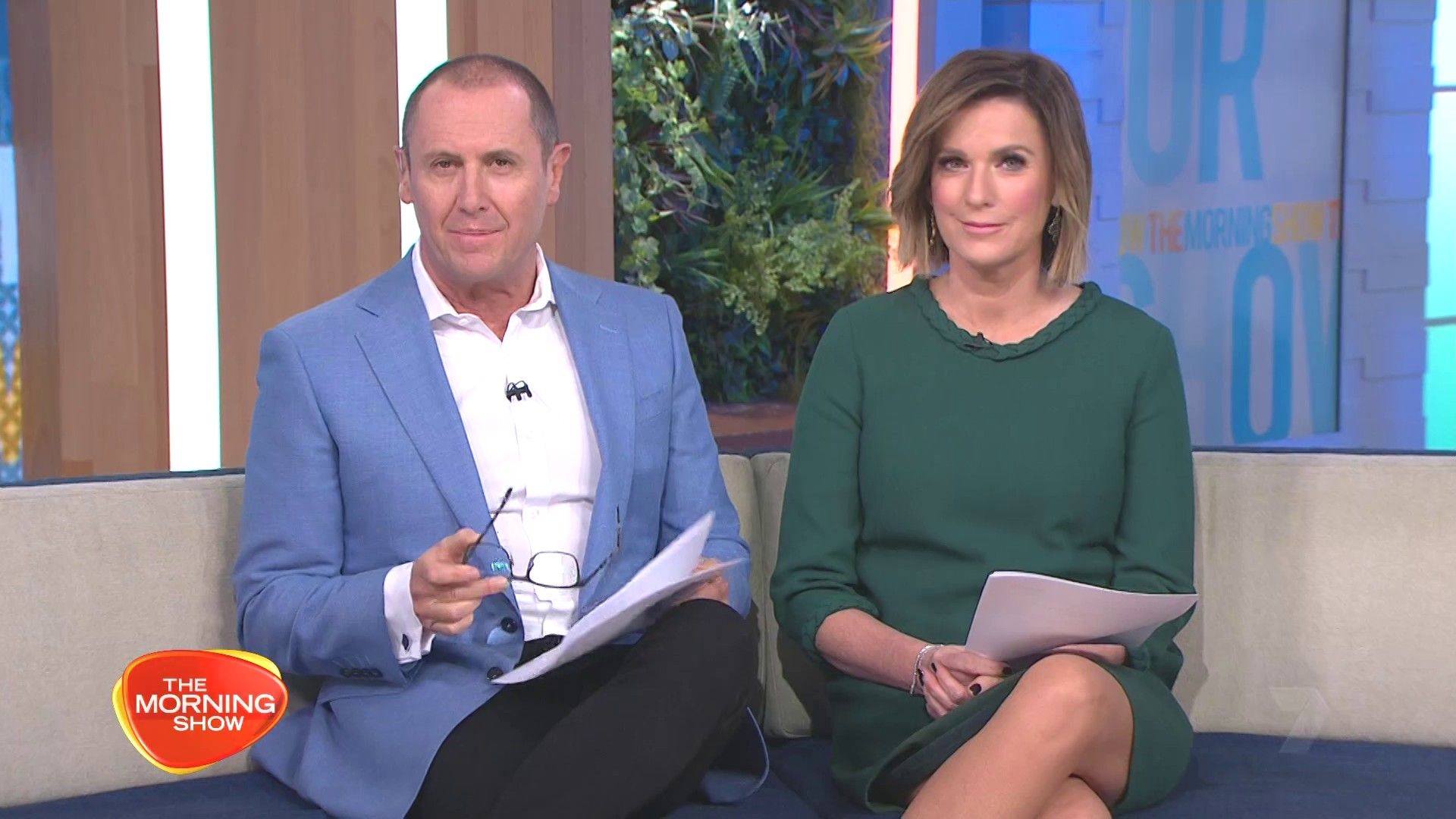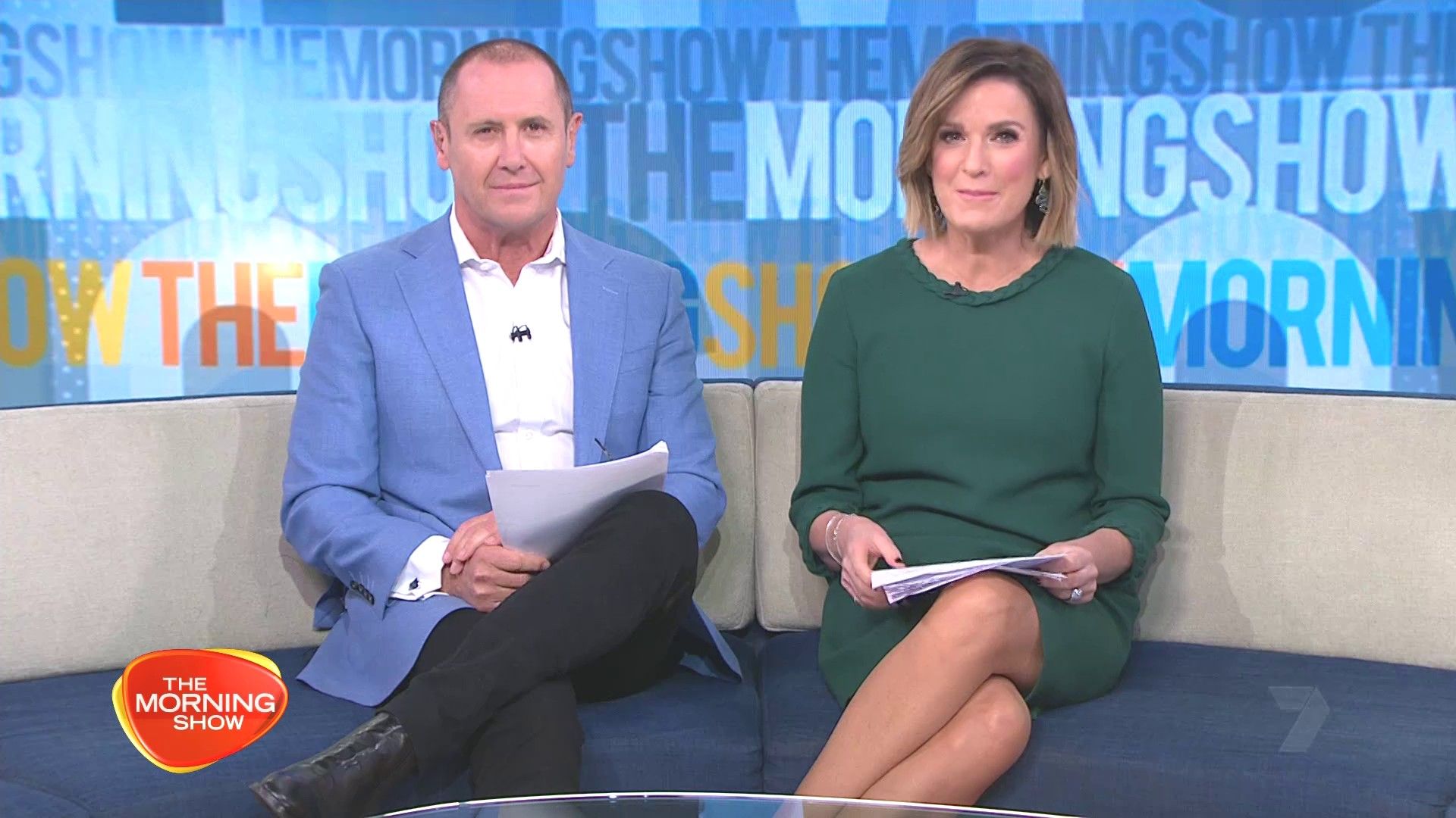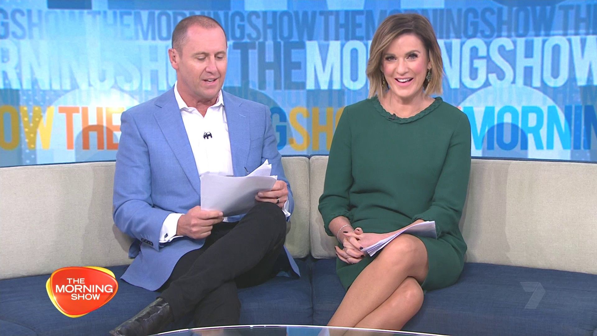 Short green skirt today. Looking nice