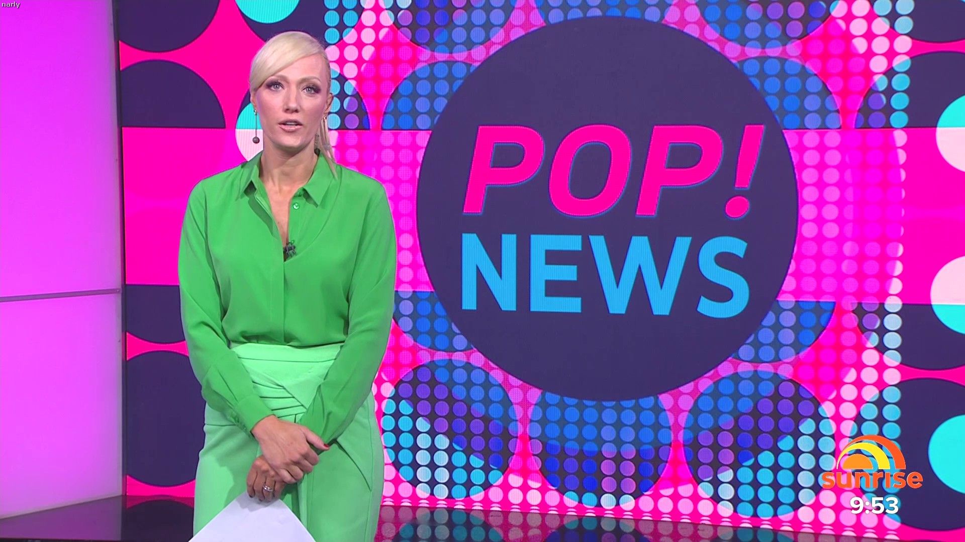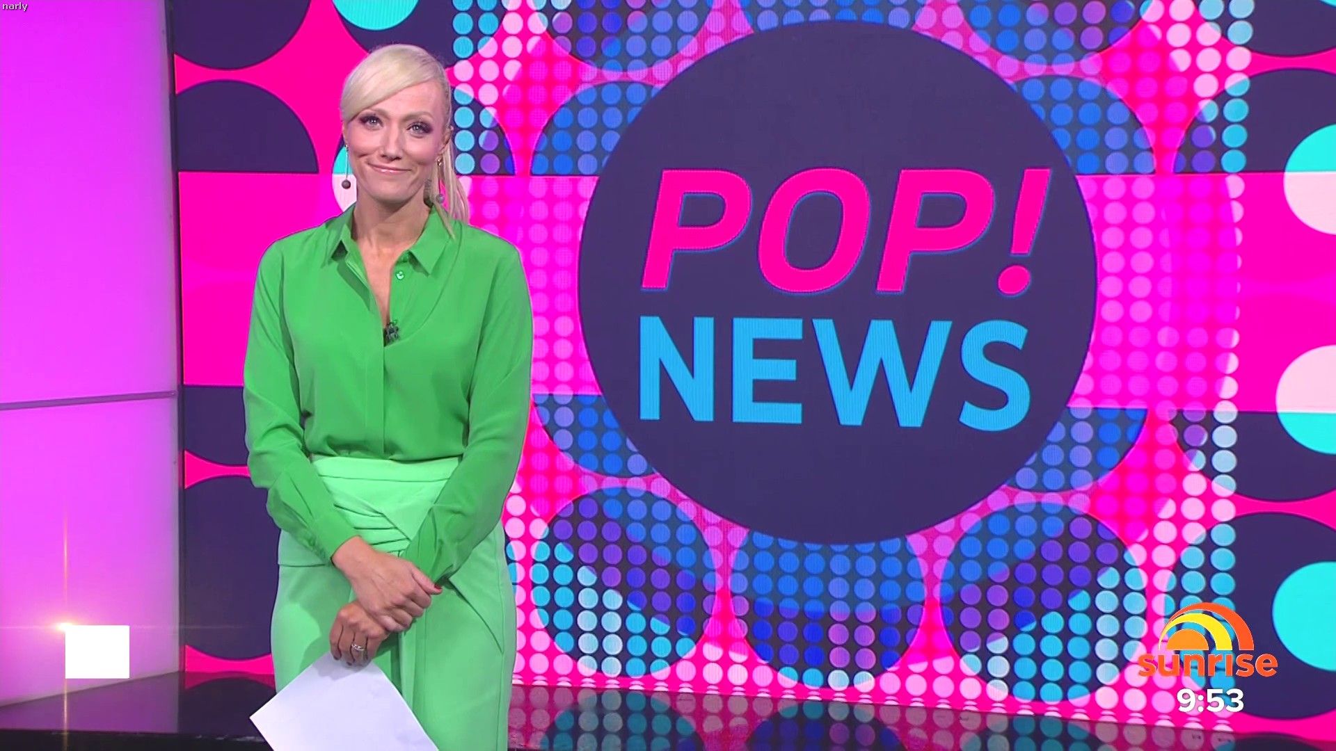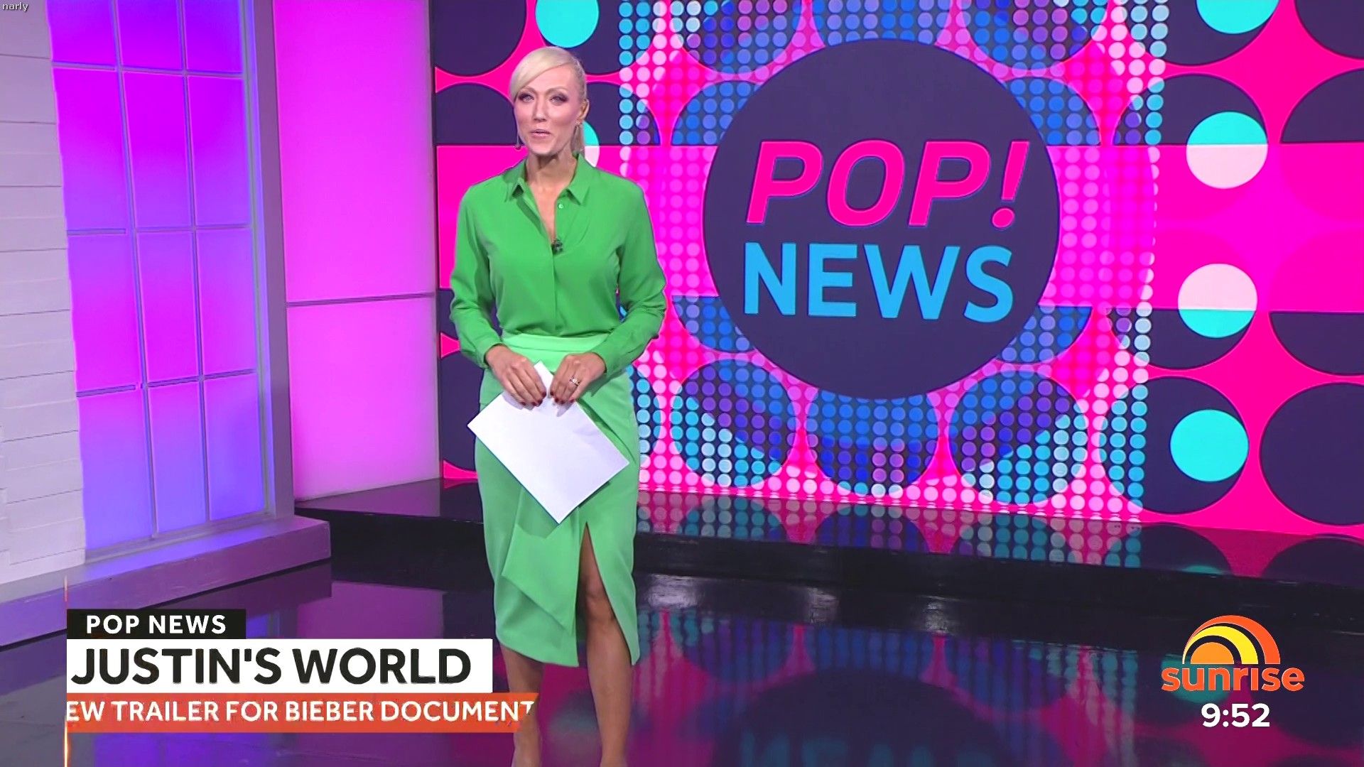 Looked sexy in short pink dress doing pop news today. Some nice full length shots at the start and then did her little walk back at the end. Seriously is the best going around