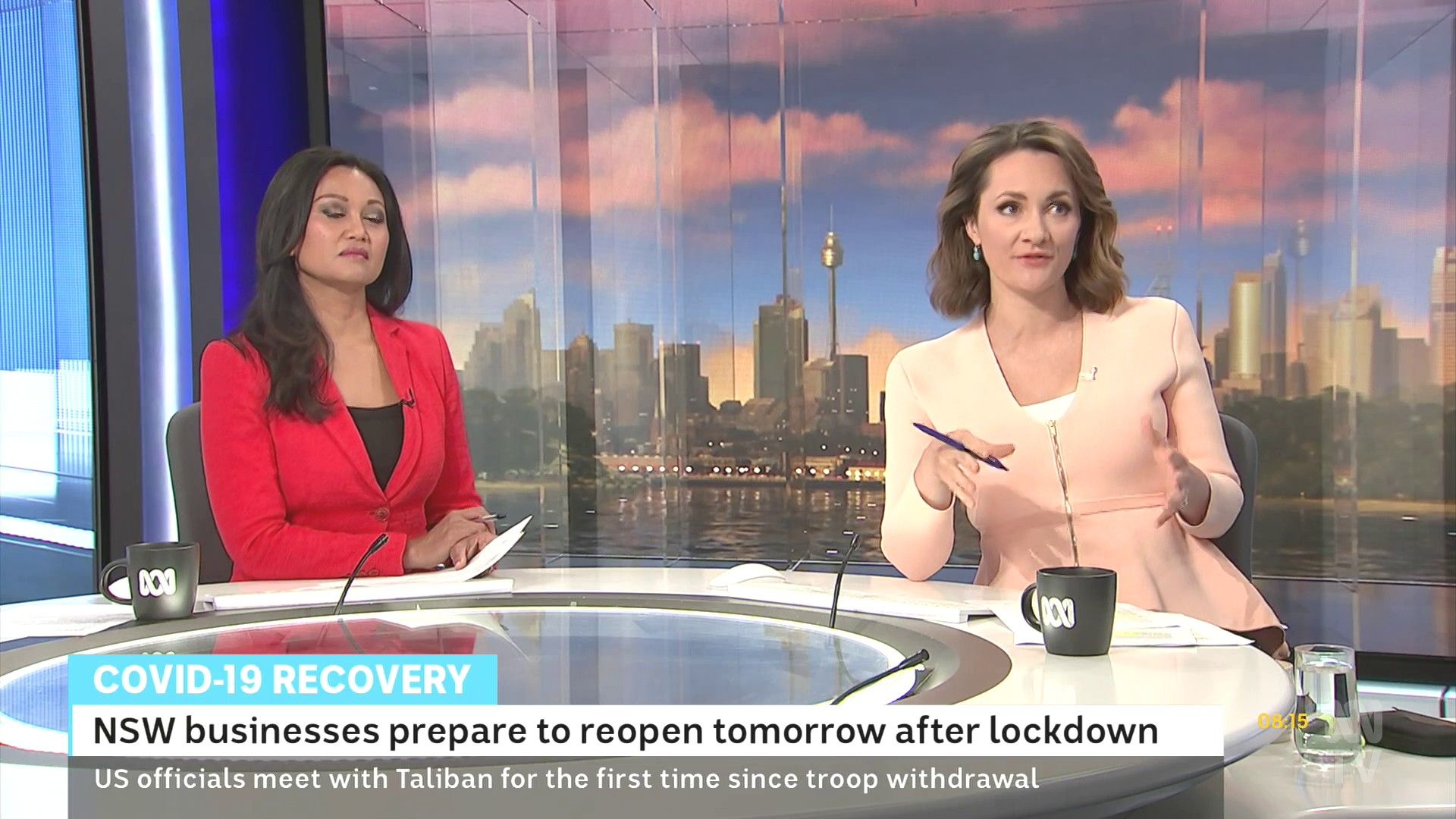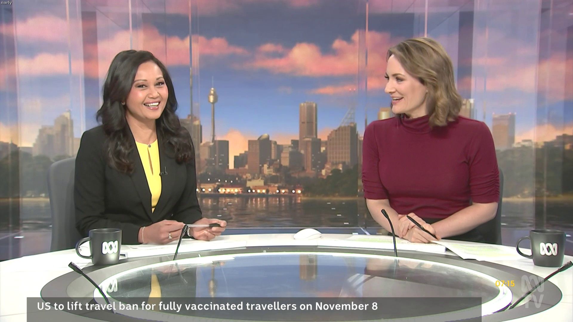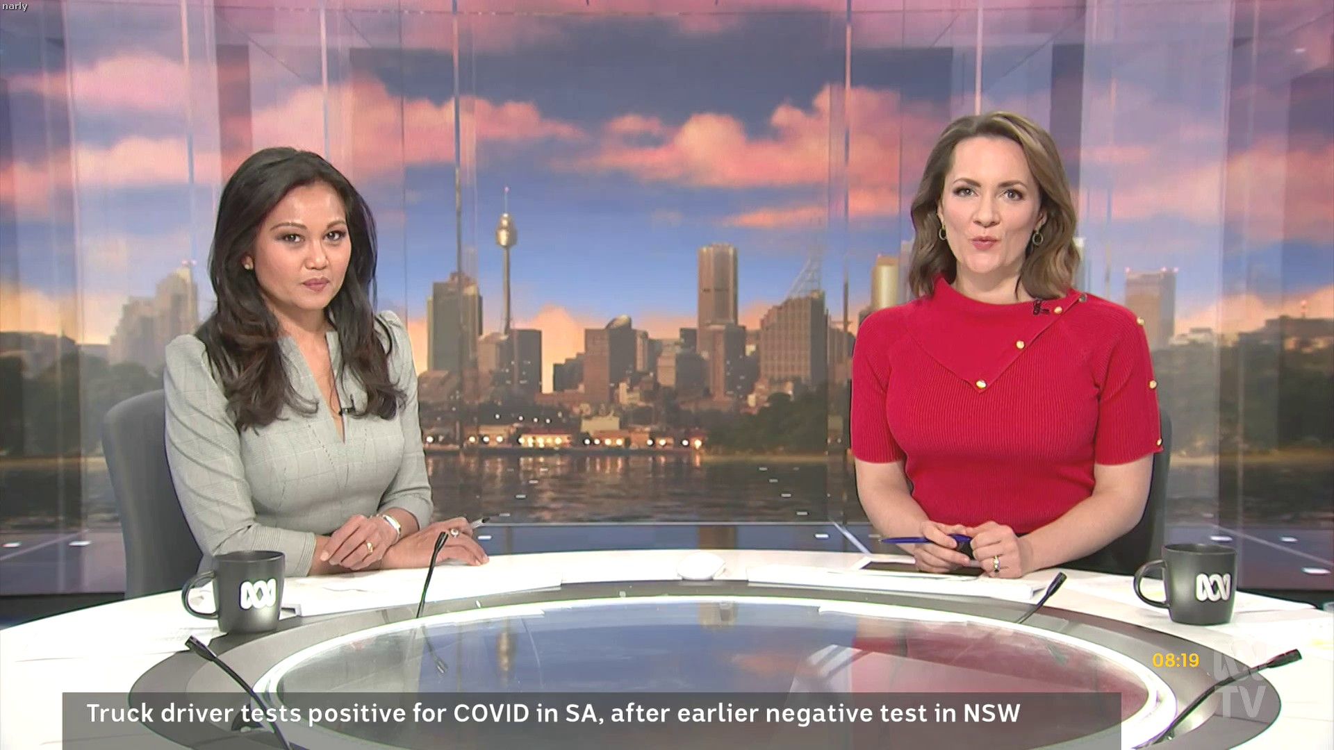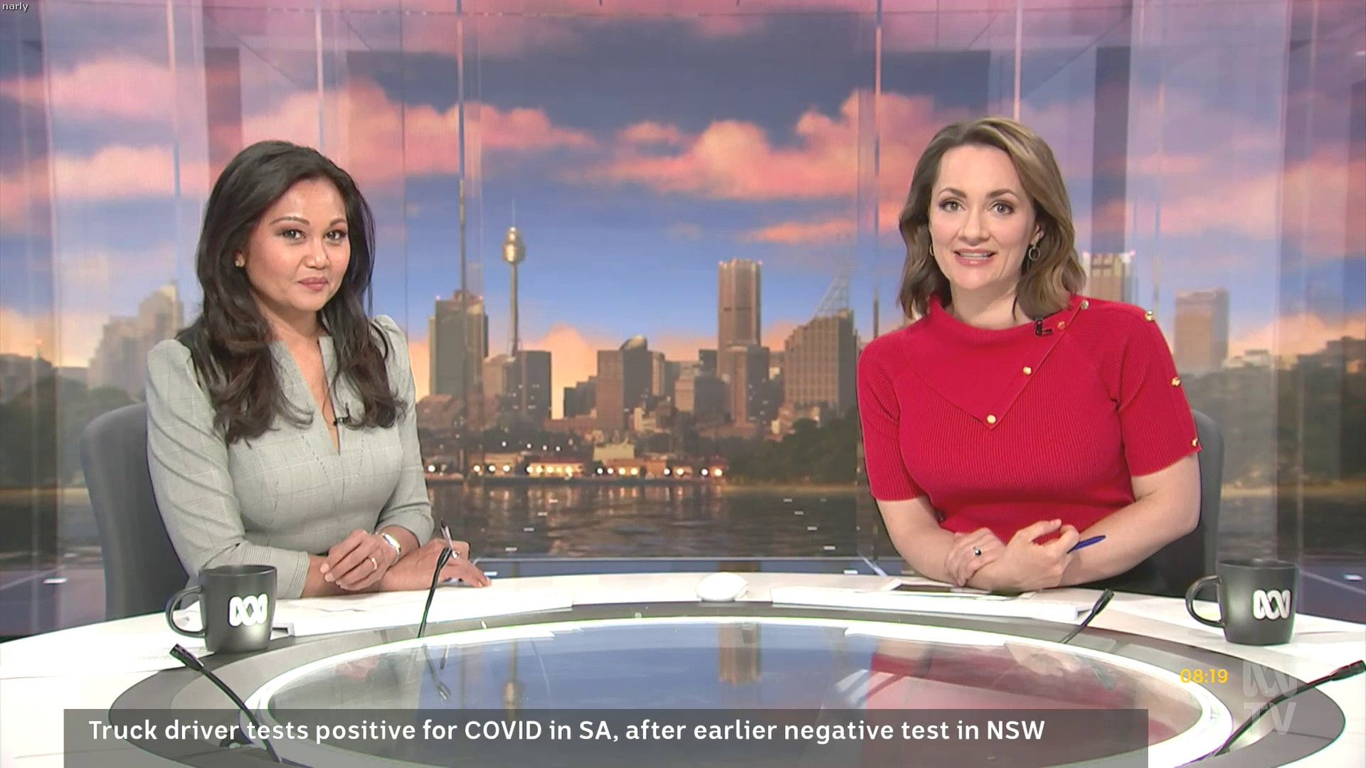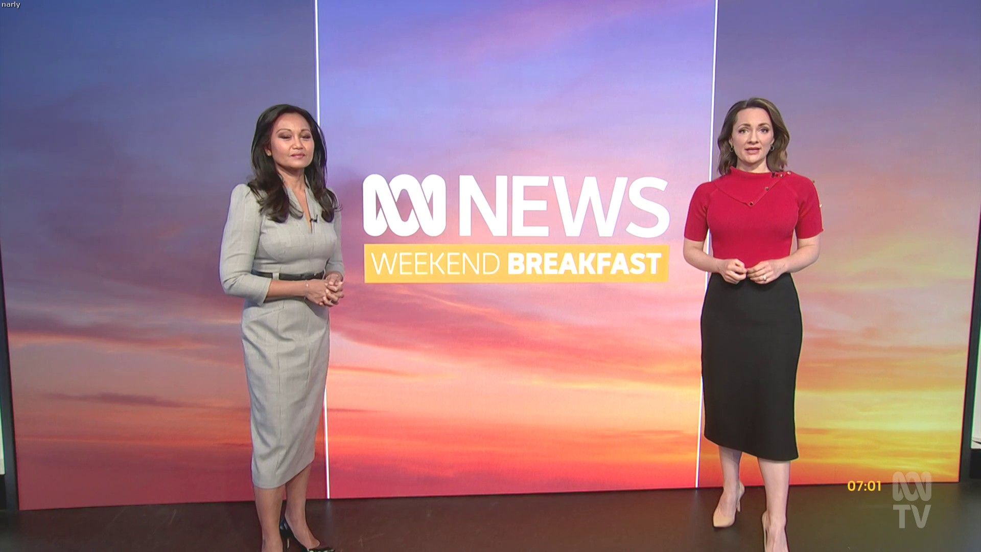 Loved that tight red top... she did some news updates solo later in the day: