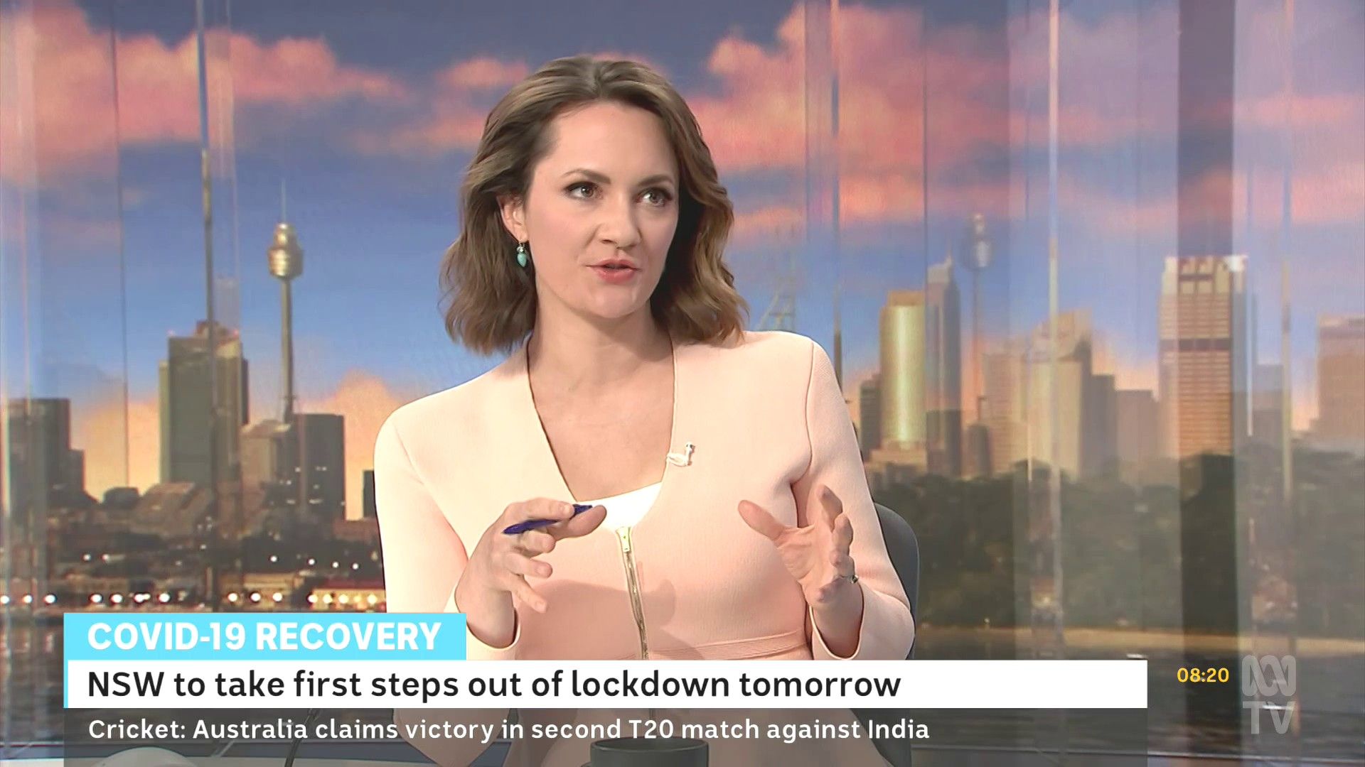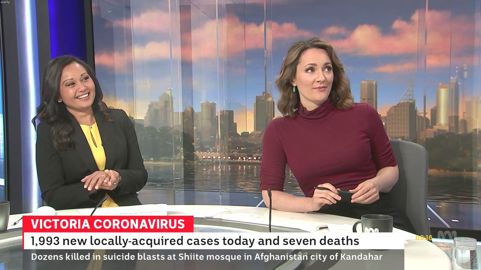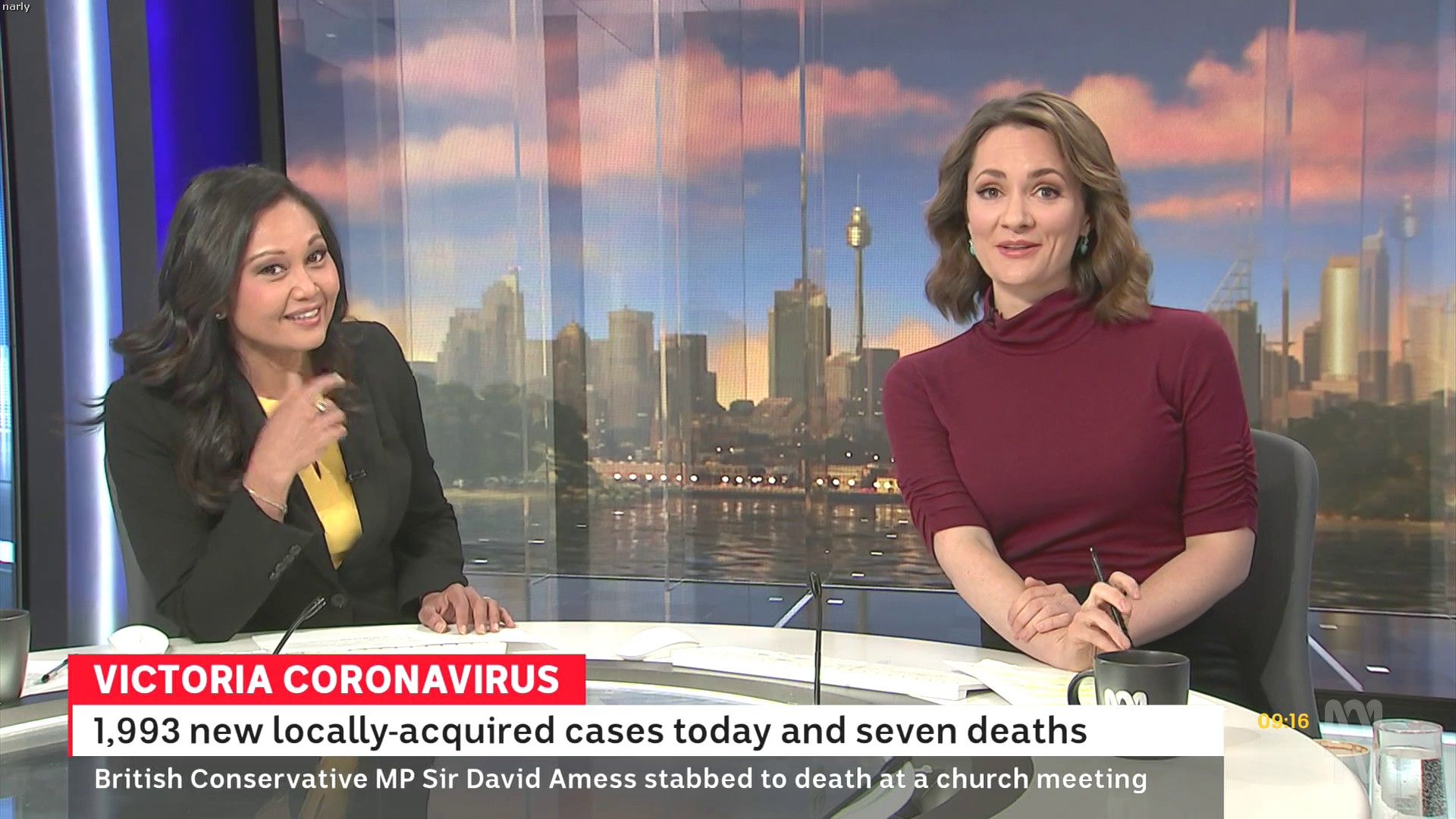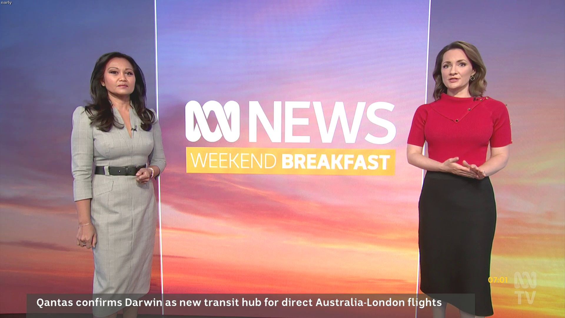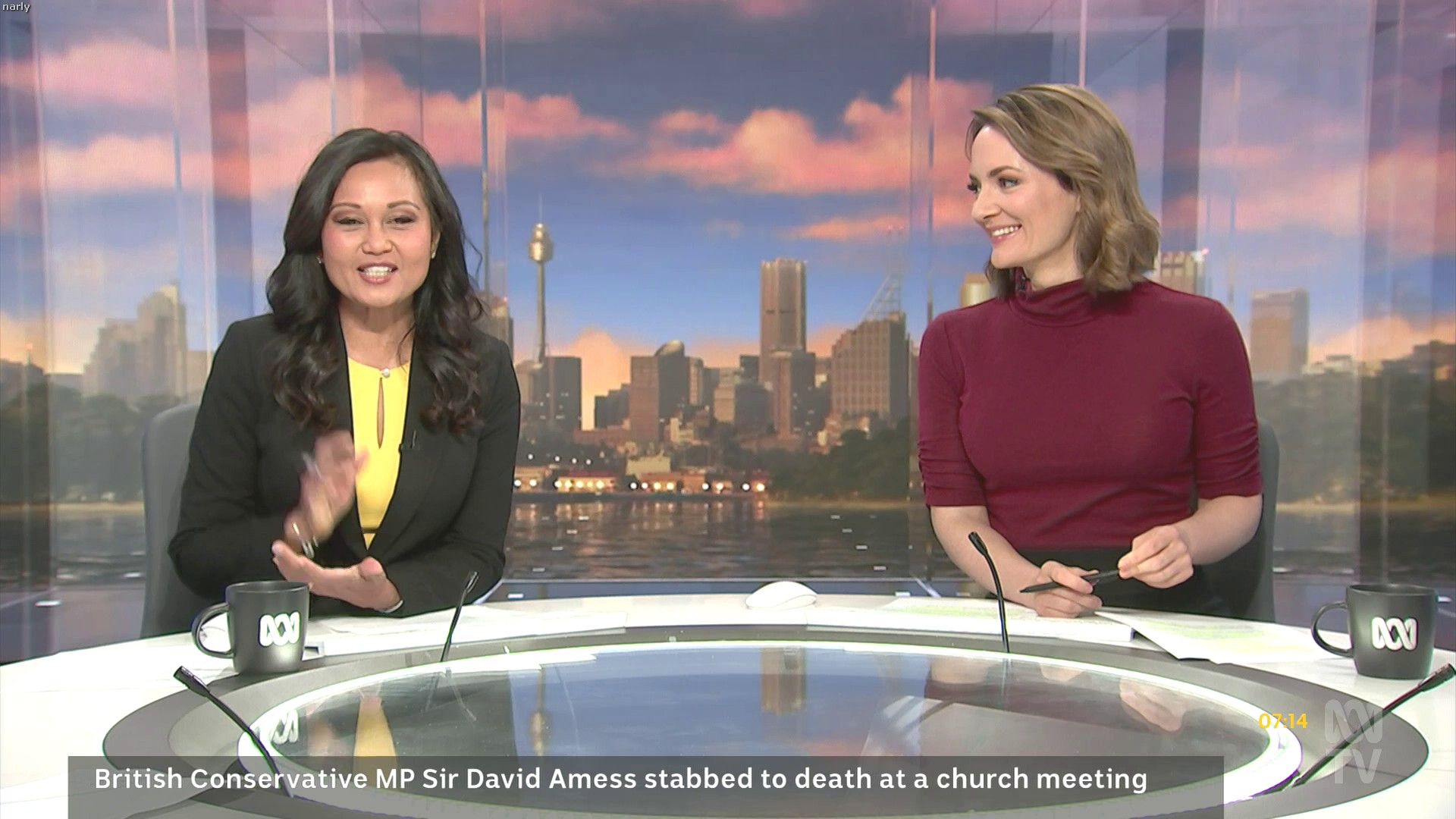 Loved that tight red top... she did some news updates solo later in the day: