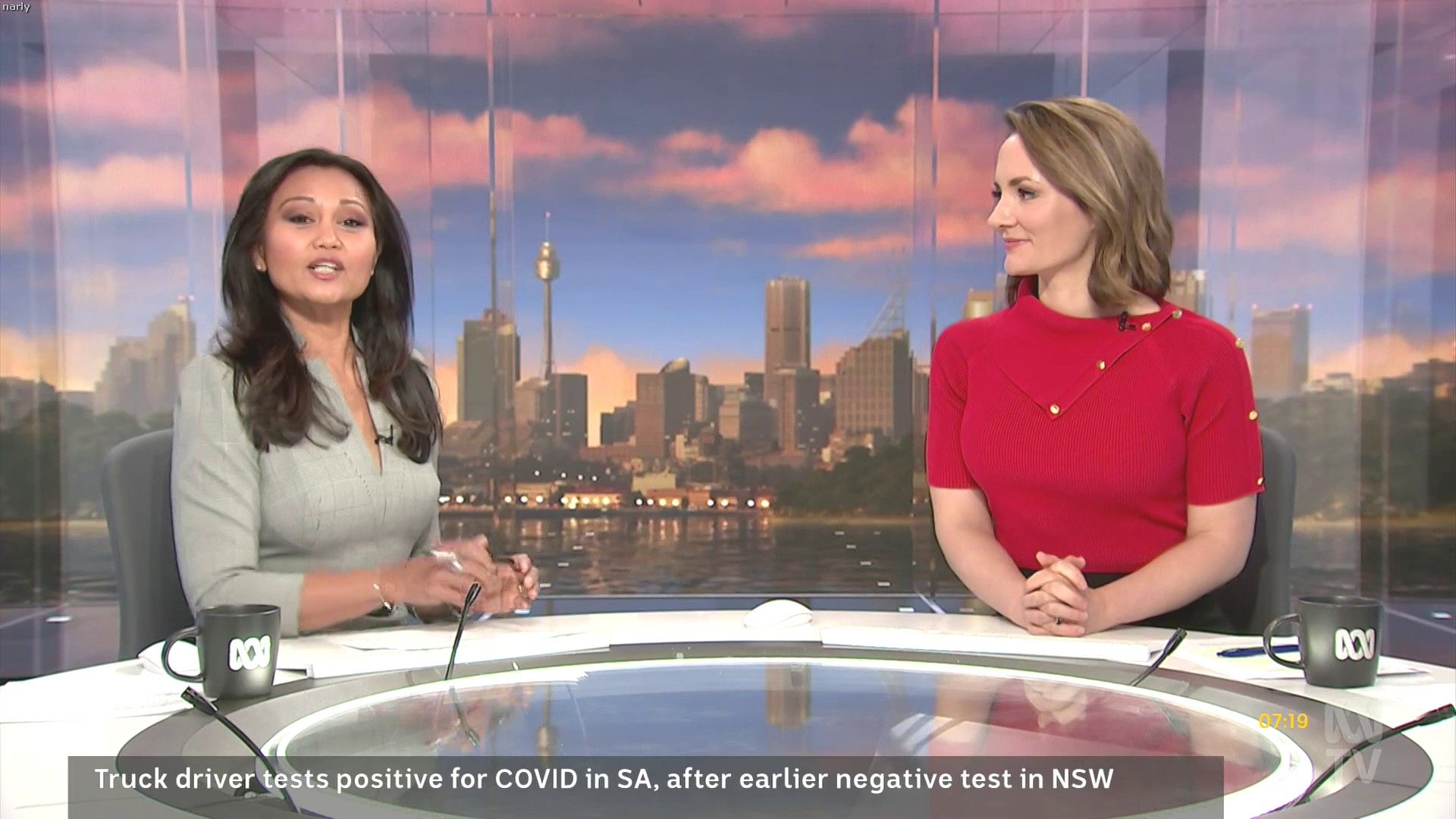 Loved that tight red top... she did some news updates solo later in the day: