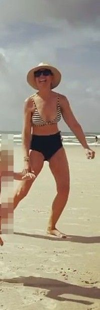 On a beach with her family somewhere