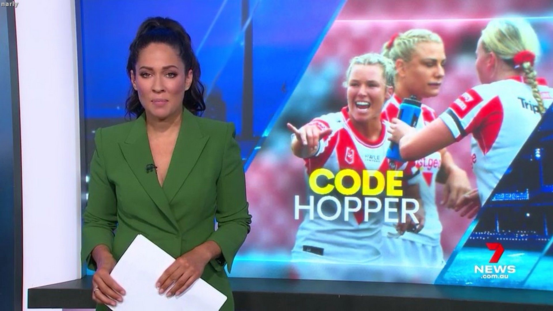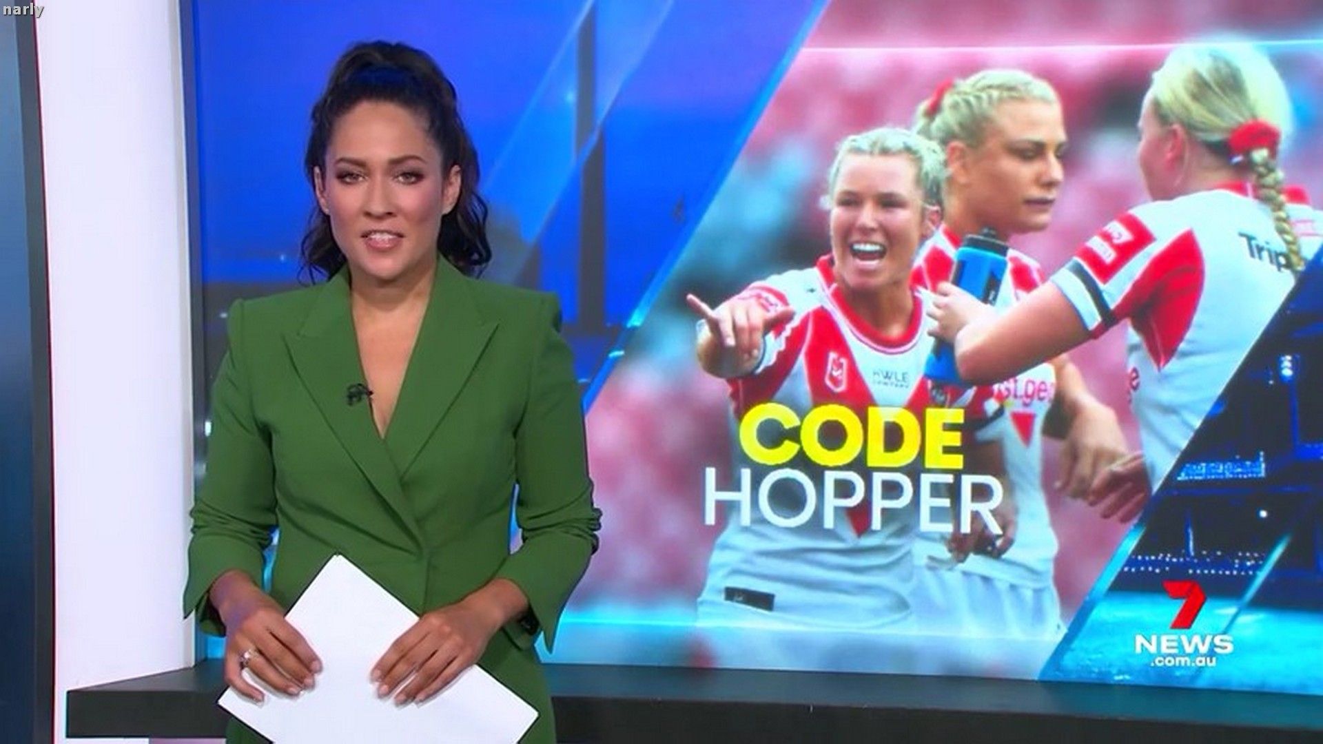 Nice shots of Mel's green Wiggle outfit, narly !