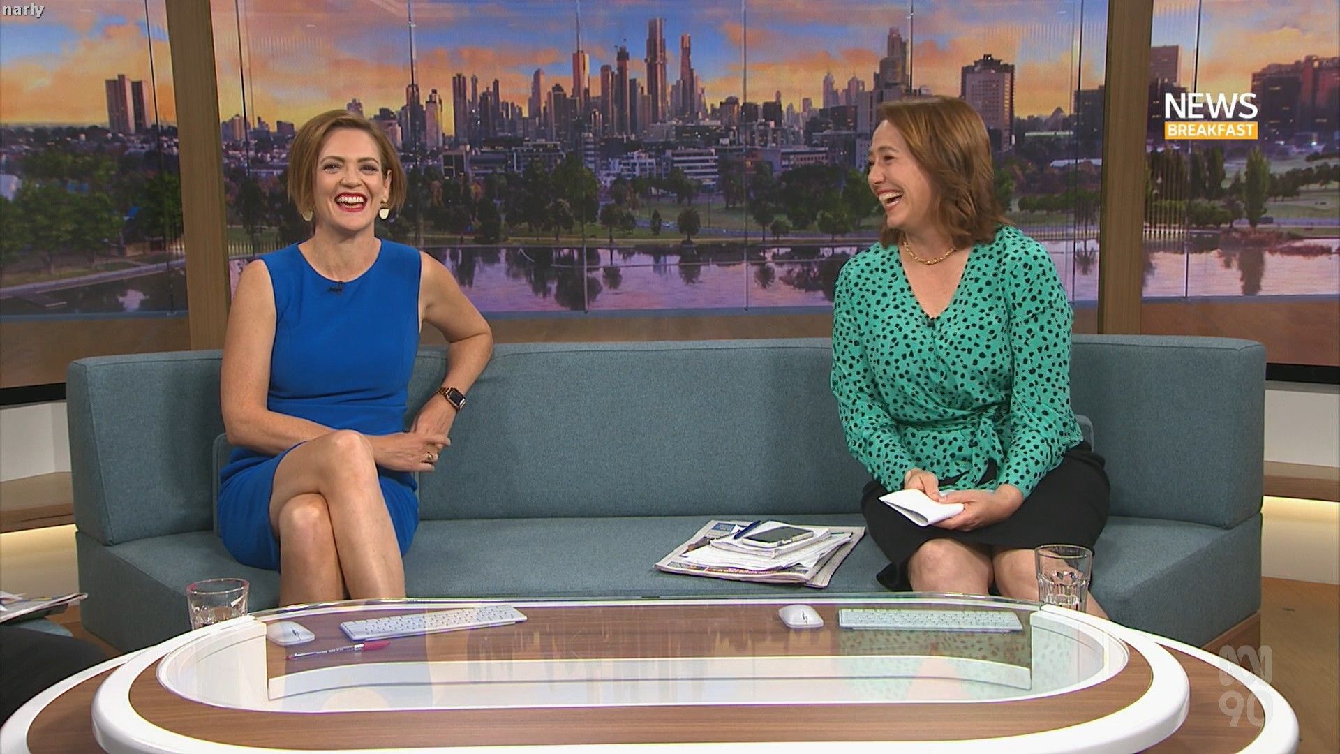 Hi All Not sure if anybody could help. Watching ABC News Breakfast this morning, and woke up to Madeleine Morris hosting & wearing a lovely short blue dress that shows her thighs very nicely. Any caps would be greatly appreciated.