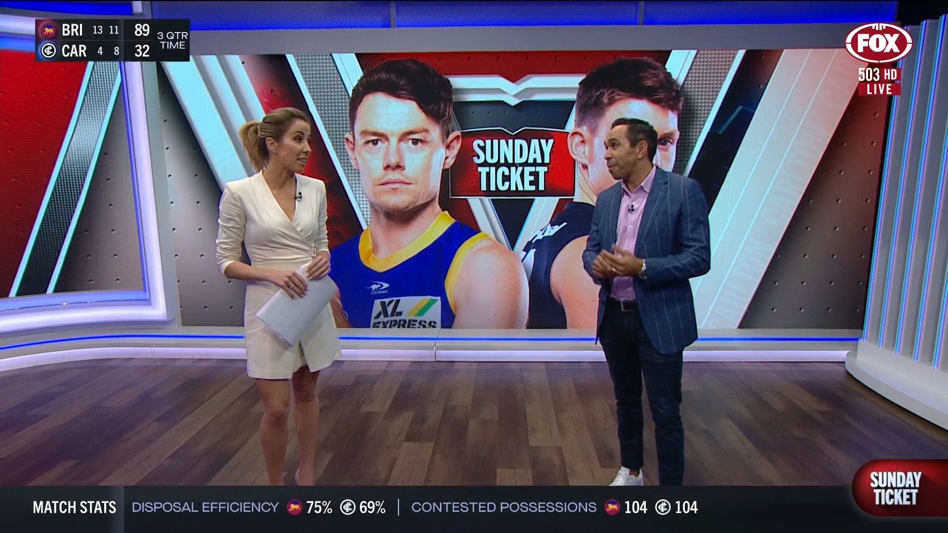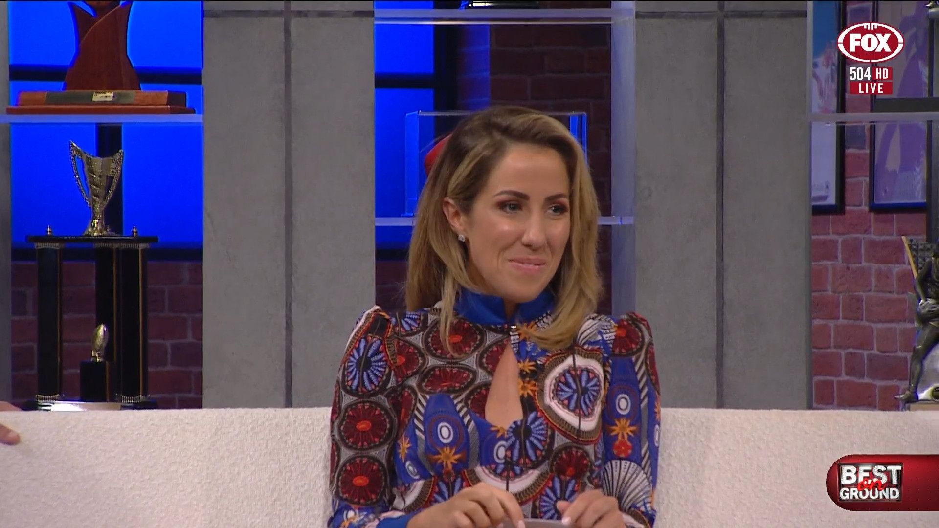 Kath looking  on Fox Footy 7 Aug 2022