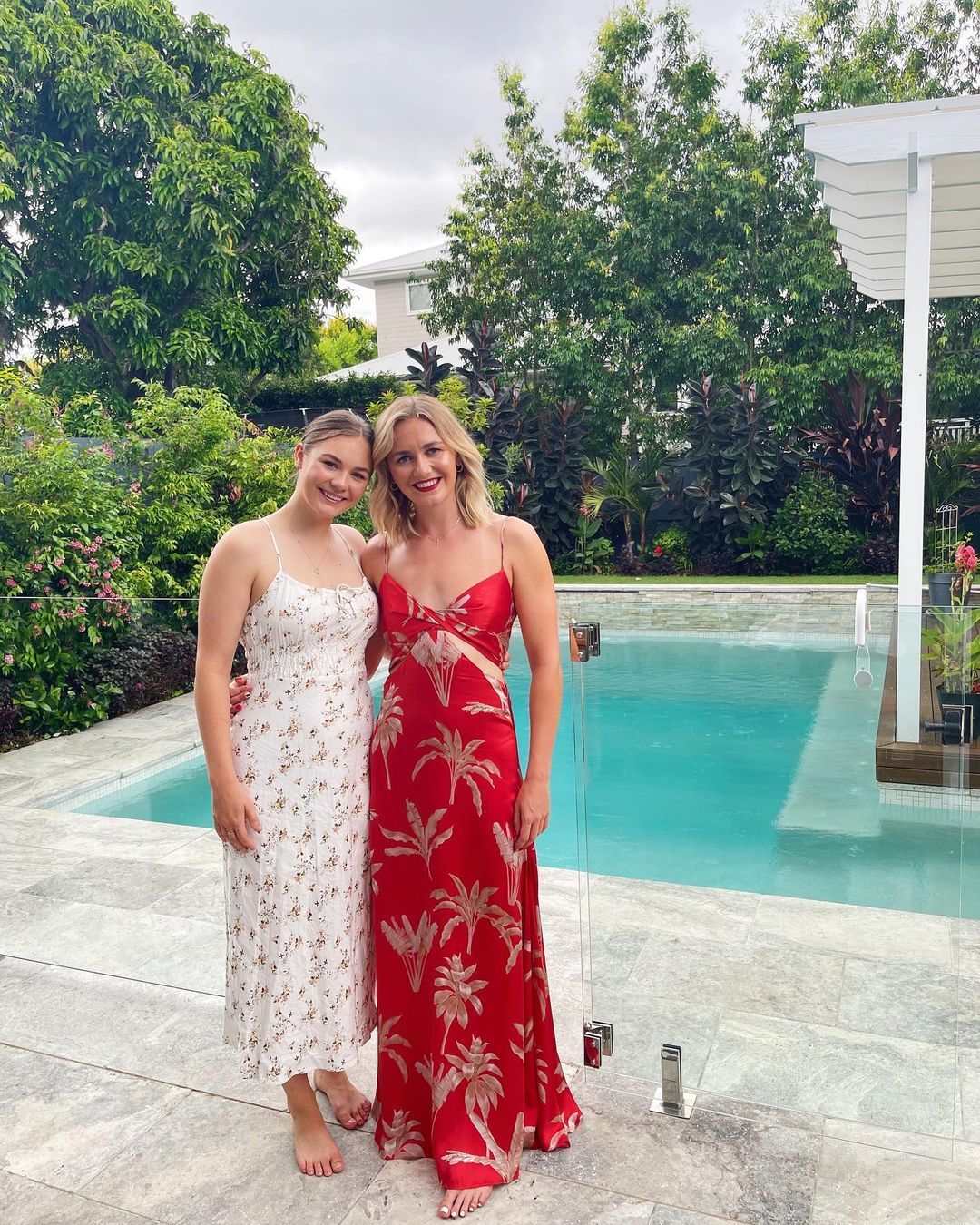 sister goes ok outside of the pool