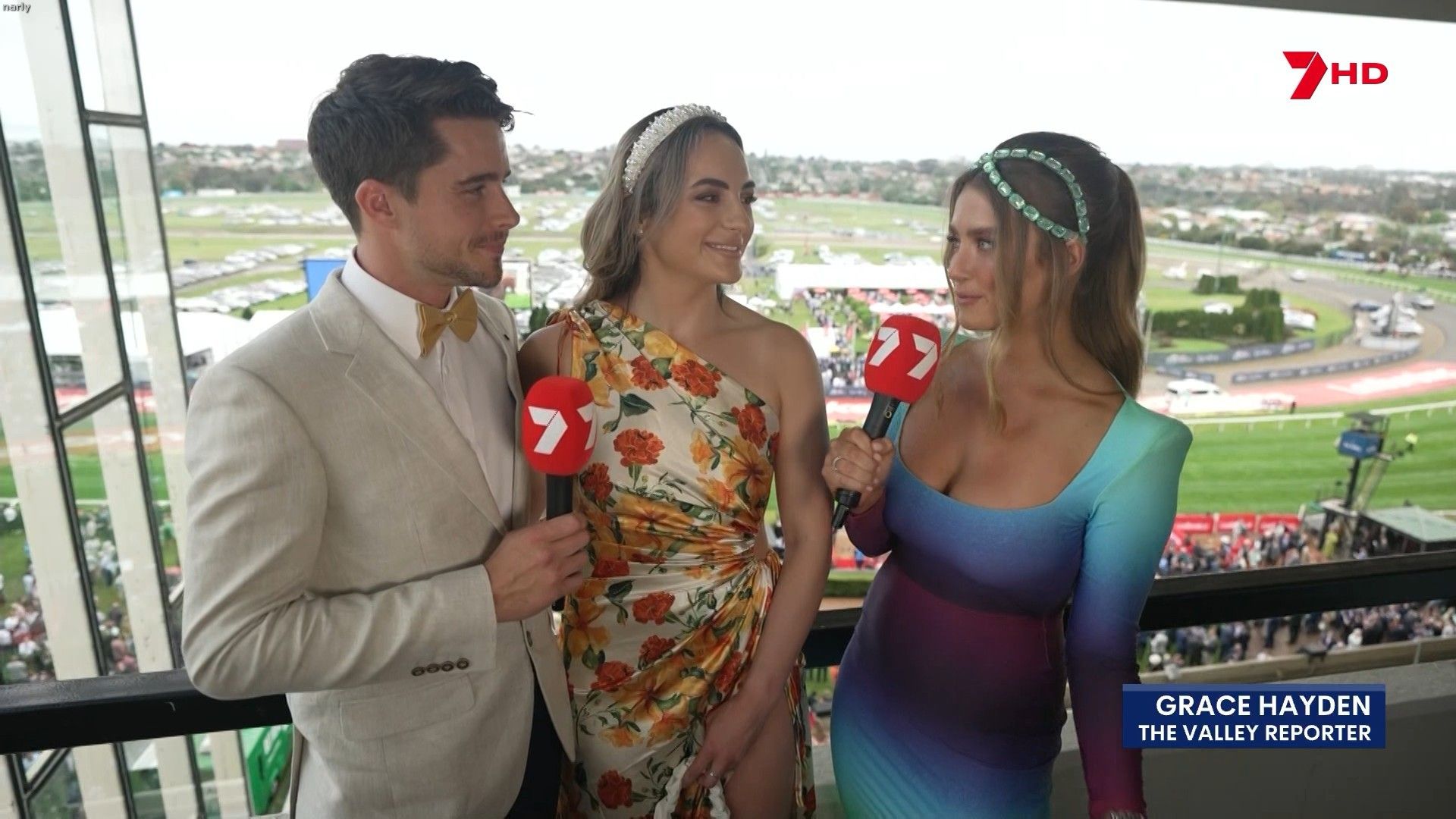 Just a call out to anyone on here capping. I've just seen a hot, perky babe on &s horse racing coverage. She was wearing this mostly blue, but multi coloured dress. I missed her name, but I hope one of you get it.