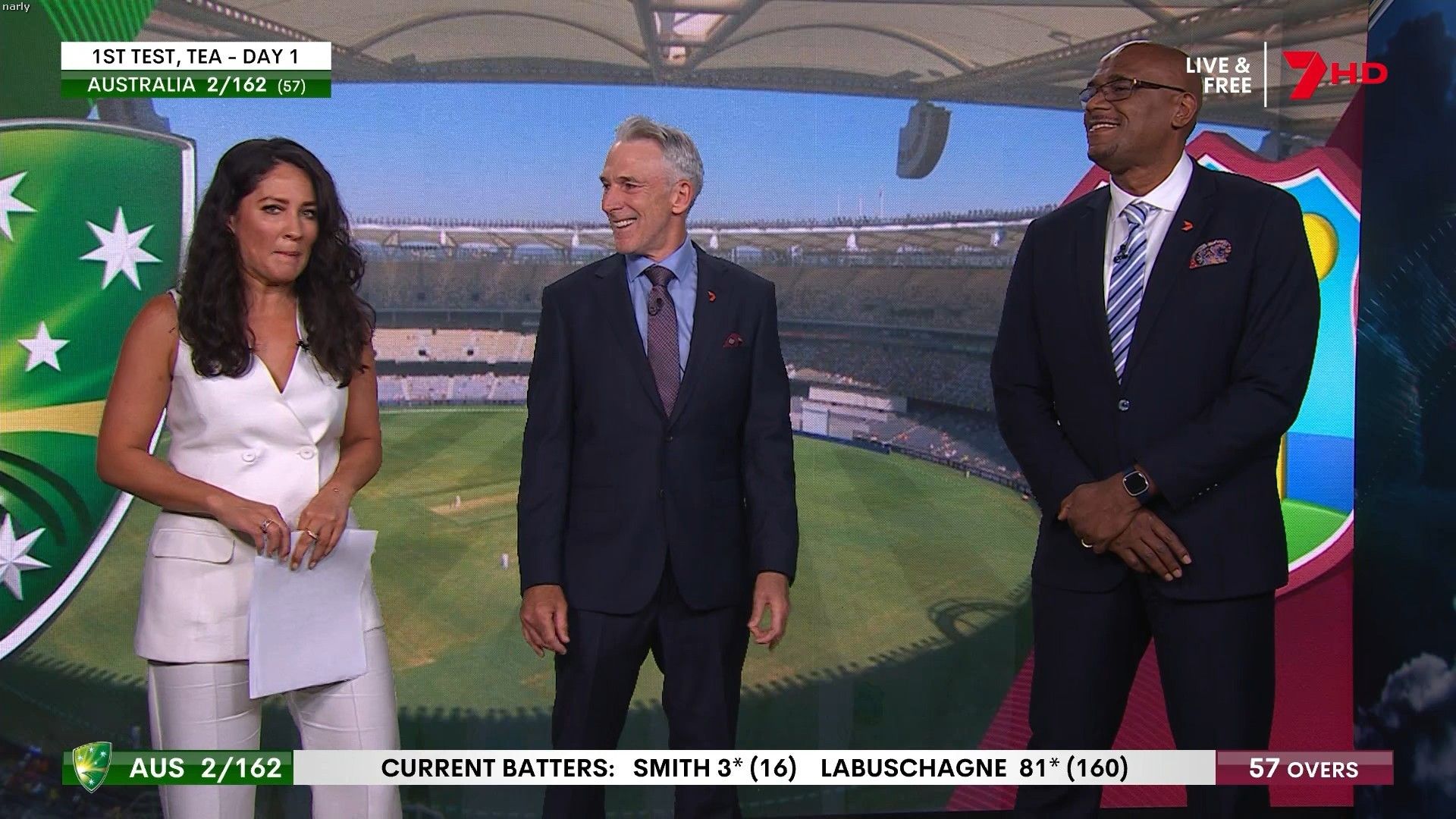 Mel back hosting the cricket coverage today