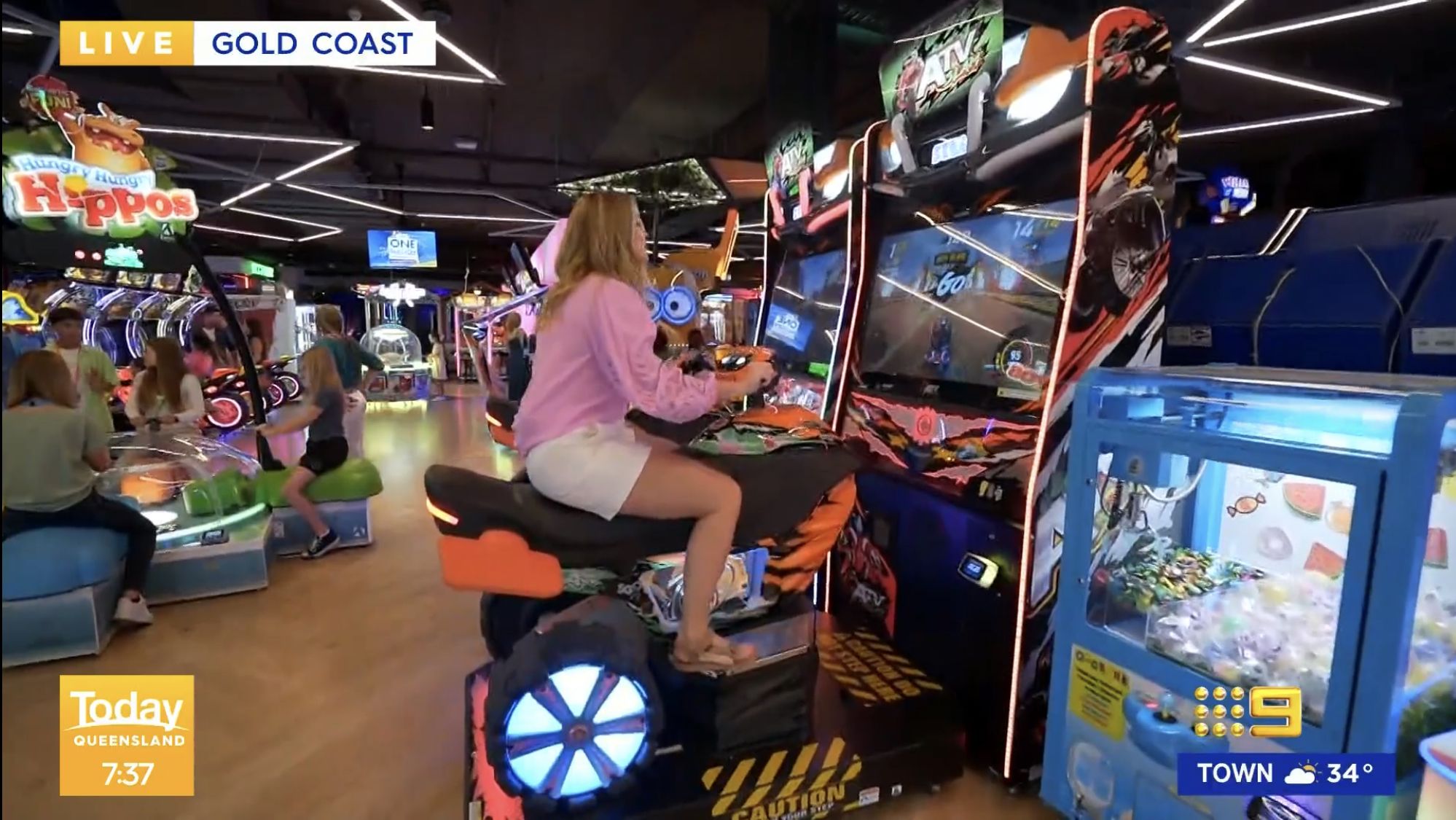 Part of the problem is the awkward seating position on that inflatable. But in general yes, her body has changed quite a bit since those Miss Universe days.