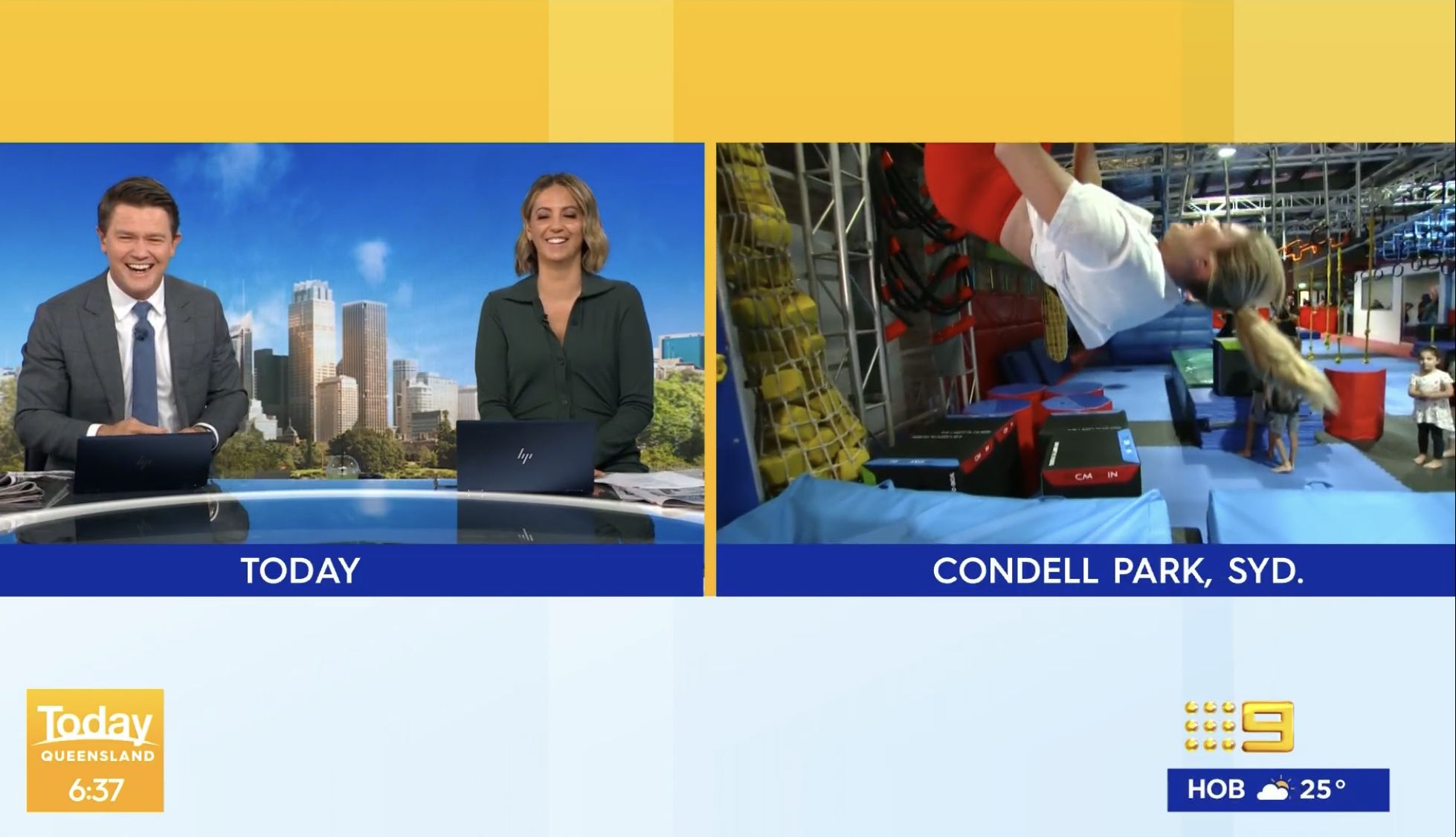 She was very skilful not losing her T shirt hanging upside down during another cross