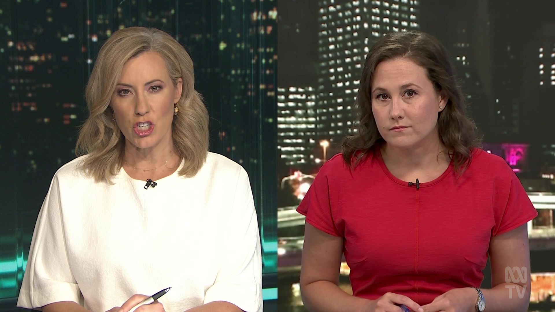 Yep 20b, but still mostly covered up with a loose top...at least her forearms are visible! Contrast with Rachel in a short-sleeved dress. Kath, you own similar dresses....wear them, it's Summer! So the die is cast with Kath hosting The Business. Upside for her (and us), is that she is in a predictable timeslot Mon- Thurs. Downside is Kath will not get the profile and exposure on other programs, particularly The Drum. And the unchanging format of The Business means Kath is stuck behind a desk....at least the studio interviews have been revived post covid. There are no promos for The Business....it is very low key, stuck away in an awkward timeslot on the news channel. No wonder Kath has to keep mentioning to catch it on iview, as that is probably it's principal audience. Still, I watch it... for her!