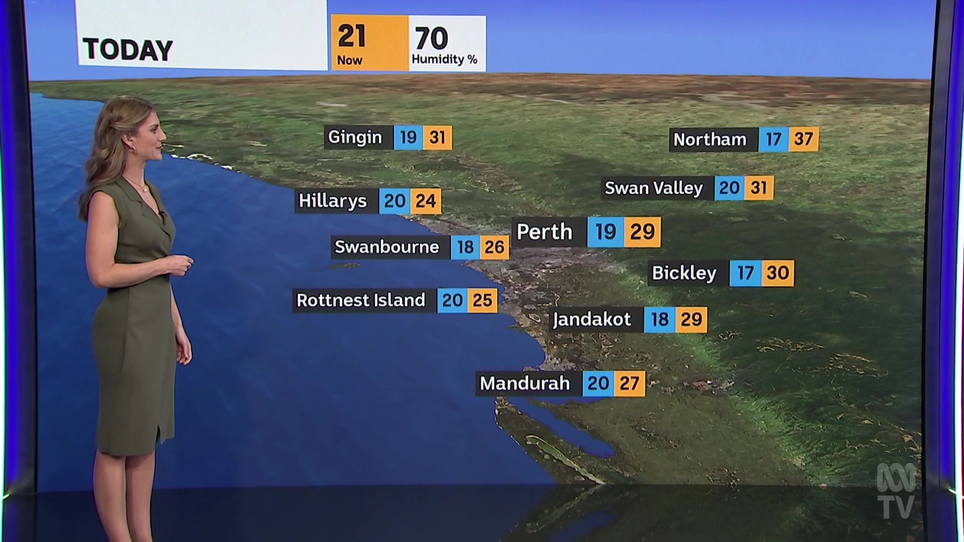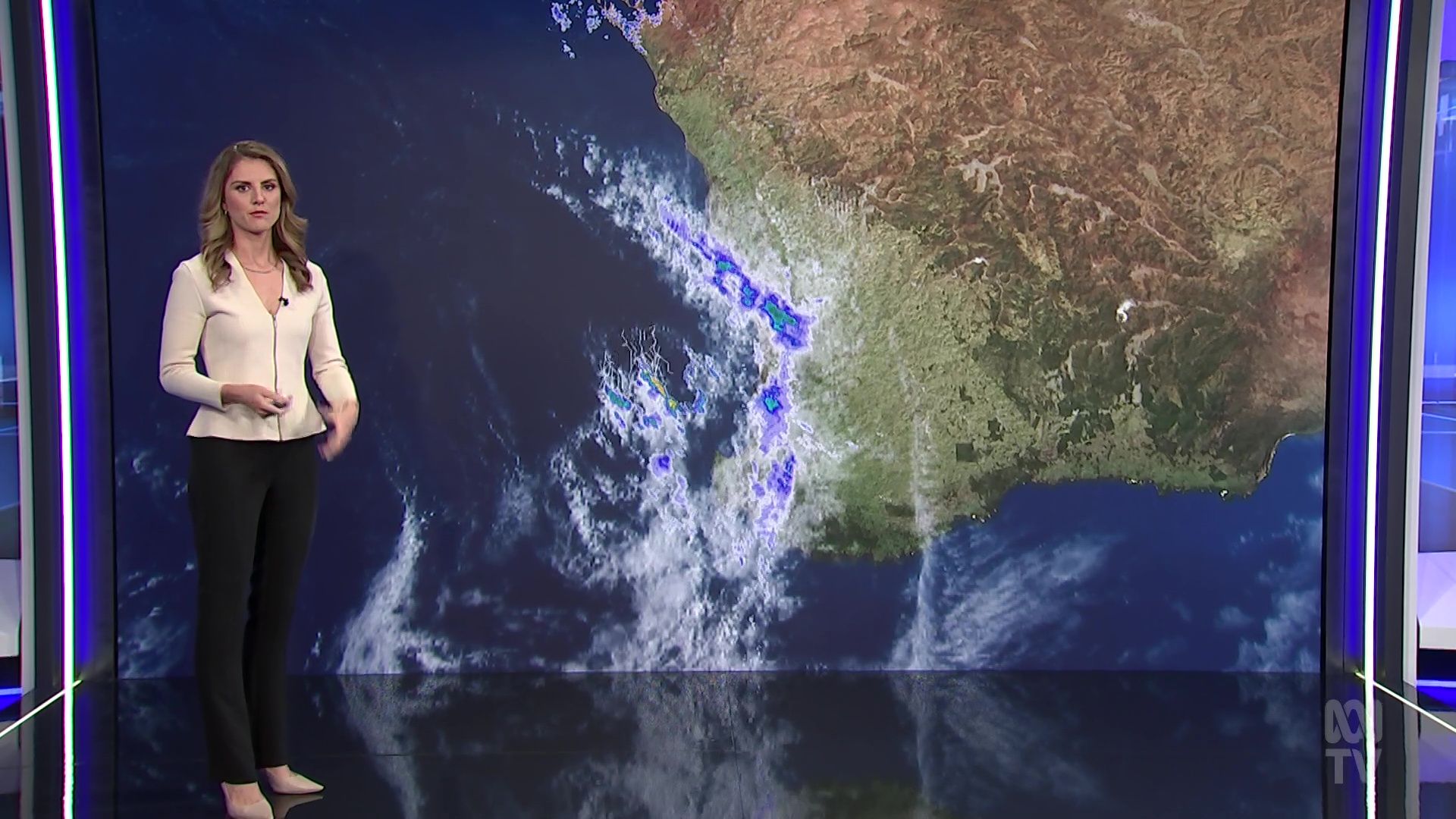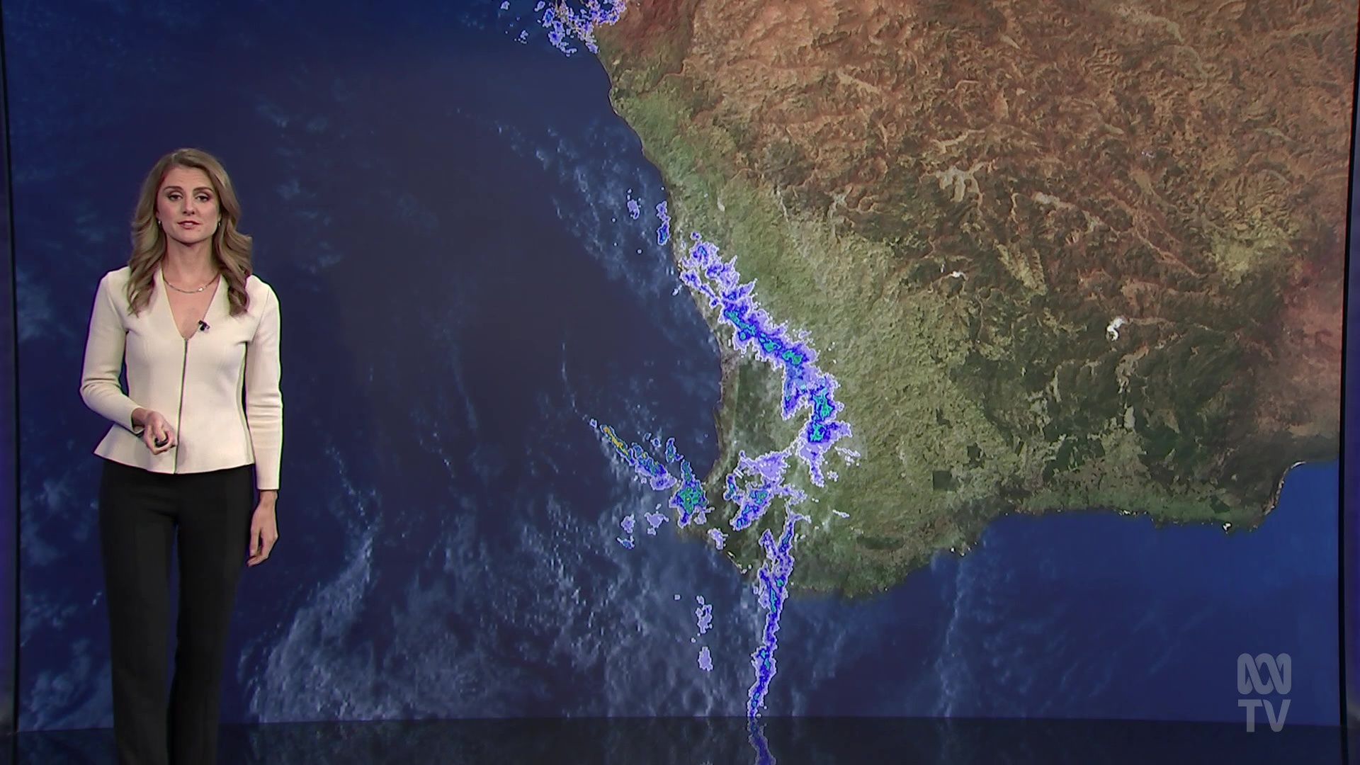Tyne doing weather on location at sunset last night