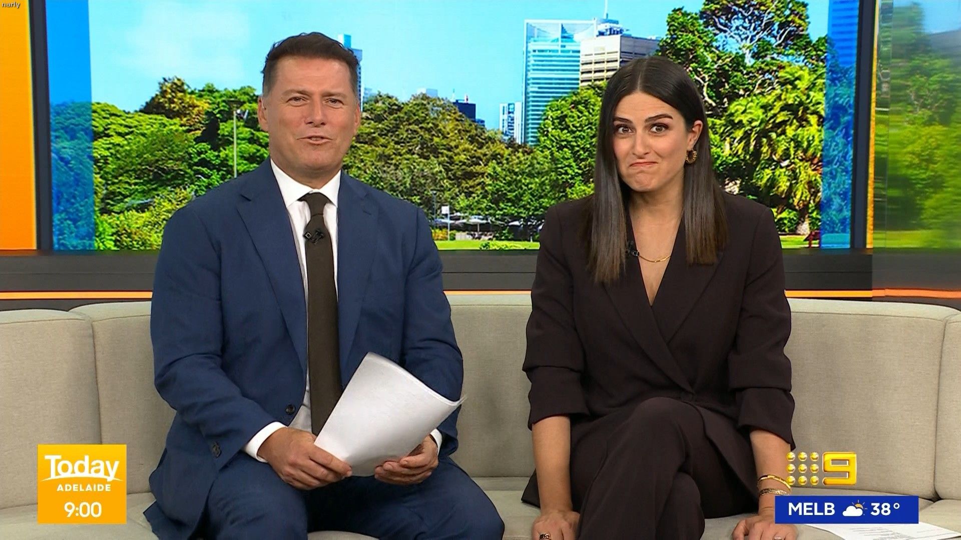 Tru3blu324 wrote: I think more hot weather means, more bigger pants. What’s wrong with all the morning hosts, sarah, sally, Natalie etc Most lileely because they are in a cool studio, maybe they need capping on the way to work