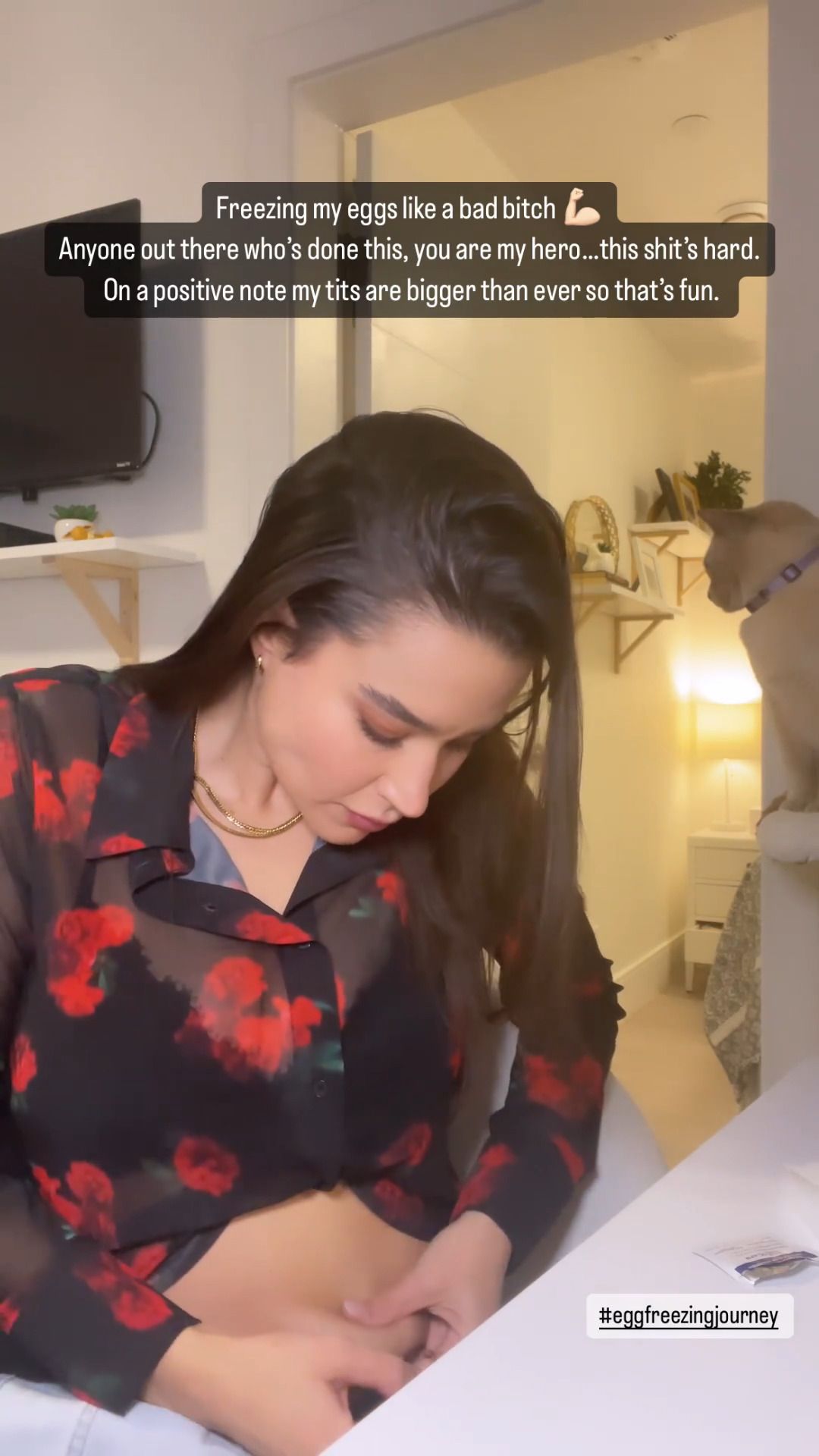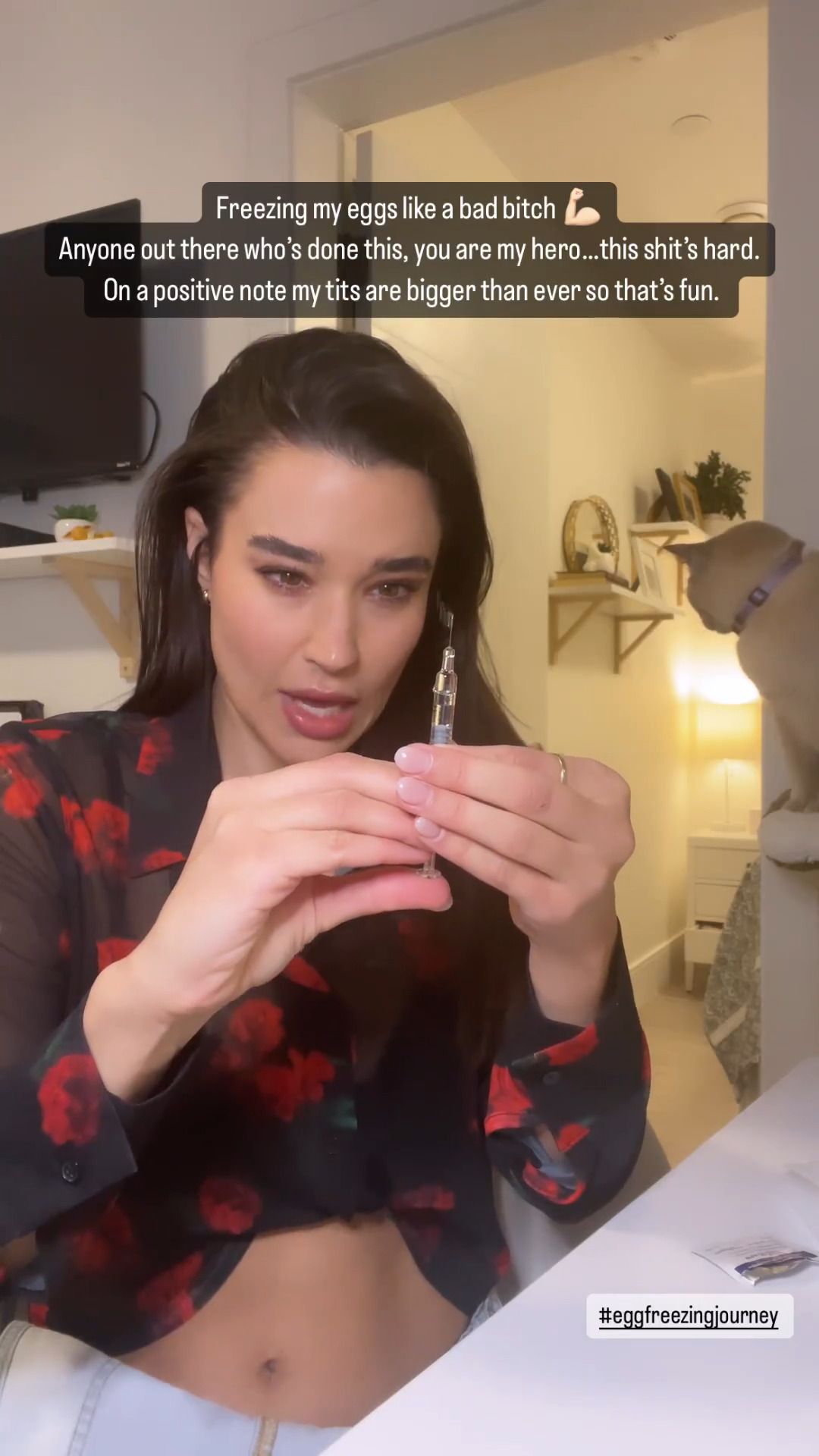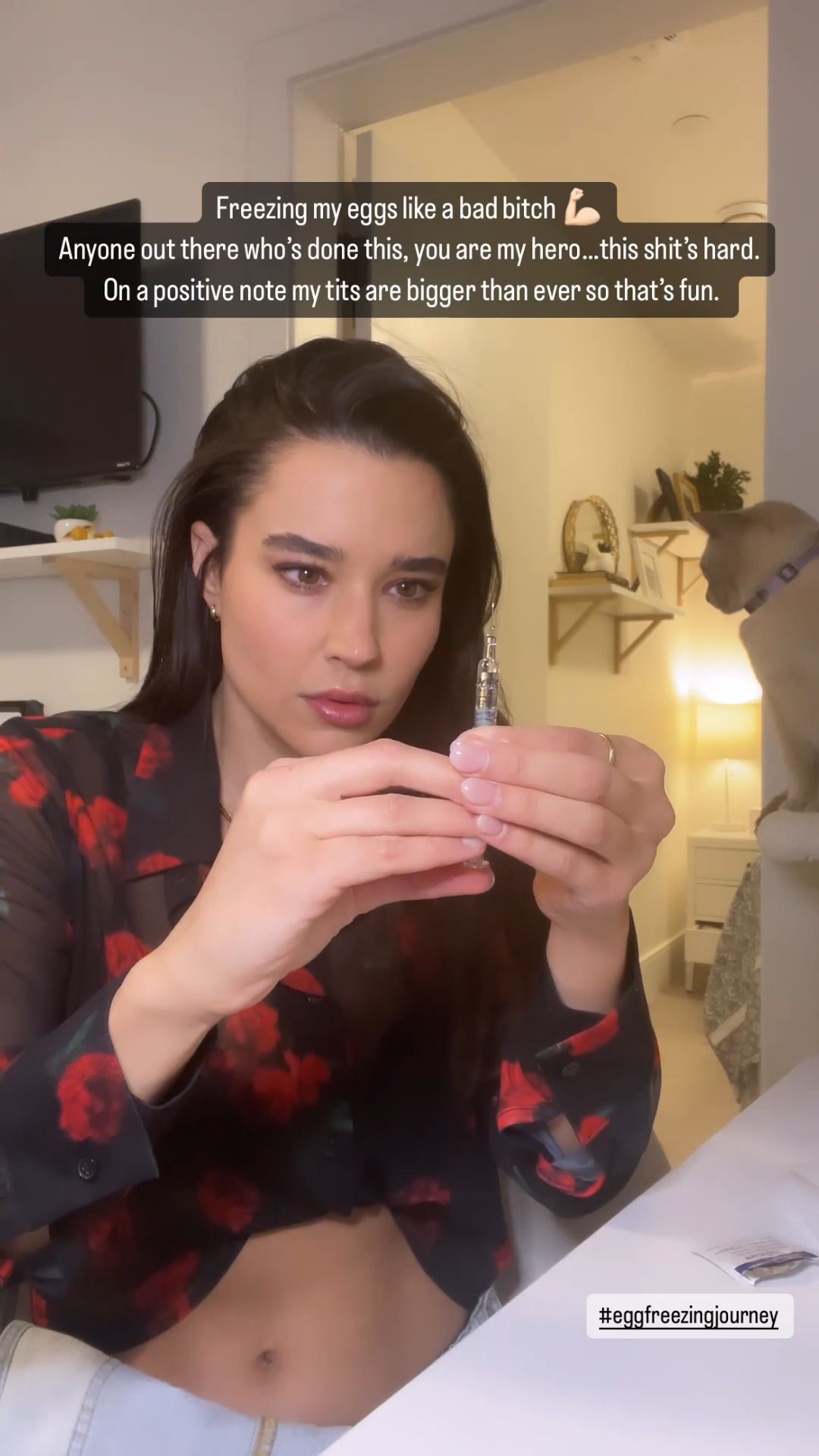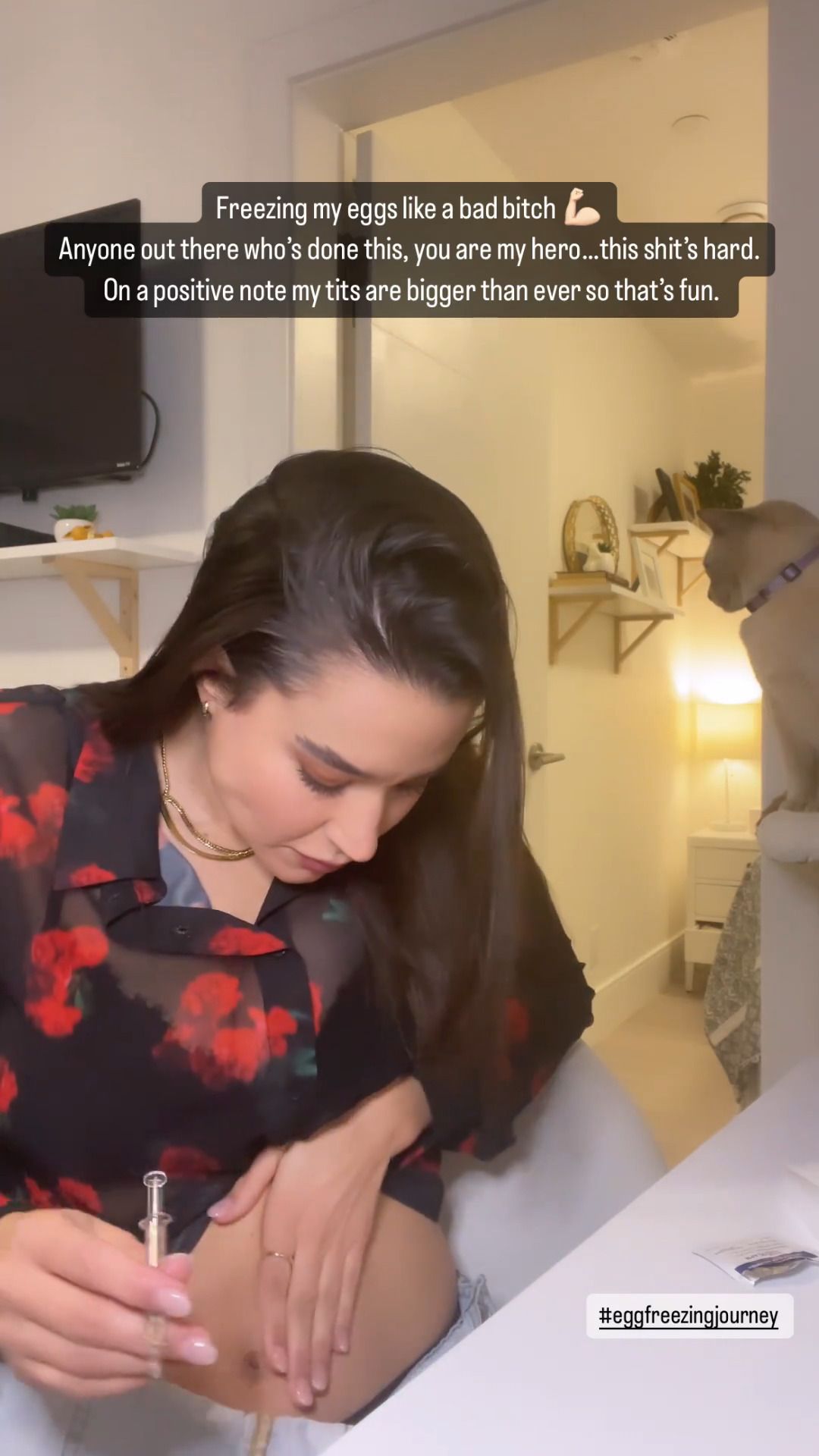I think she is dosing herself with hormones in preparation for freezing her eggs.