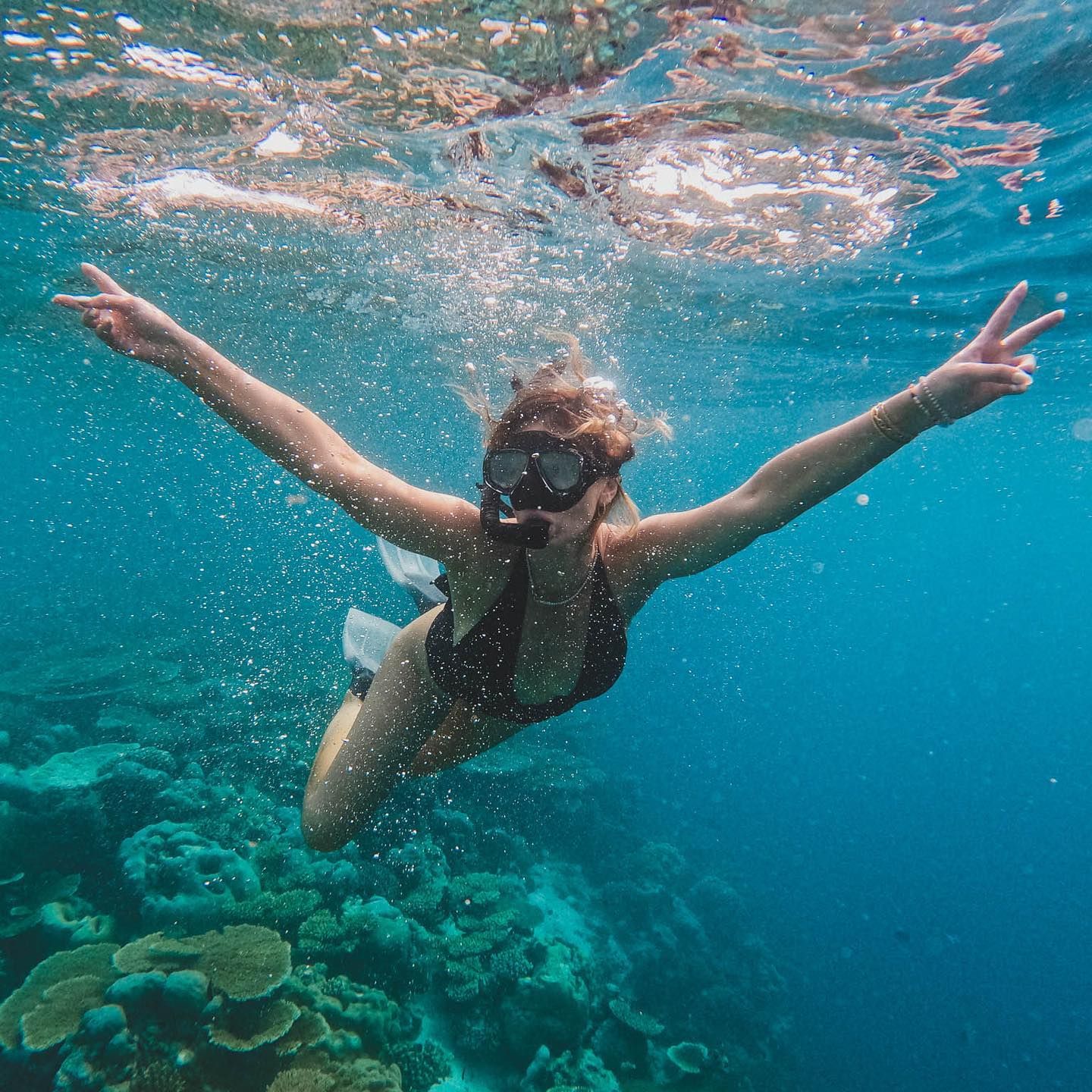So lucky to be here 🫶🏻 A day of snorkelling was HILARIOUS all of us trying to swim through the waves not realising how big they would be. Beautiful dolphins joining us on our way back -magical. ❤️ Loving the Maldives!!!