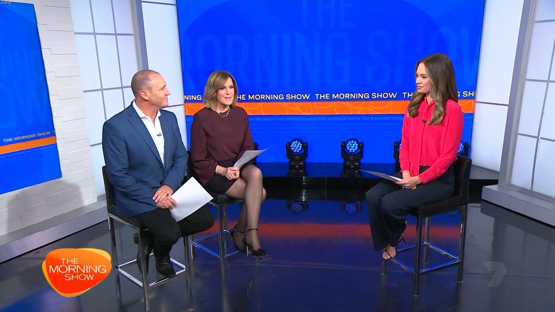 Interesting skirt today. Kinda shows leg but then kinda doesn’t. Still looked hot with a bit showing just before 10 with home and away actors