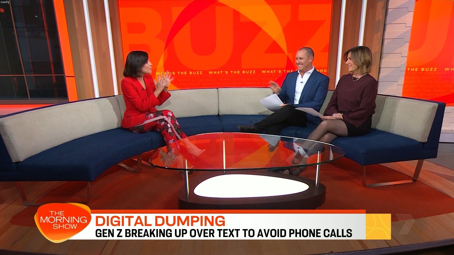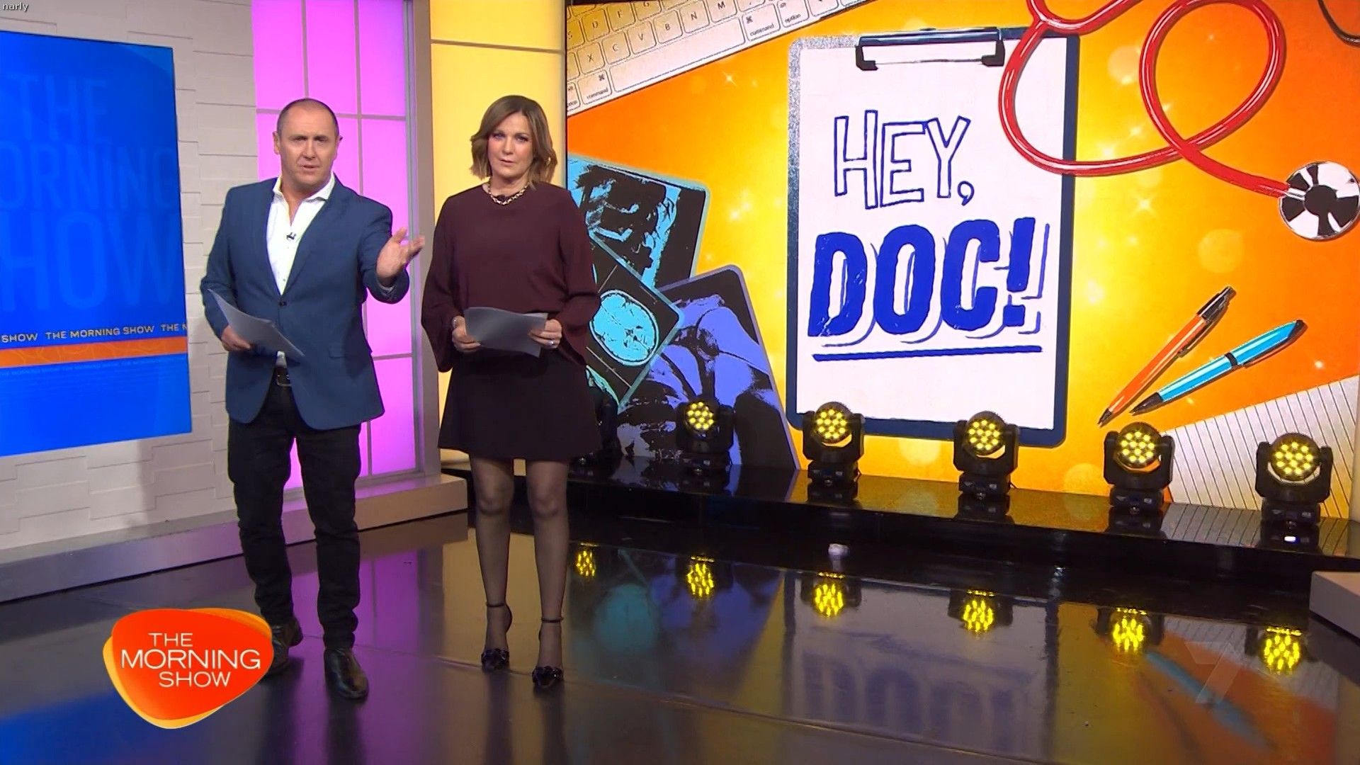 Interesting skirt today. Kinda shows leg but then kinda doesn’t. Still looked hot with a bit showing just before 10 with home and away actors