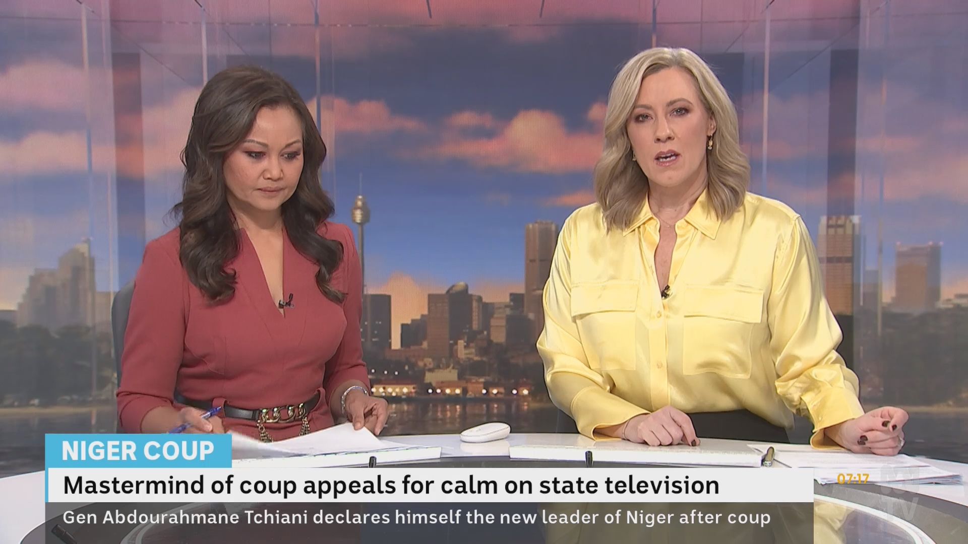 Kath read the morning news today.... unfortunately no caps. She still looks a little peaky and off colour ..... I presume she was ill last Sunday? But she certainly is embracing the fact that she now has a fuller figure. Form-fitting top and long skirt with a lengthy slit, providing a glimpse of her very long legs.... her now more prominent bust, given emphasis by her pinched-in high waist. It is so good to see Kath celebrate her figure in such a classy manner. She is clearly loved by her colleagues......Nat Byrne gushing delight to have a mid-week cameo from Kath, eliciting pseudo embarrassment from her ("now that I've stopped blushing...").She certainly is one of the most loveable women on our screens!