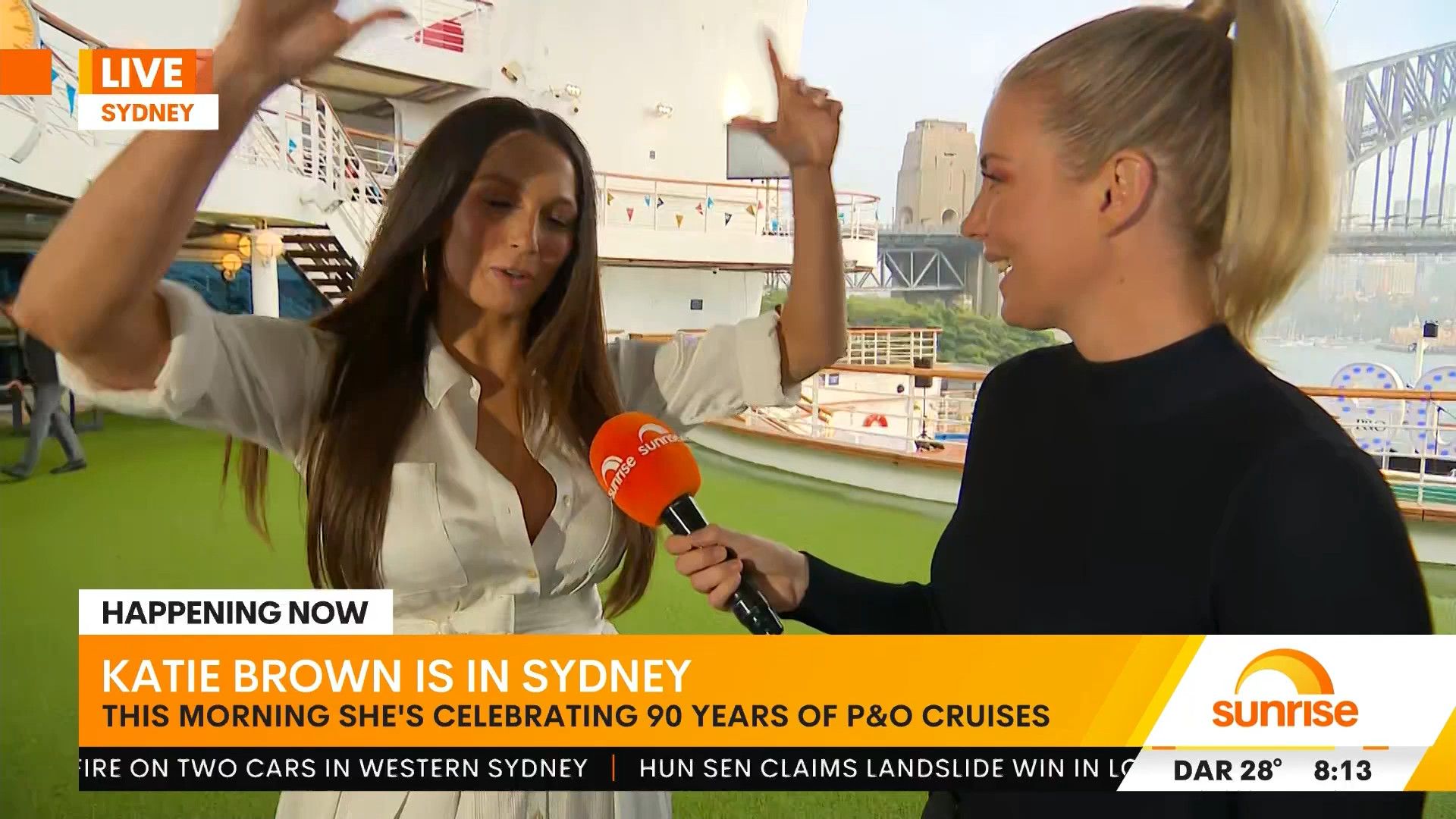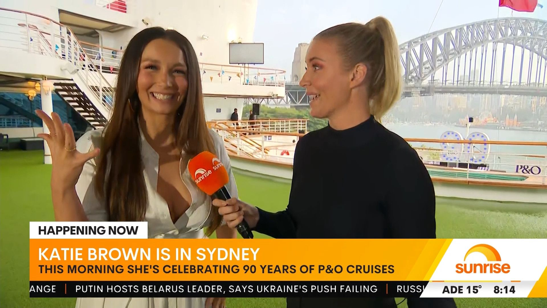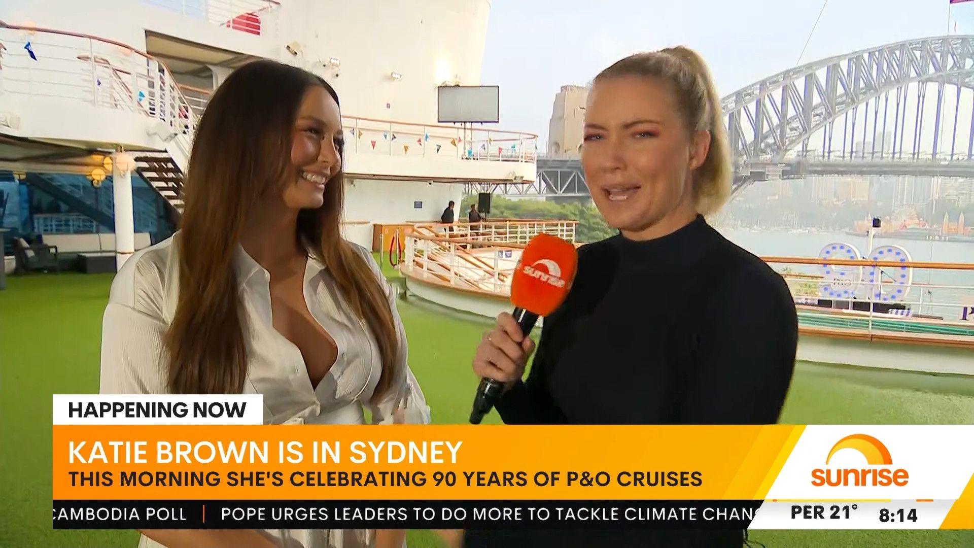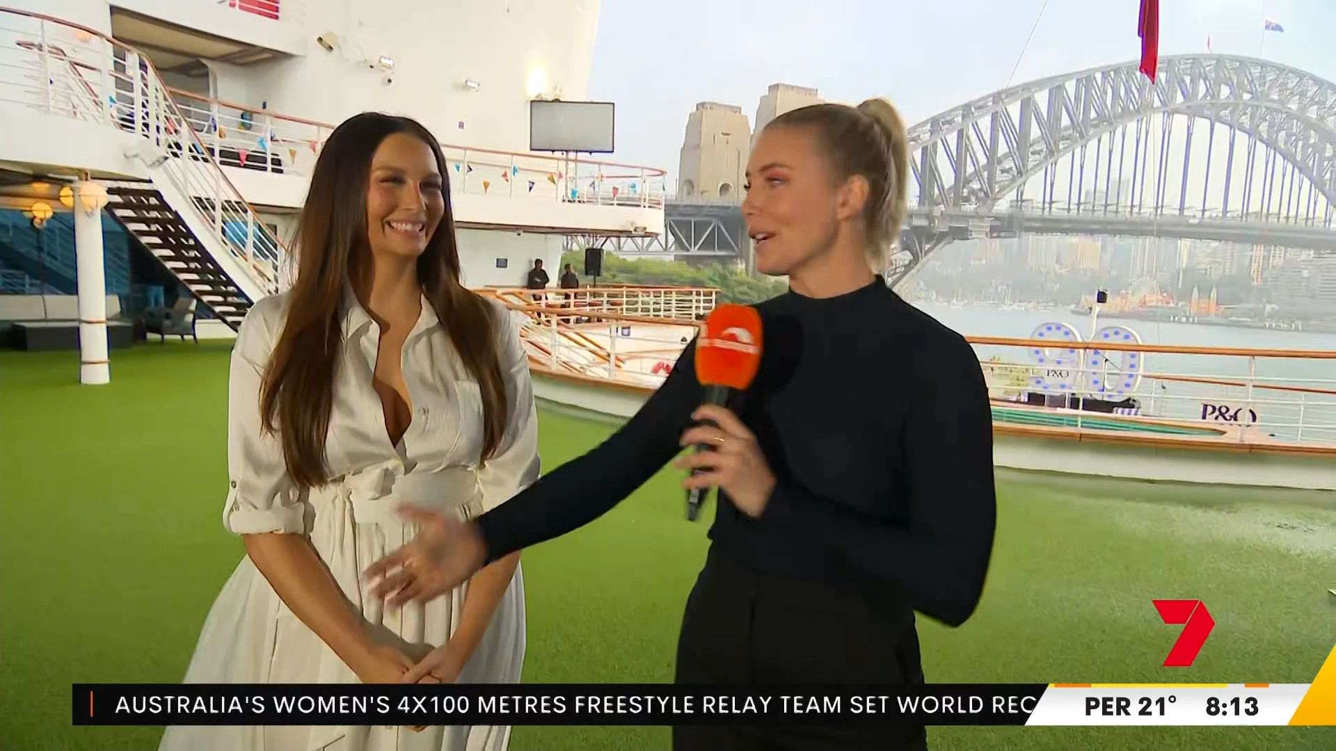This was Ricki-Lee looking amazing during here Sunrise appearance on a P&O boat.