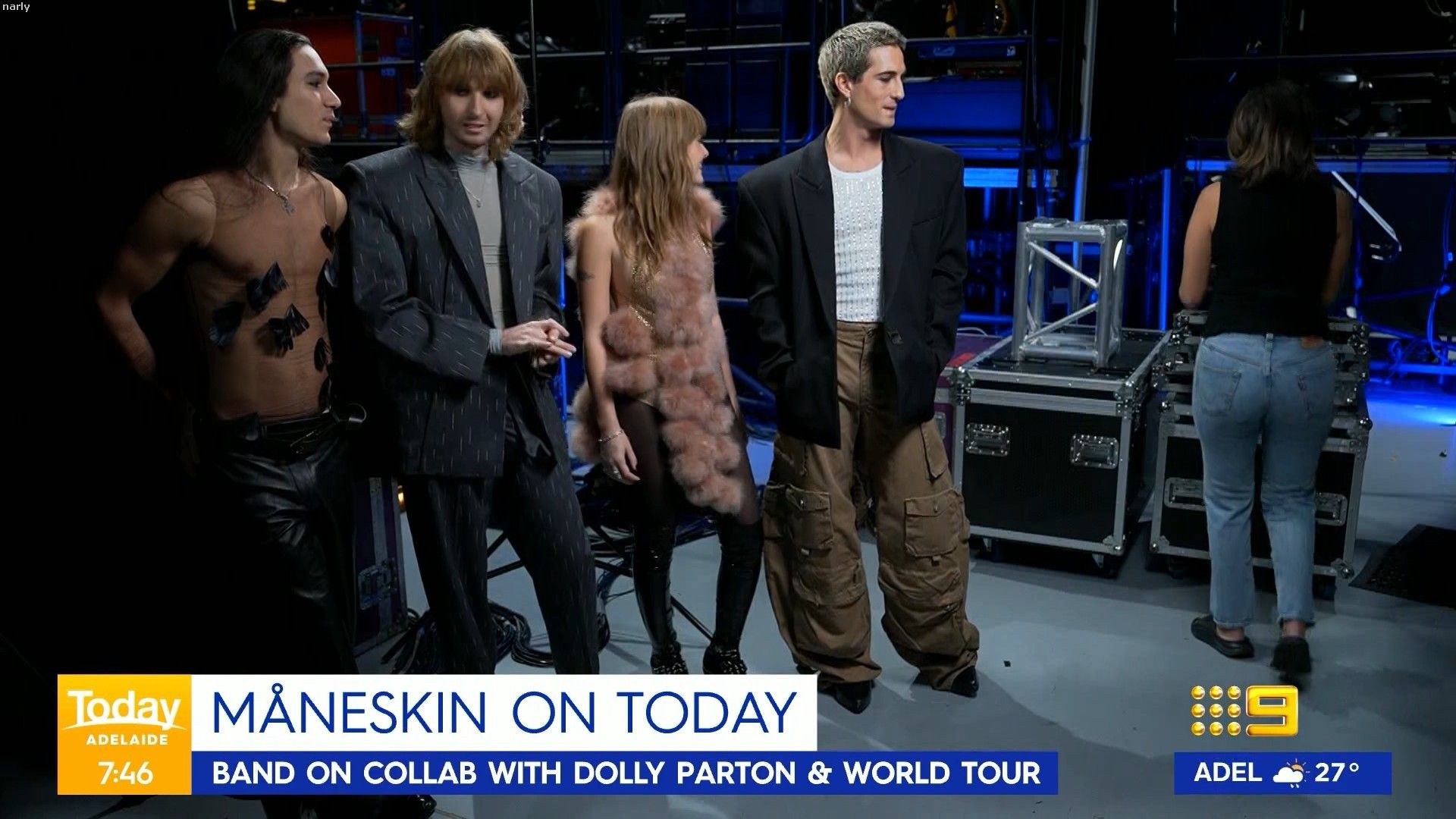 tight top and tight pants...
