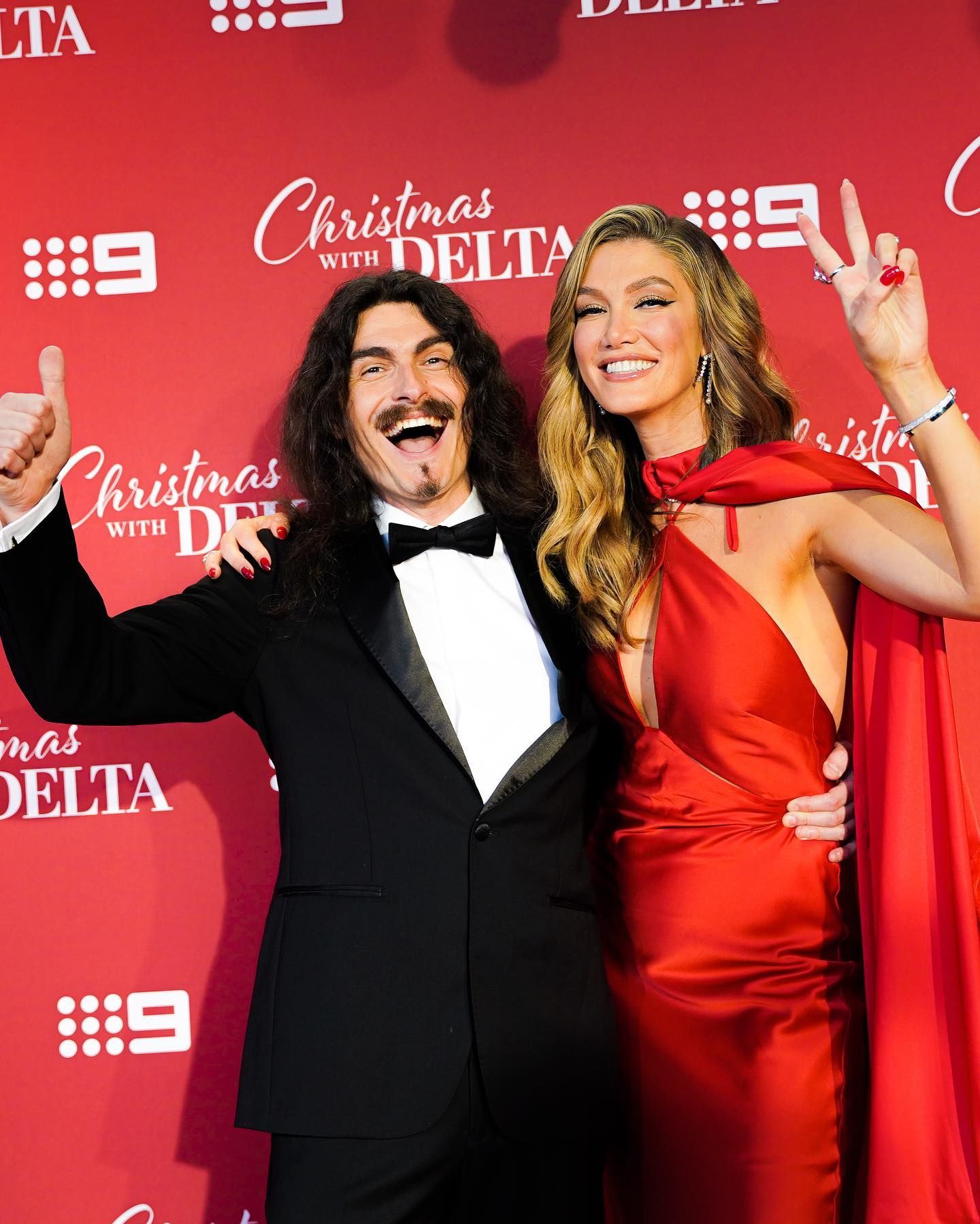 It’s #ChristmaswithDelta week!!!! 💃🏼❤️ 6 DAYS UNTIL OUR SUNDAY VIEWING PARTY! Here’s how we kicked off, red dress and red carpet 🎁 Outfit❣️ @rachelgilbertau