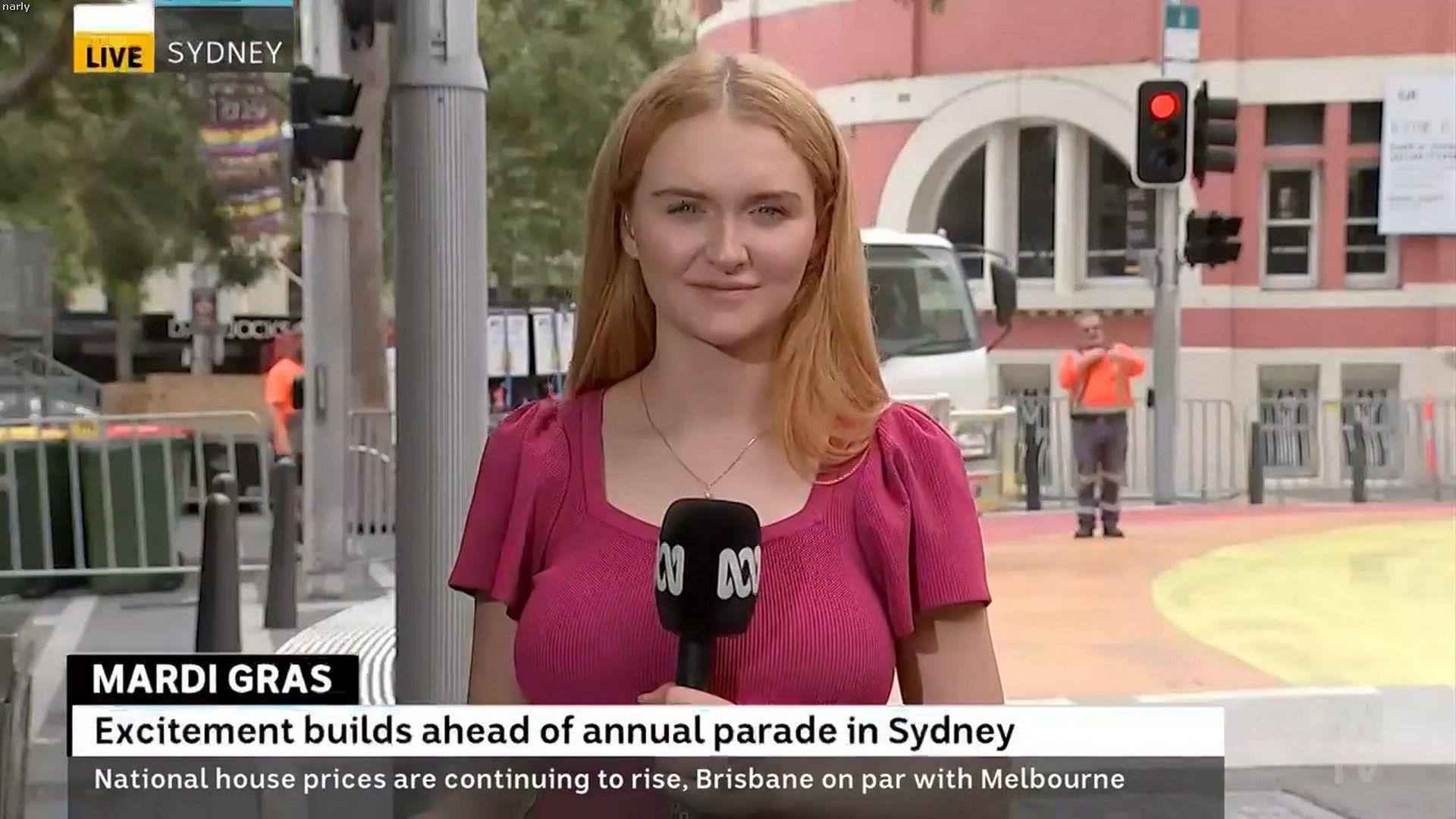 Holy Smokes... This whole site is missing a crazy addition. HELENA BURKE. Young, cute, slim figure, stacked boobs. Saw her on ABC24 about 30min ago, onsite at Sydney Mardi gras preparation. Lucky microphone.