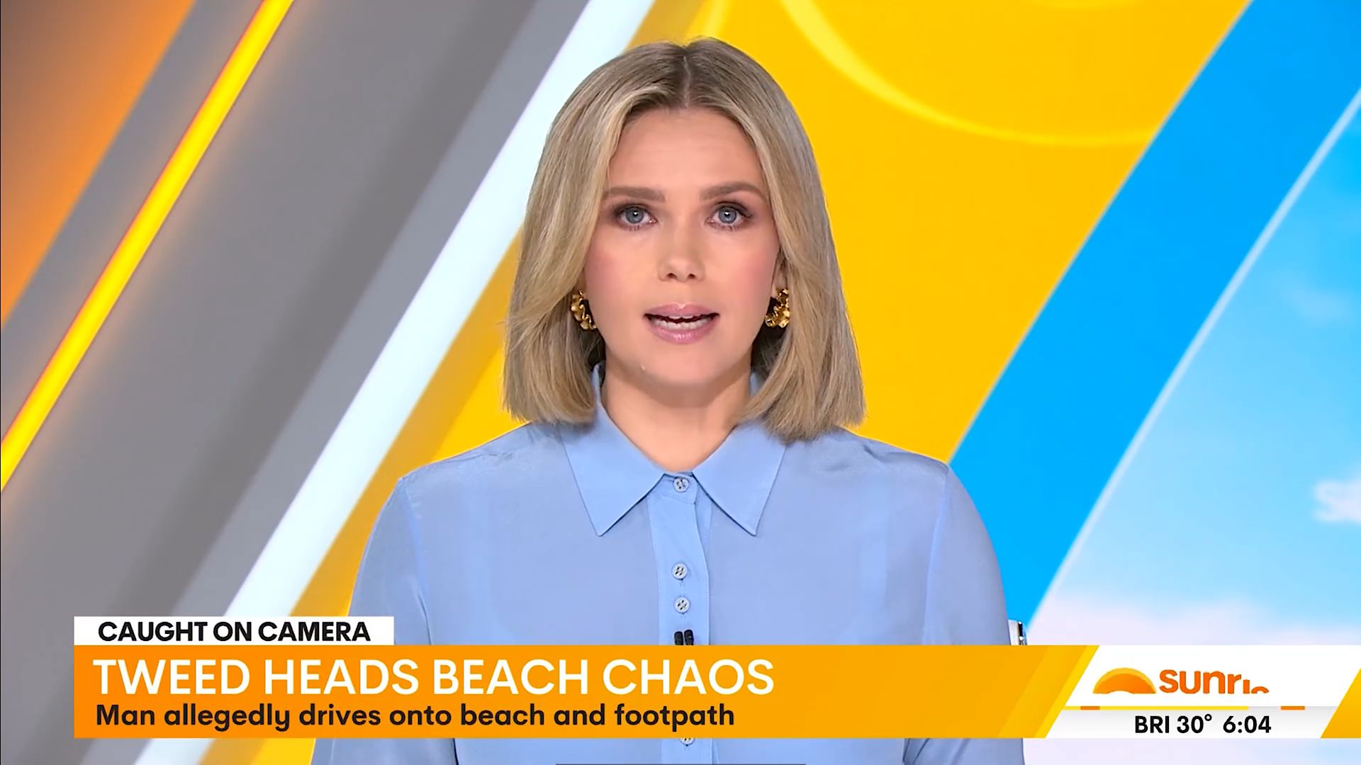 Did anyone happen to capture Edwina this morning, I saw her briefly and she looked stunning today in blue dress, she may have had a wardrobe malfunction as top of dress was clipped up with mic