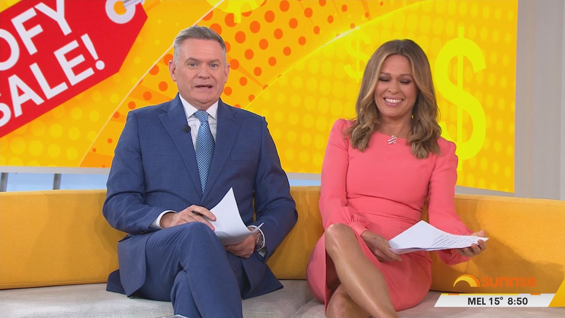 Hosting Weekend Sunrise. Nice leg-cross at 8.50am