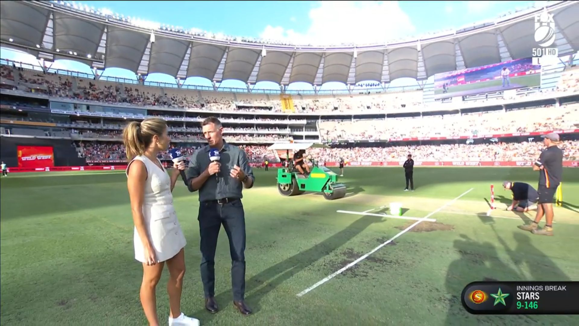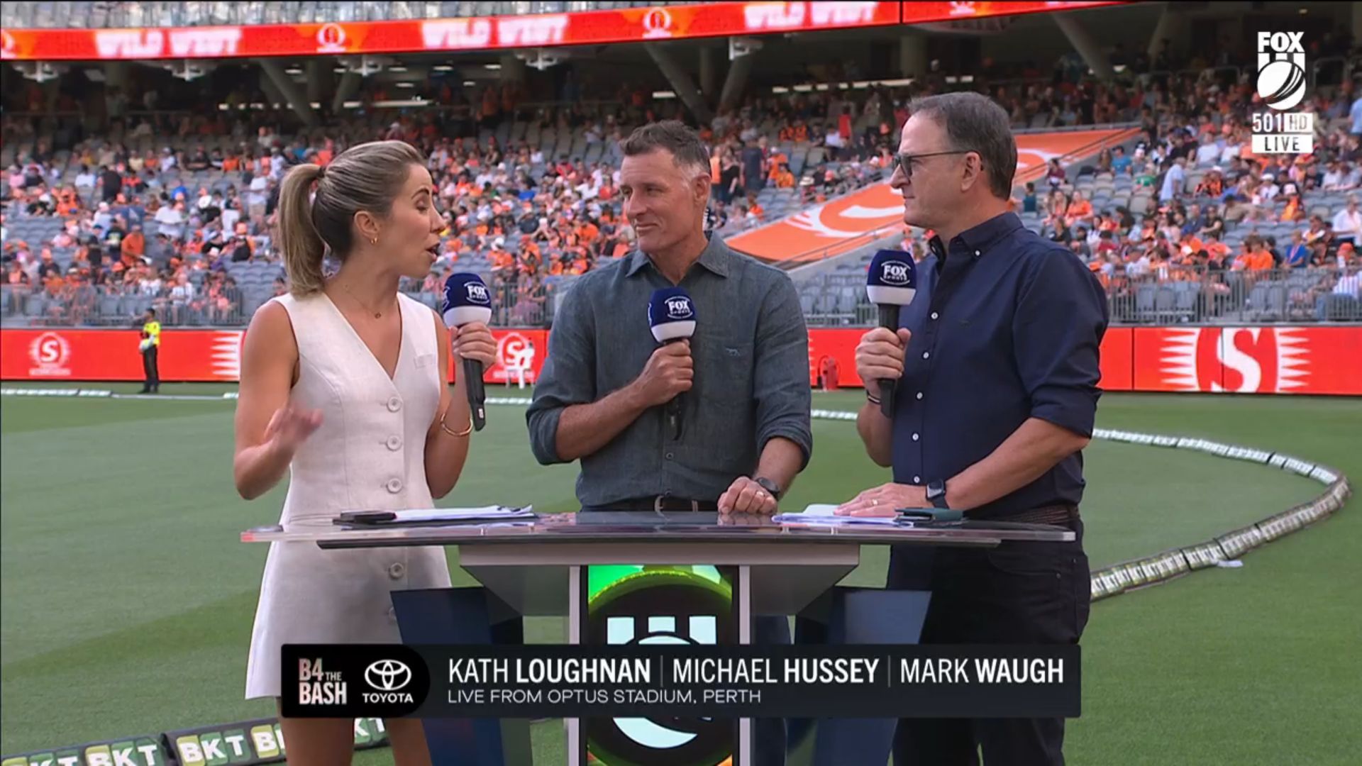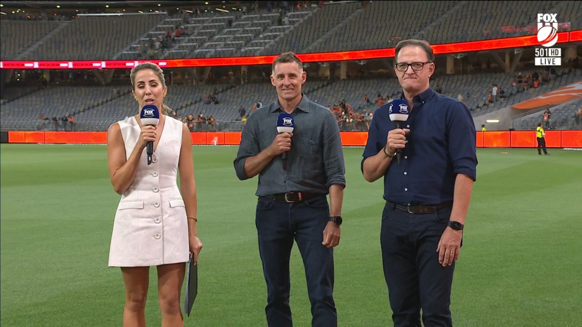 Nice little walk on at start of big bash coverage tonight. Showing full length shots in a little white dress