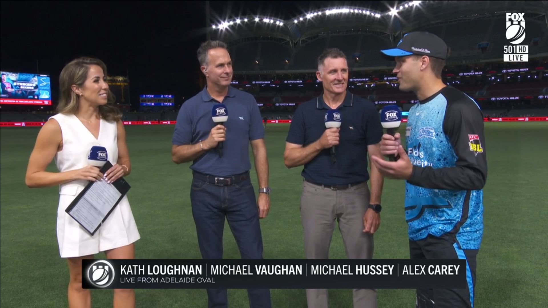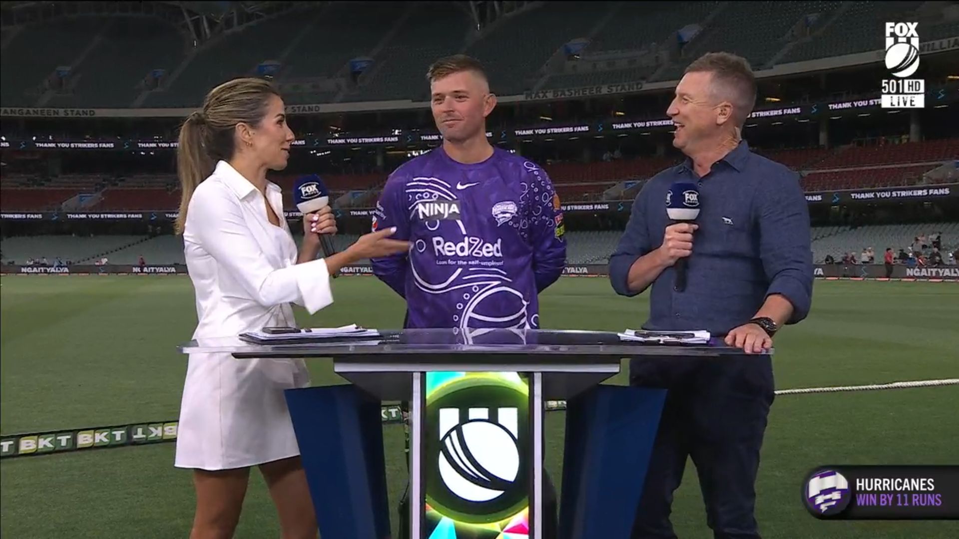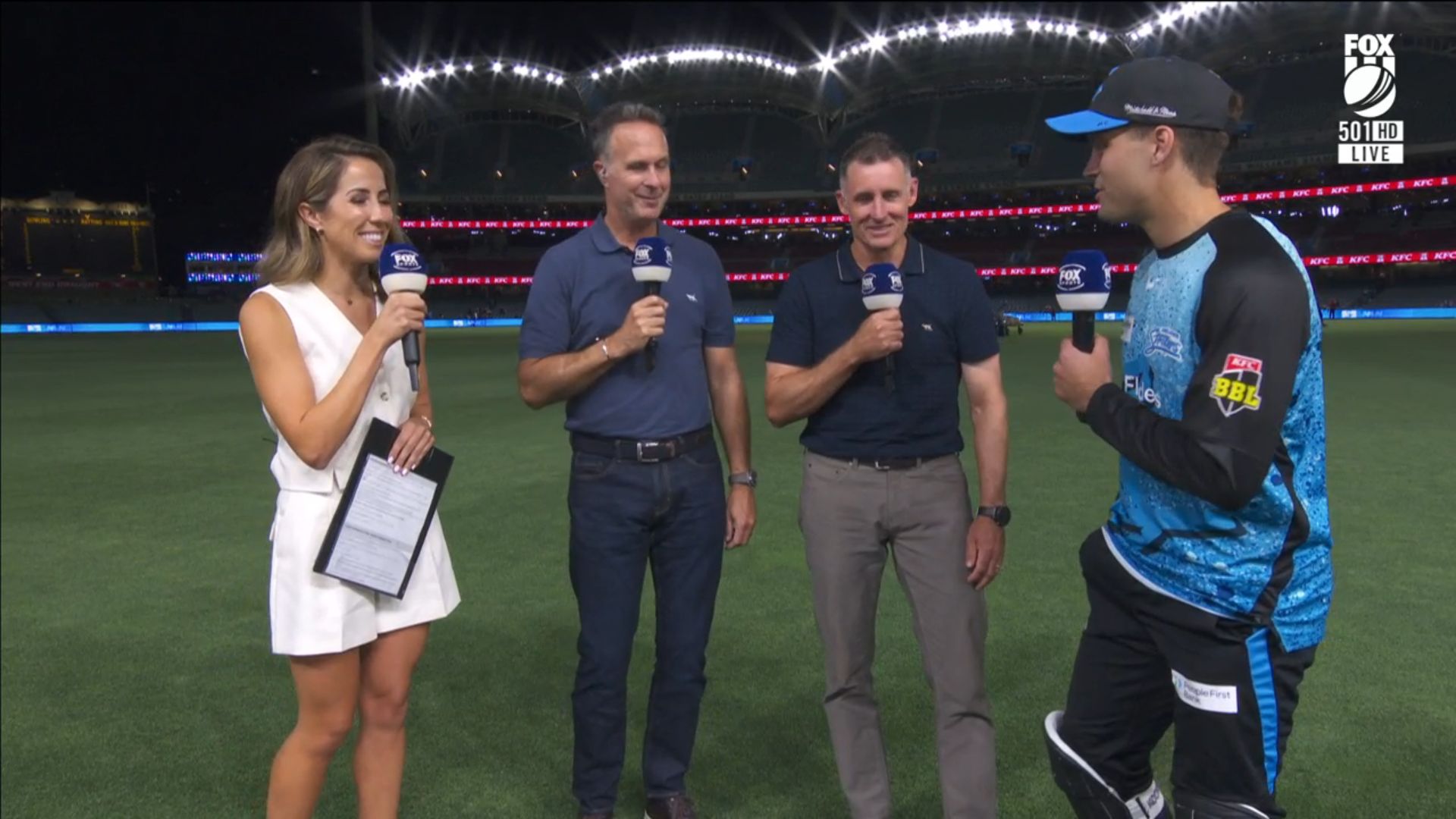Wearing a nice short, little white number on the big bash in Adelaide tonight.