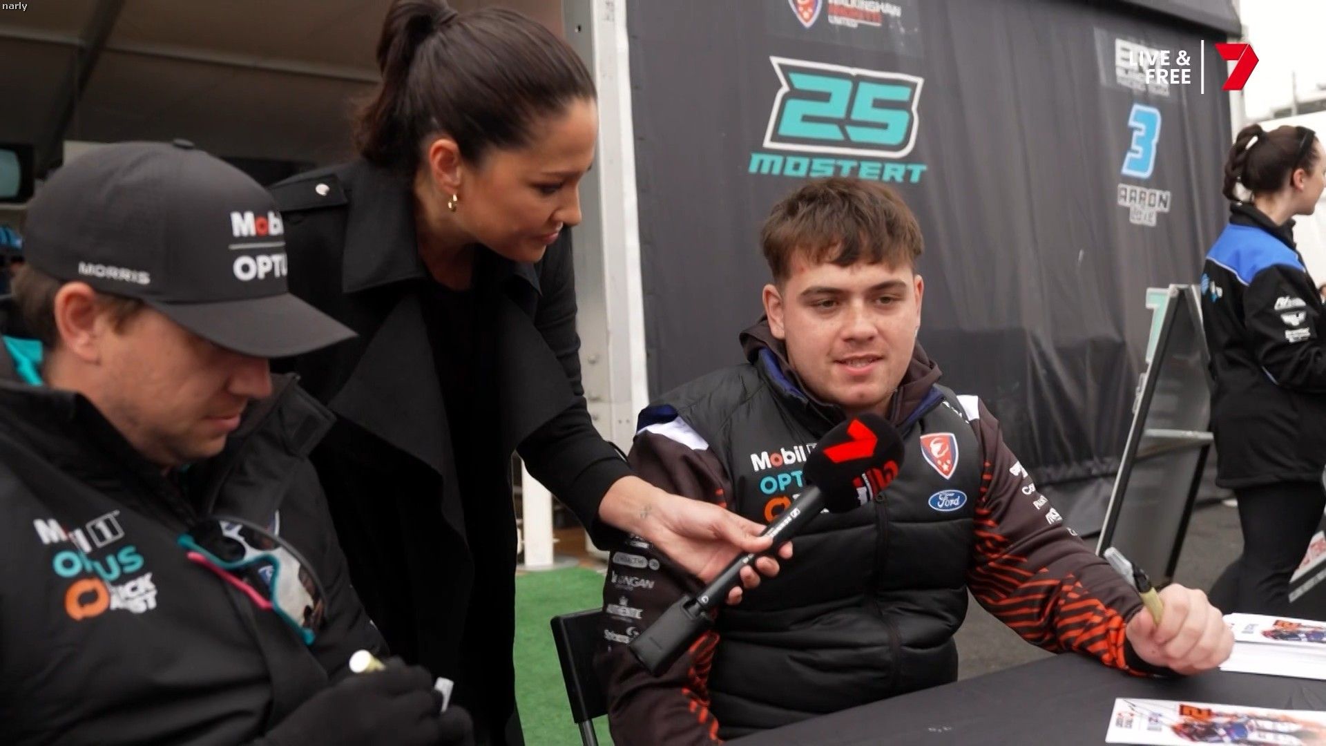 Molly cringing with embarrassment for Mel by proxy. Notice too how the HSE requirement for Nomex fireproof pajamas for access in the pits has been thrown out the window when you turn up in leather pants.