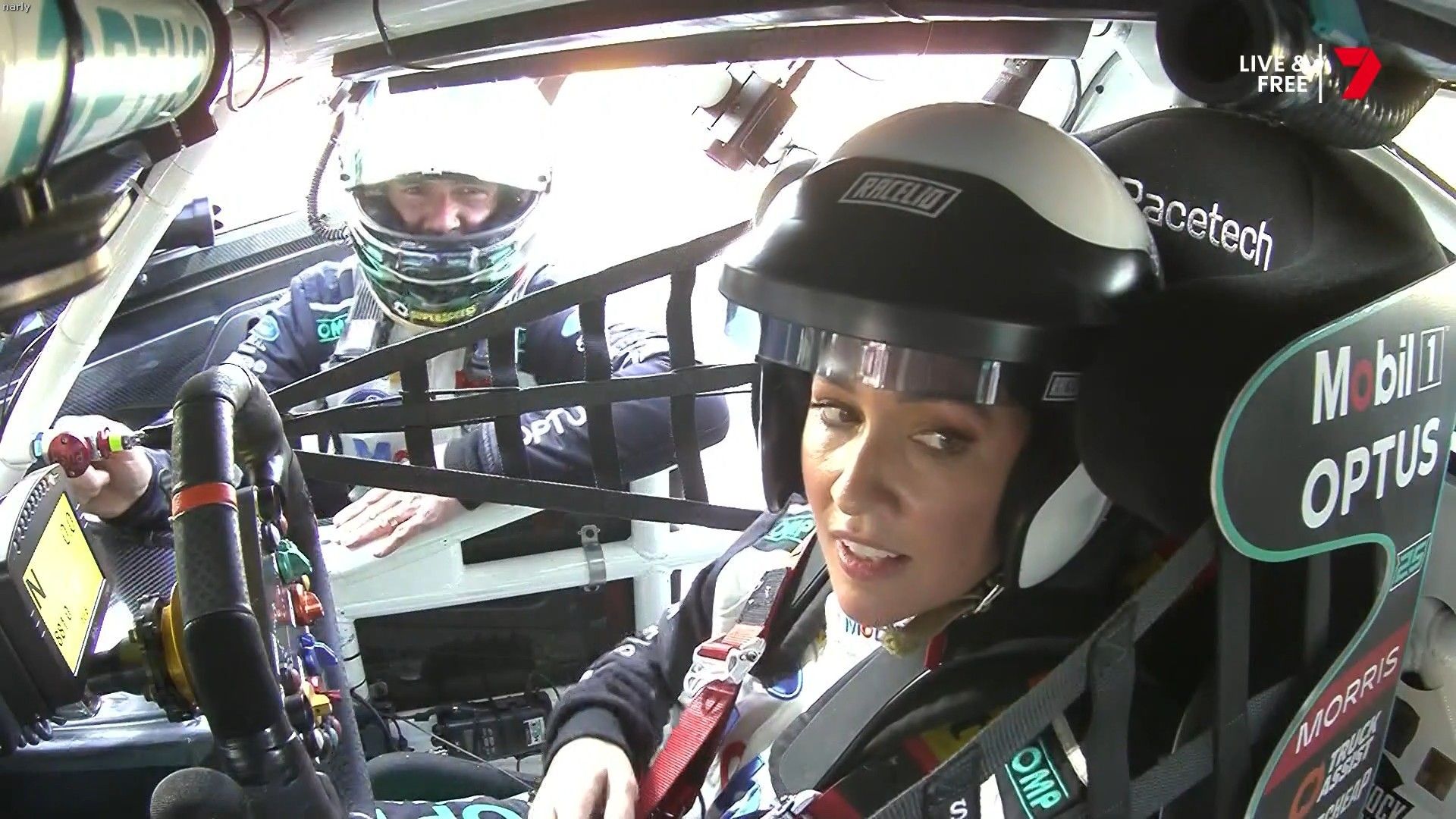 Molly cringing with embarrassment for Mel by proxy. Notice too how the HSE requirement for Nomex fireproof pajamas for access in the pits has been thrown out the window when you turn up in leather pants.