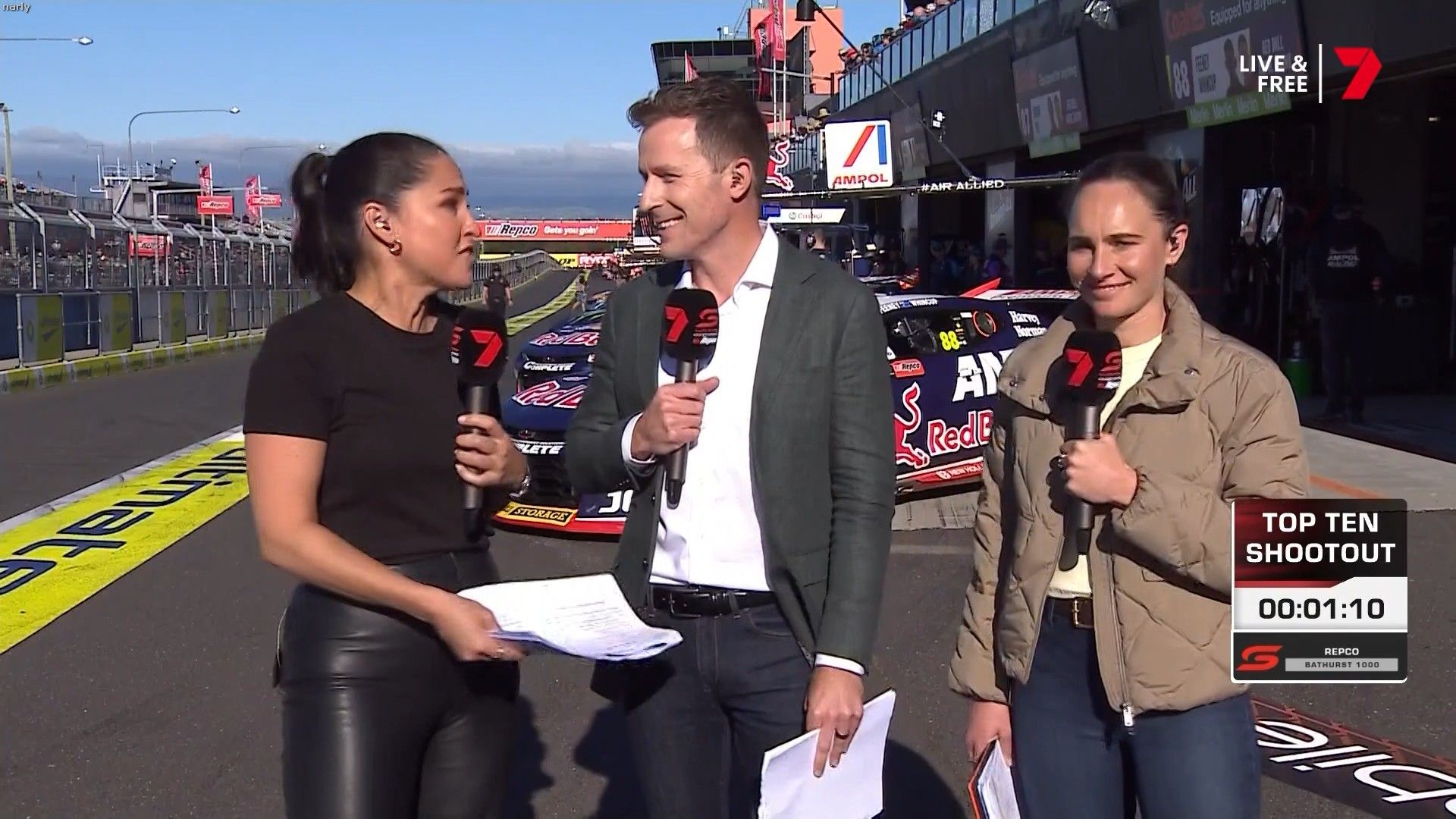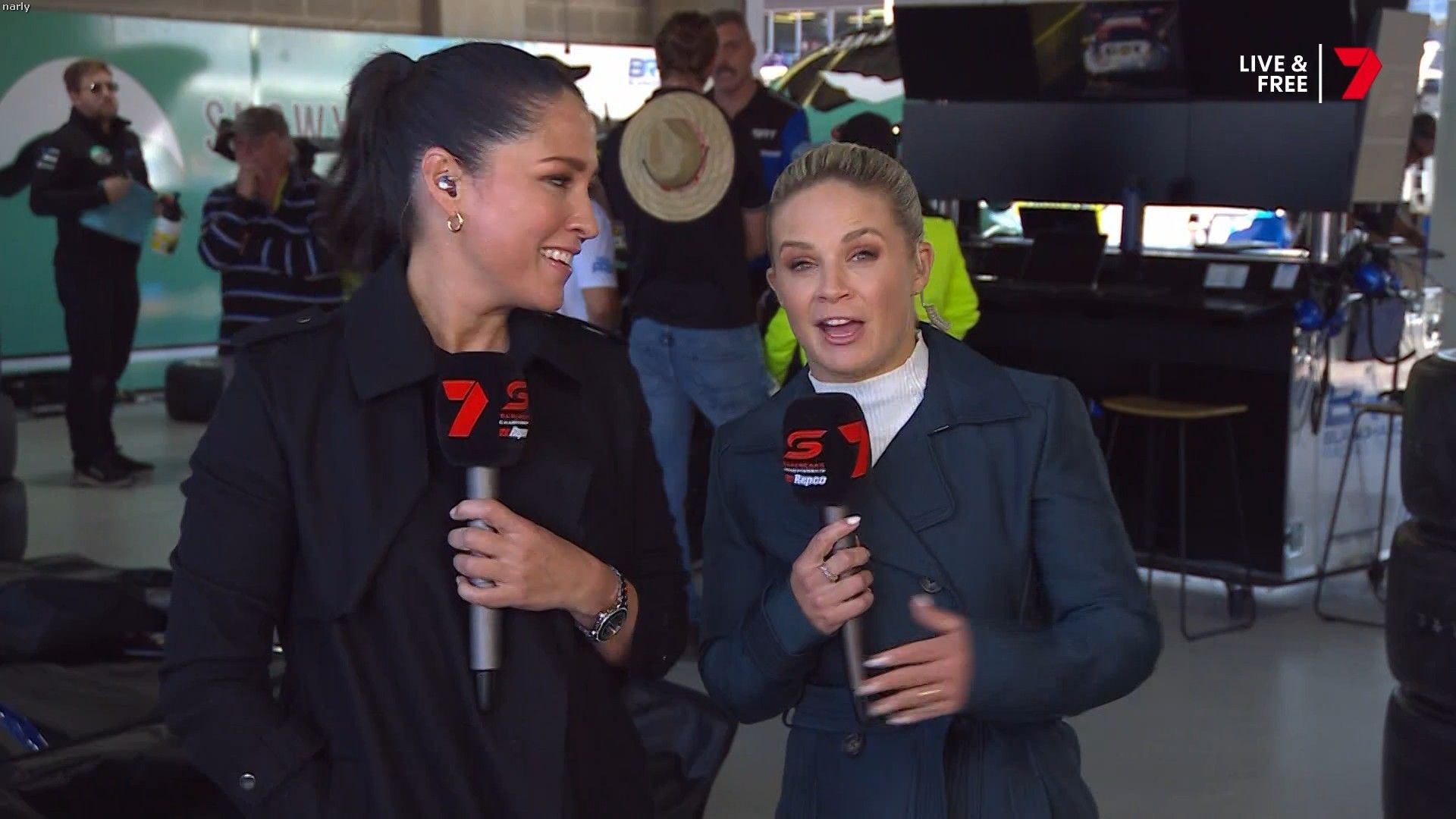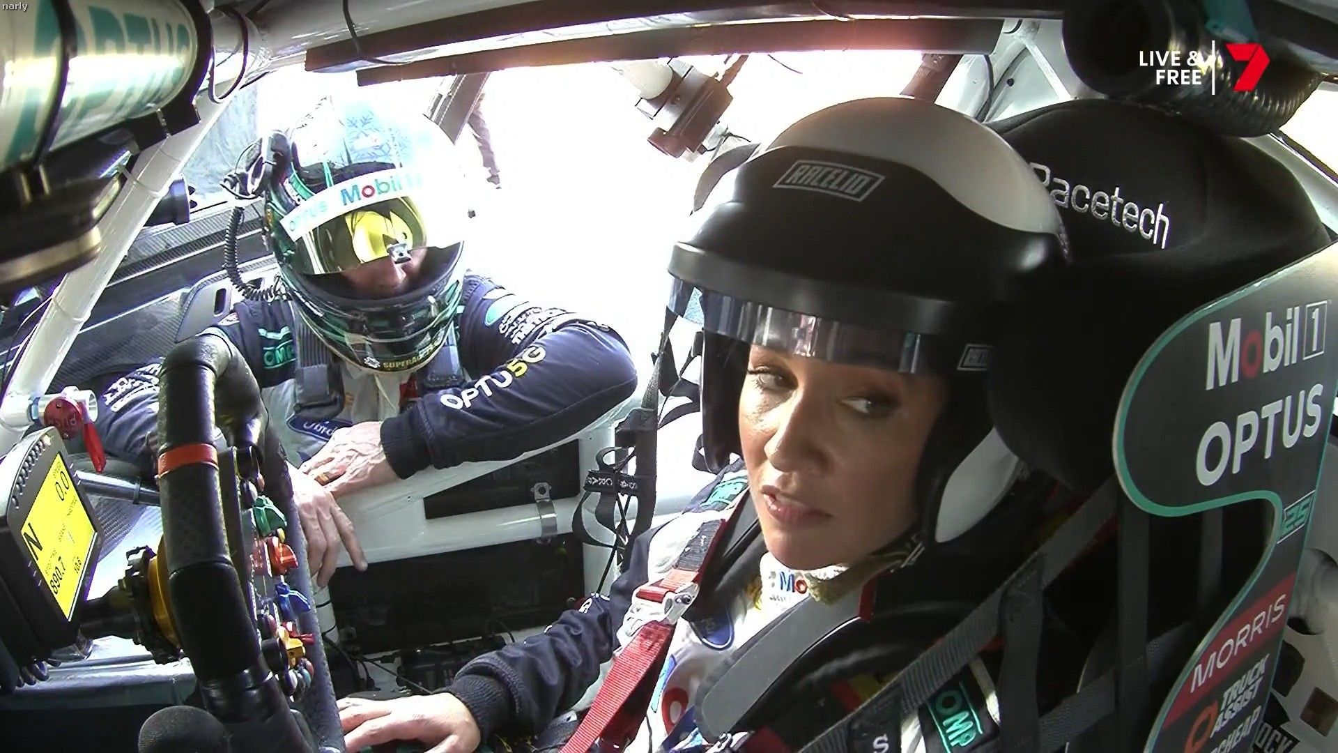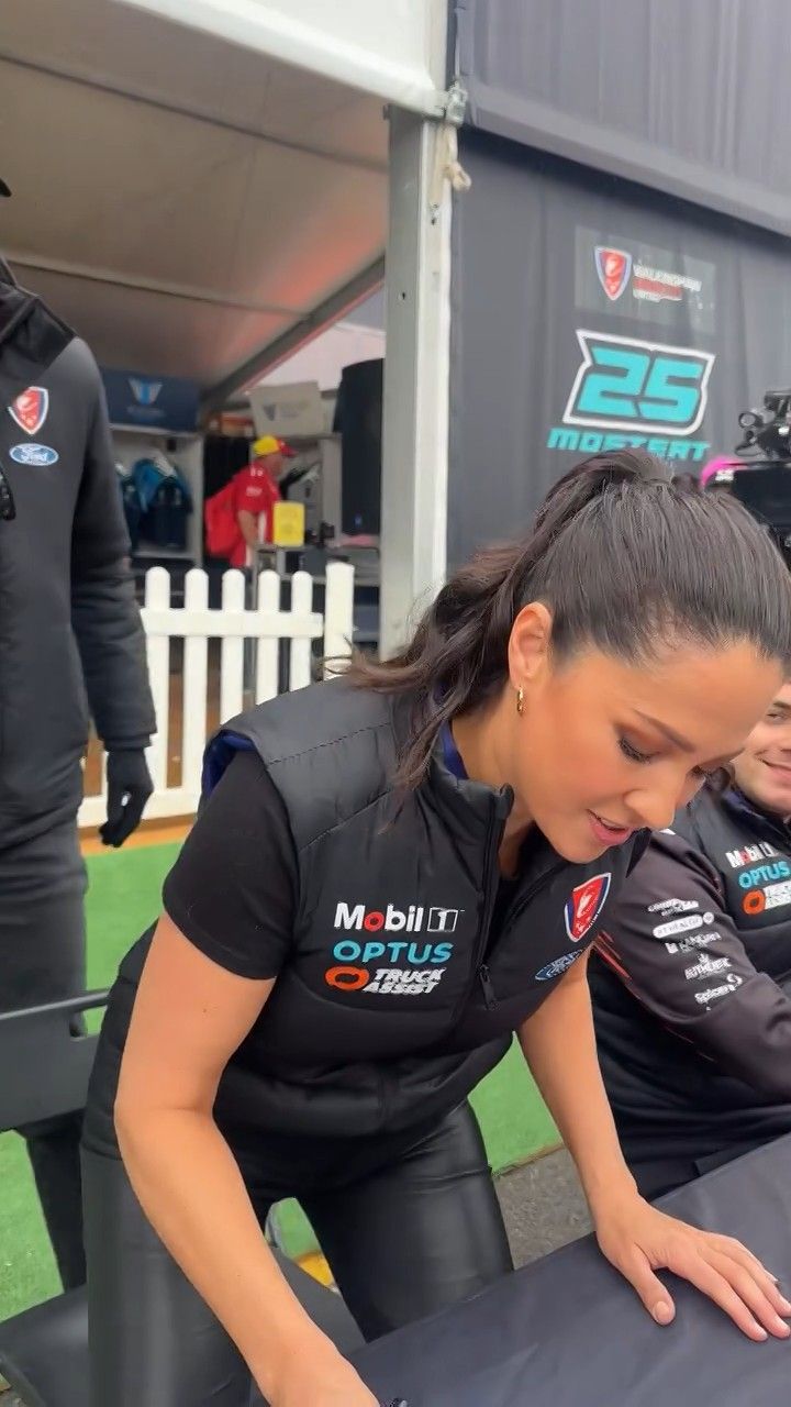 Quote:  Molly cringing with embarrassment for Mel by proxy. Notice too how the HSE requirement for Nomex fireproof pajamas for access in the pits has been thrown out the window when you turn up in leather pants. Nobody in this picture is wearing it Romper suits are only required in pit lane if refueling is going to take place in the lane. This picture was taken 6 minutes before the shootout, there is no pit lane refueling during the shootout. Oh and you can wear shorts and a T-shirt in the pits all the time if you like, you just can’t cross the line from the garage when there is the possibility of a fire due to refueling. Here’s riana crehan in the lane during qualifying (no refueling) in shorts and a tank top.