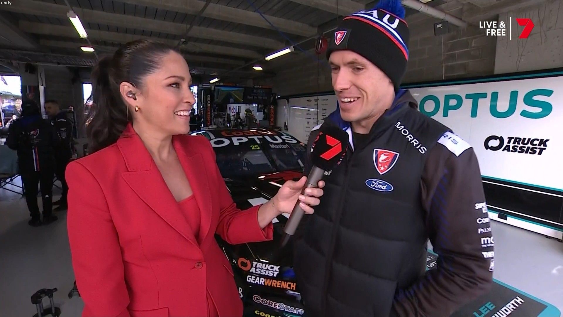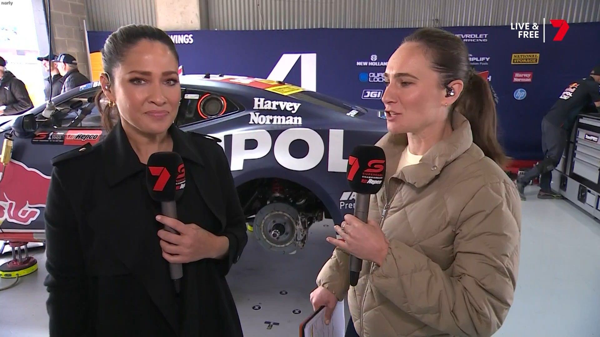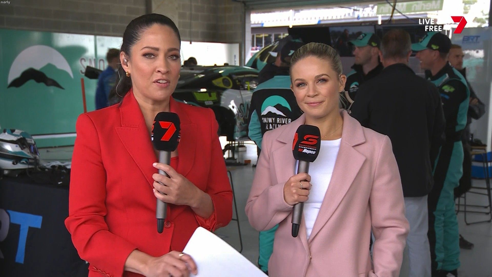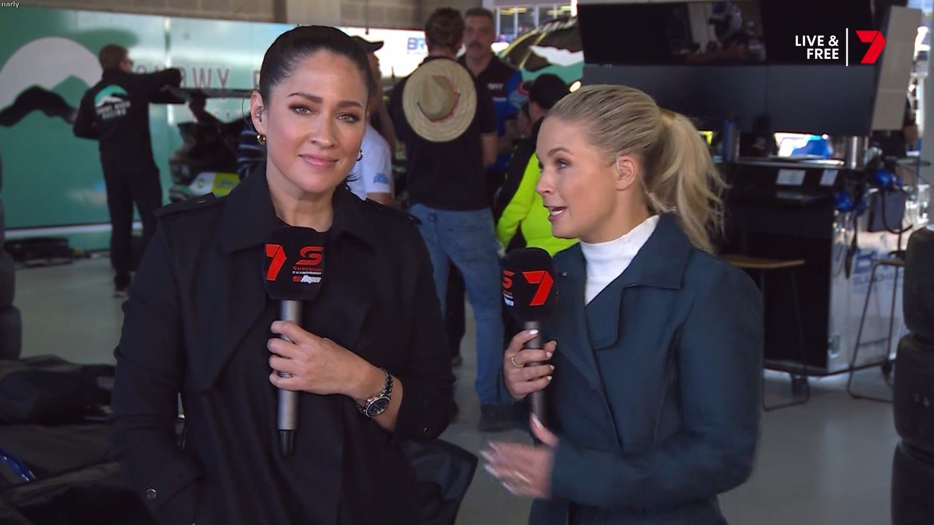Quote:  Molly cringing with embarrassment for Mel by proxy. Notice too how the HSE requirement for Nomex fireproof pajamas for access in the pits has been thrown out the window when you turn up in leather pants. Nobody in this picture is wearing it Romper suits are only required in pit lane if refueling is going to take place in the lane. This picture was taken 6 minutes before the shootout, there is no pit lane refueling during the shootout. Oh and you can wear shorts and a T-shirt in the pits all the time if you like, you just can’t cross the line from the garage when there is the possibility of a fire due to refueling. Here’s riana crehan in the lane during qualifying (no refueling) in shorts and a tank top.