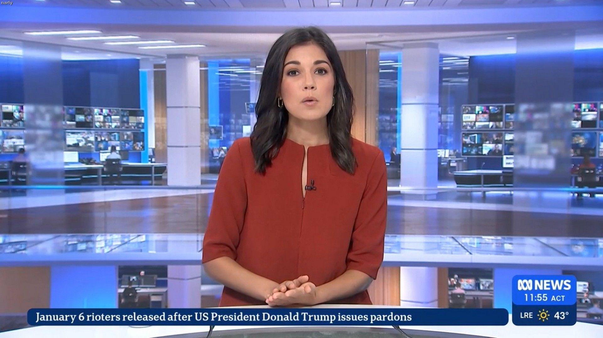 A rather fetching new dress not seen before. Strange design though in having buttons on the male side. Maybe so she can donate it to Nate the weather guy for him to wear after she's done with it?