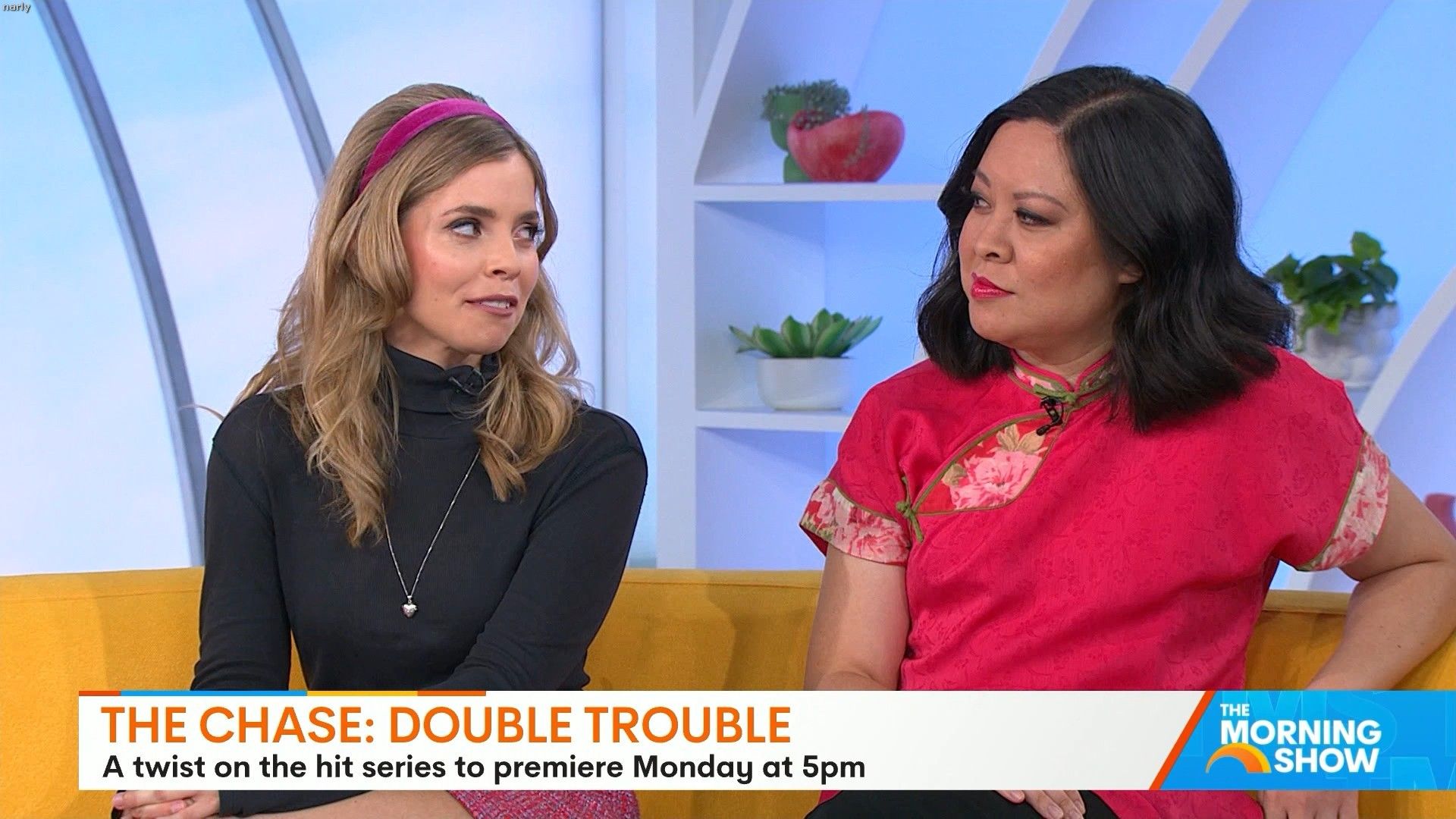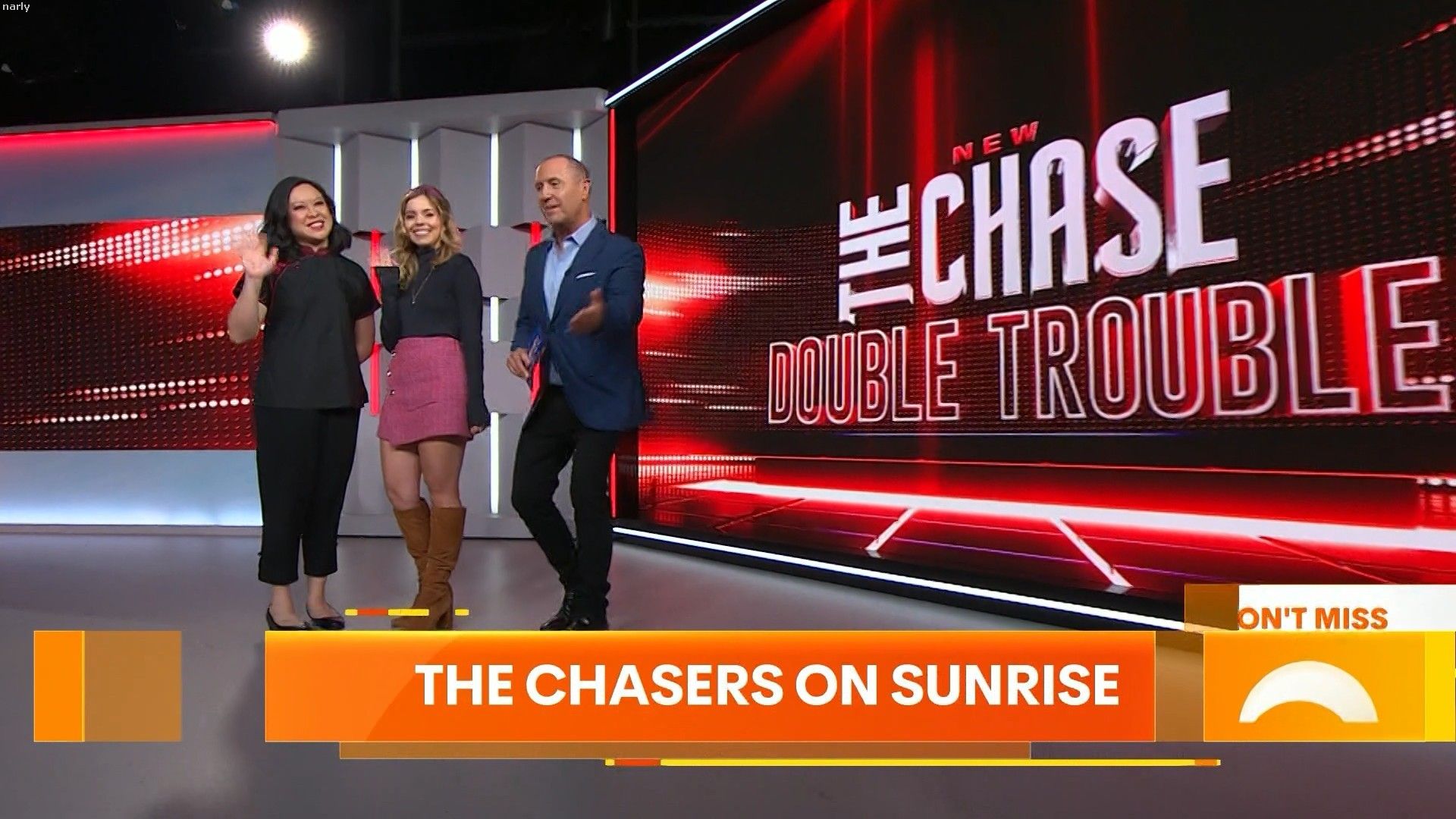 The girl who plays the smiling assassin Mara Lejins was on sunrise at 9am very leggy and giving Daphne from Scooby vibes Also on the morning show approx 9:45