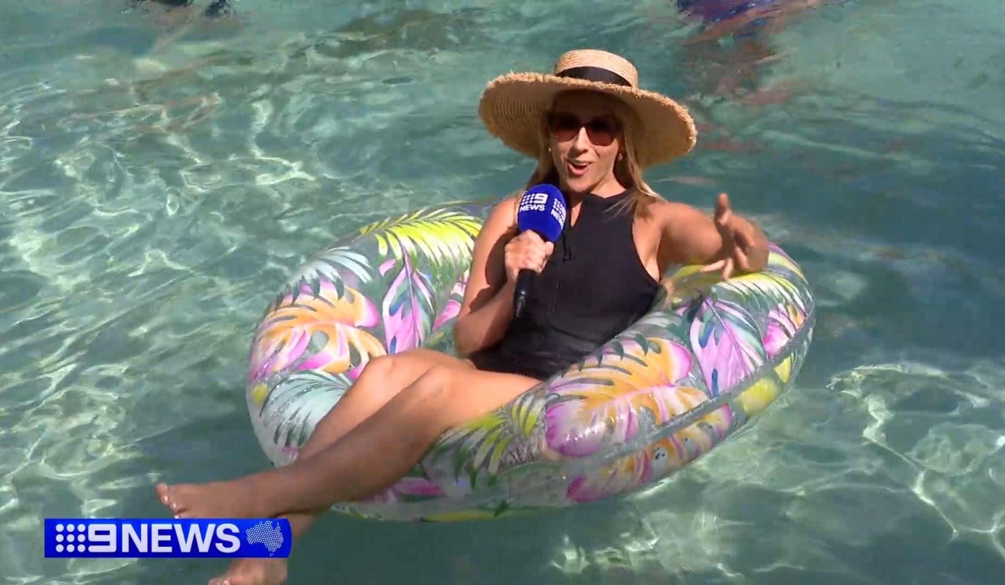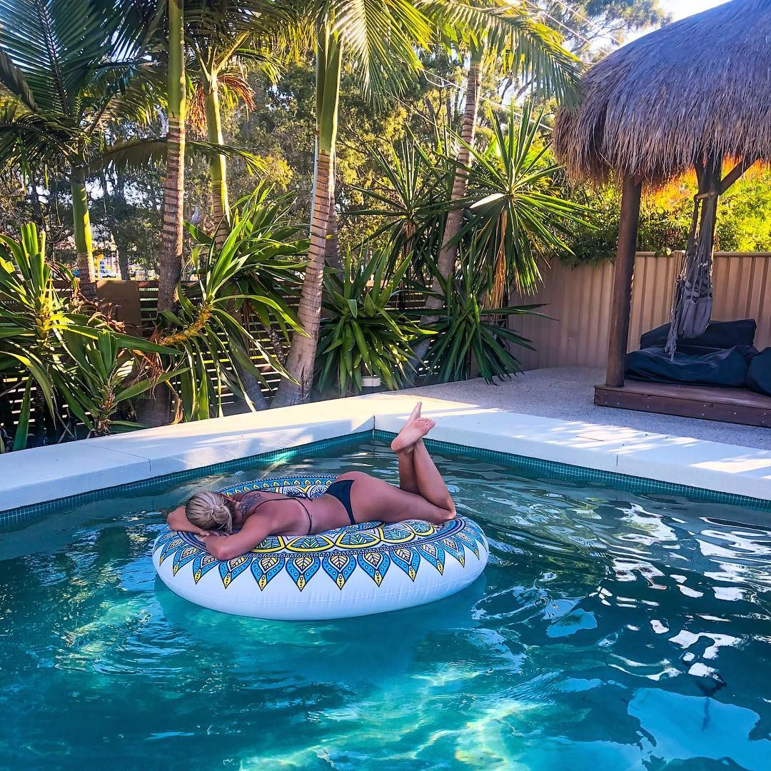 Women on pool inflatables