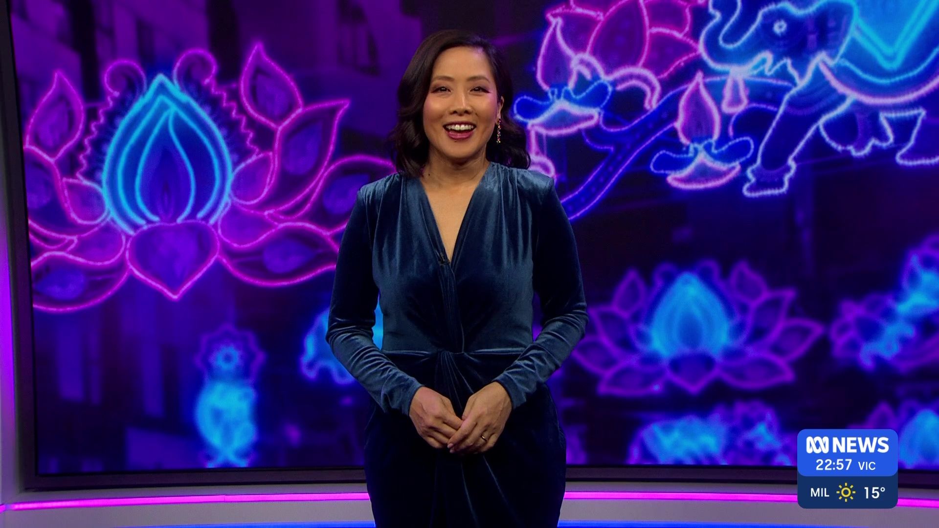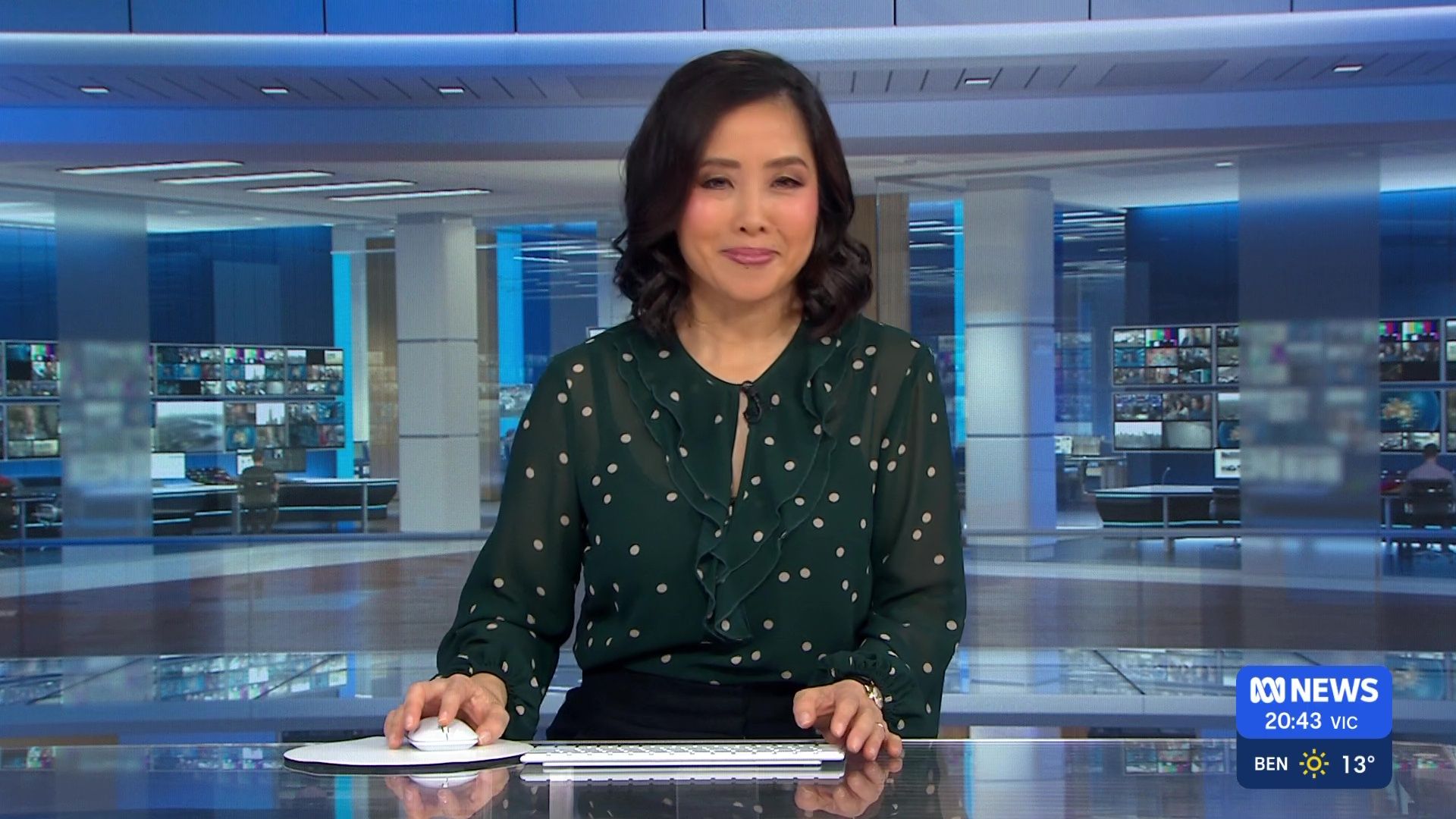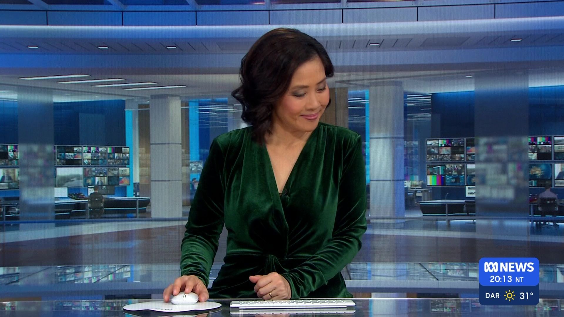 Don't like her in blue velvet? She's got the same outfit in green...