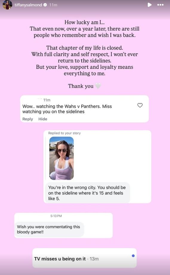 Is she still going on about getting fired from her sideline sportsbimbo twirling her hair at the footy players gig?