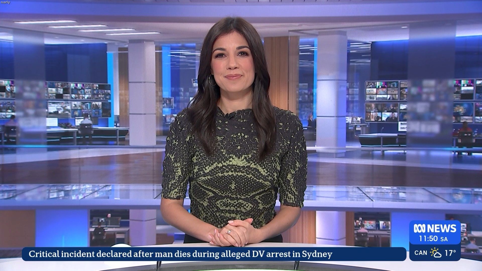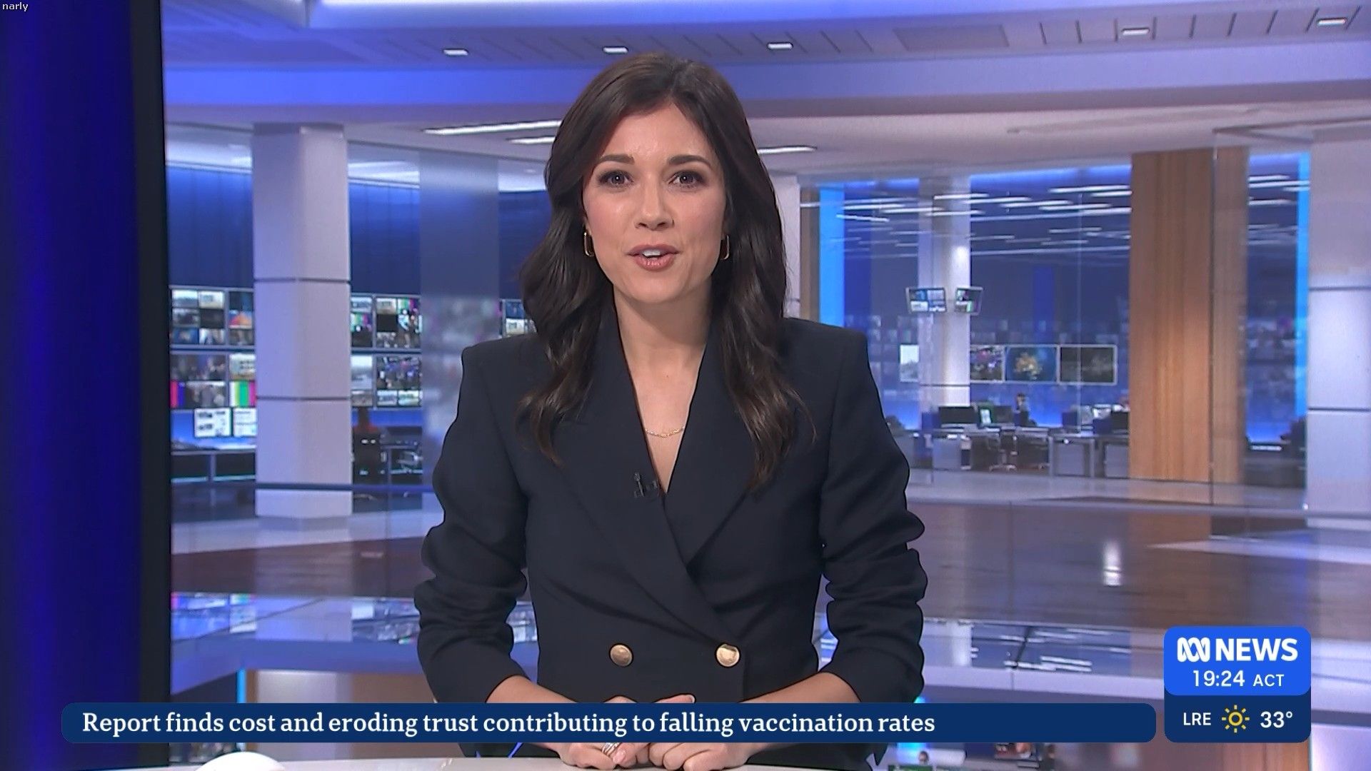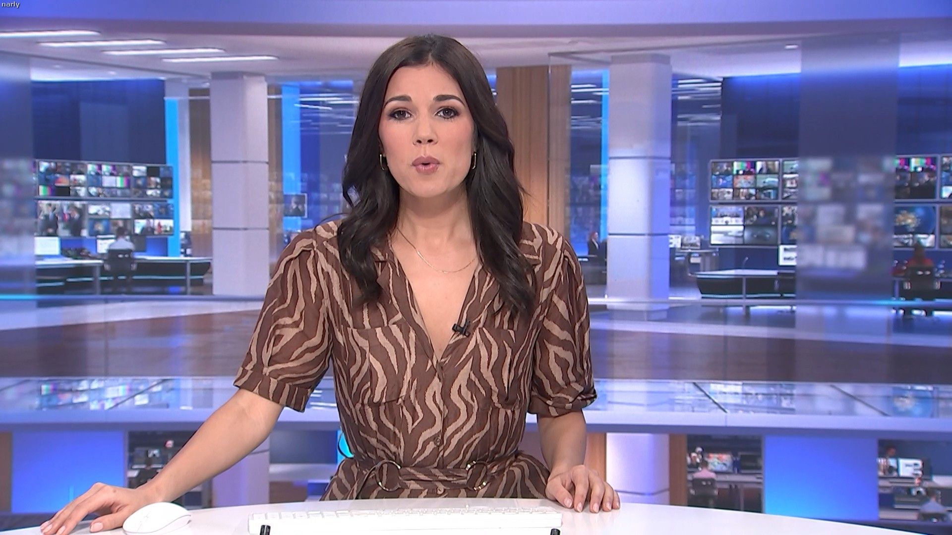 She has a finger over it. Going back through the caps, she doesn't always wear it.