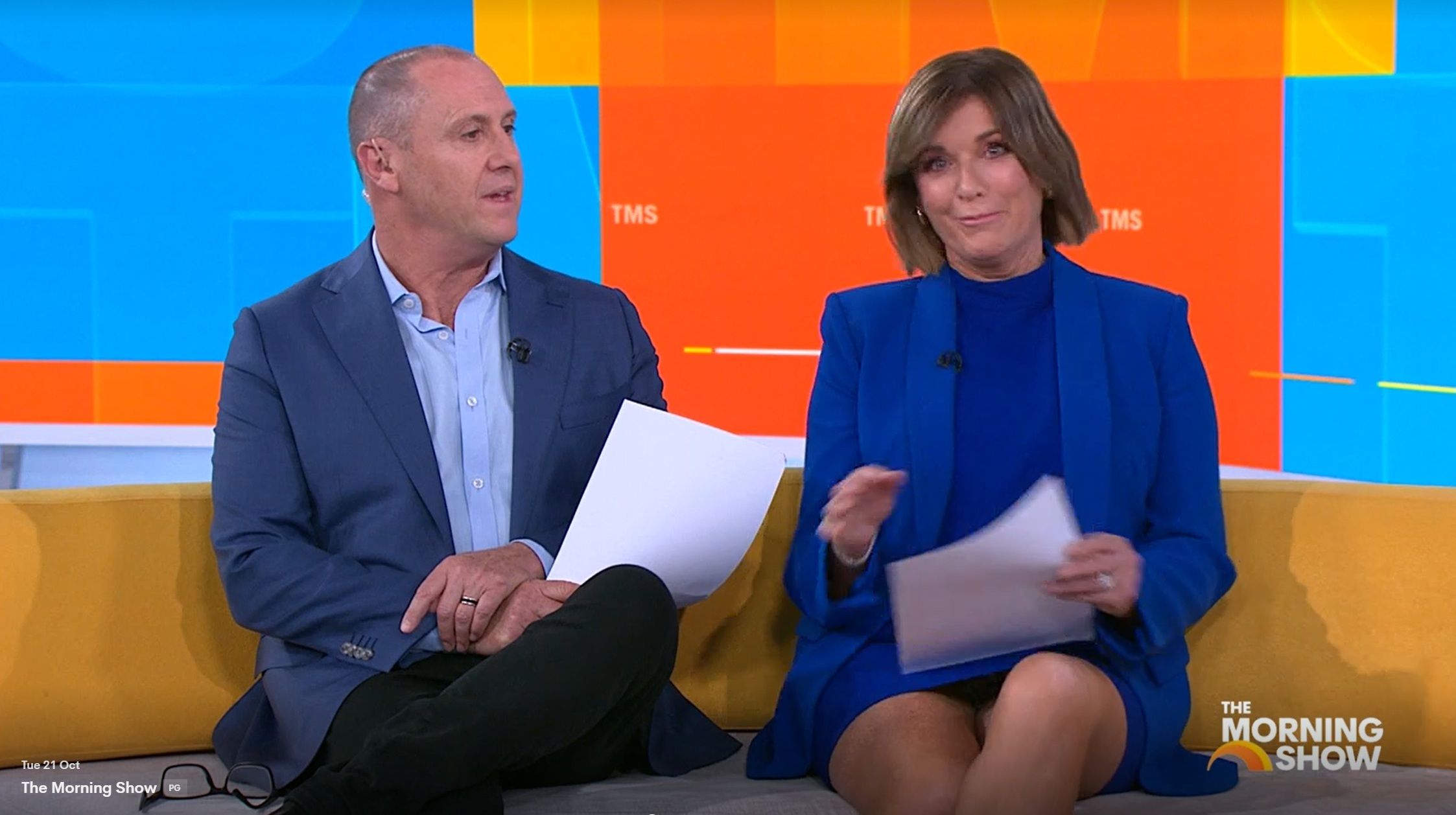 bigmac33 wrote: Could’ve been nothing, but Kylie did a quick cross of her legs and a little leg bounce at around 10.15 today. Could’ve been an interesting view. Was straight after the news update. I saw it. You could see everything.