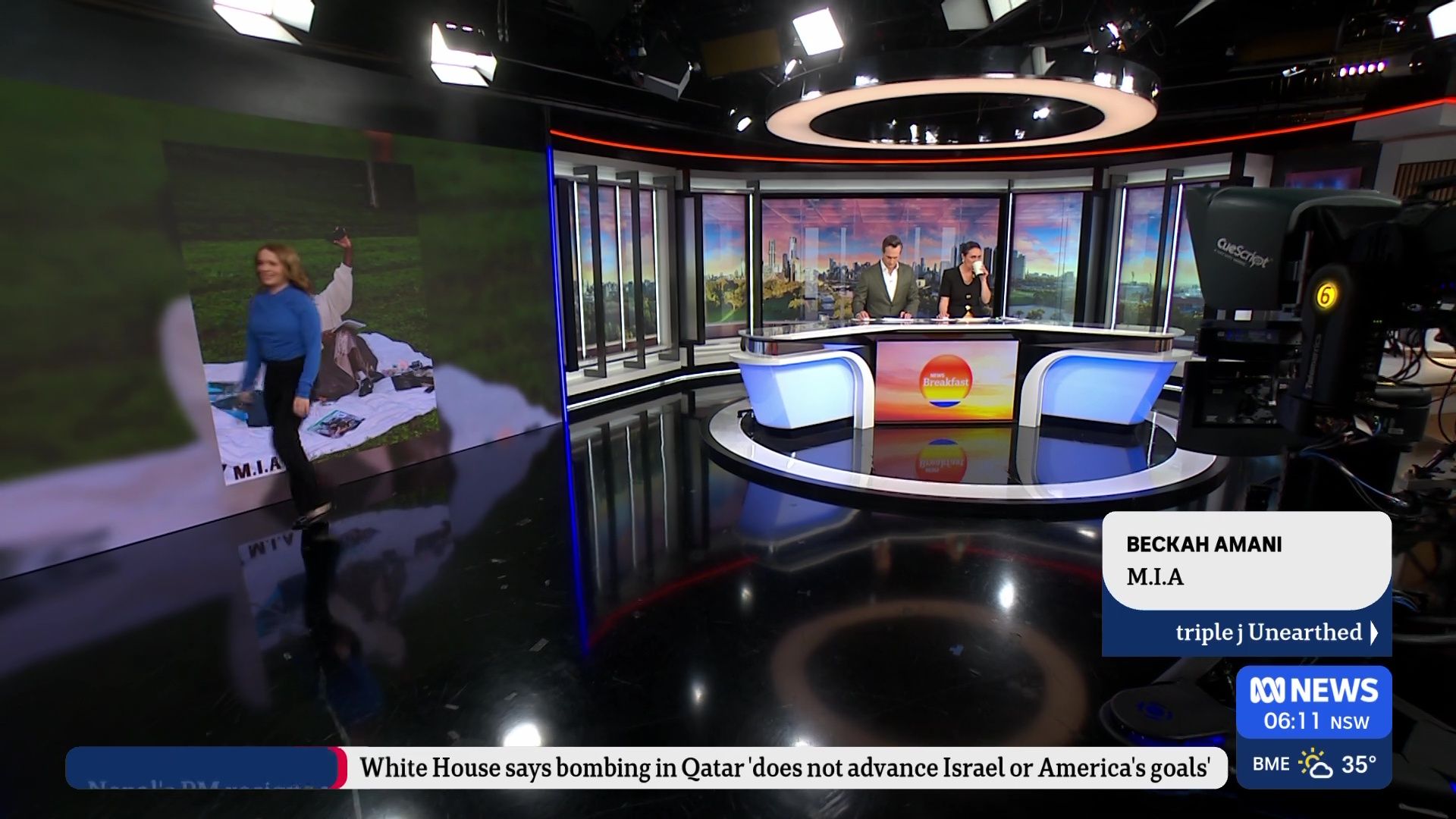 impalethe wrote: Today wearing a white leather skirt and nice top I reckon she should be the main reporter/anchor for the show