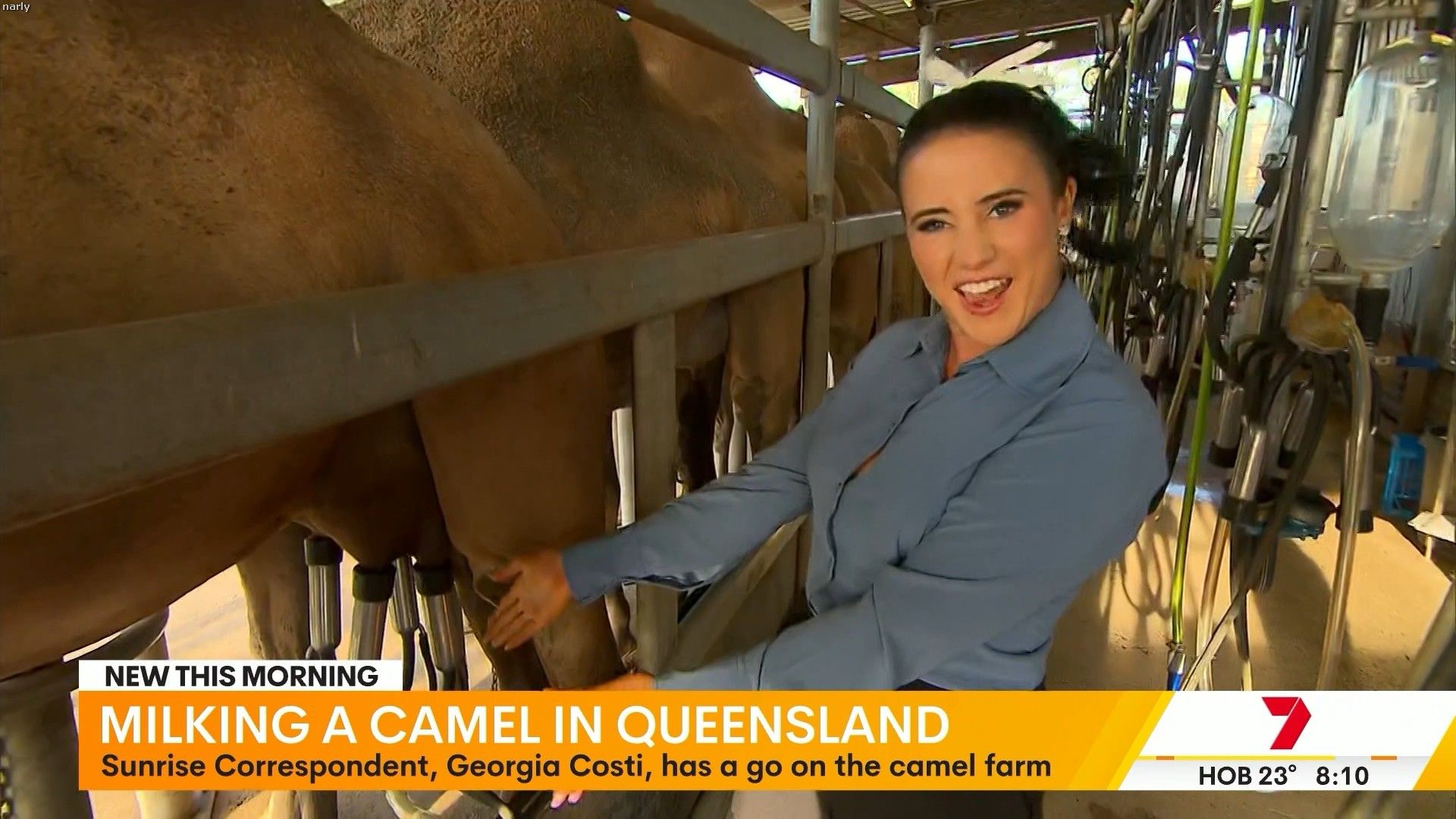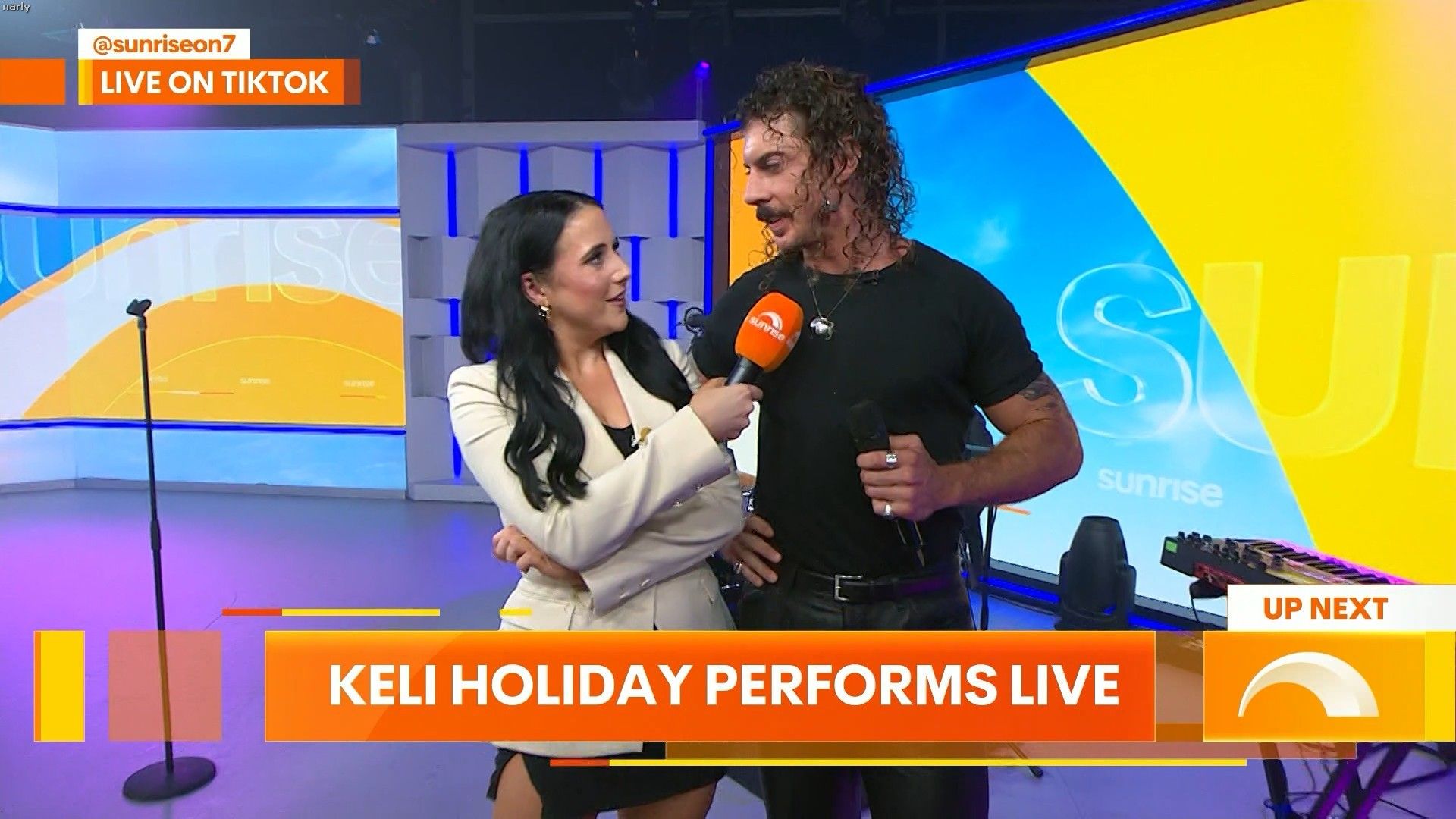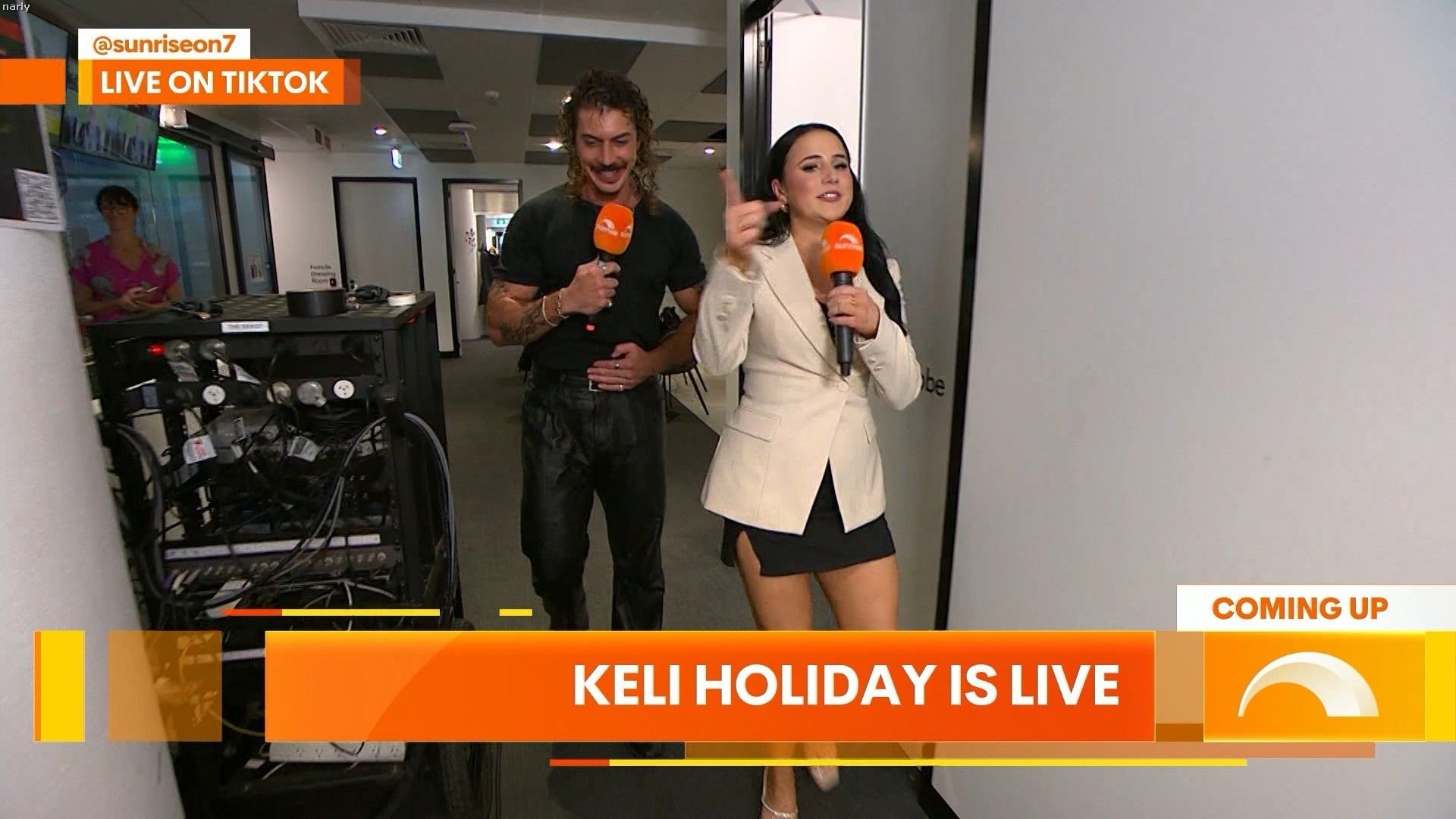 Georgia at 8.38 on sunrise today and she will be on again before the show finishes. Showing a lot of leg. Can we get some photos please. She is in the studio in Sydney