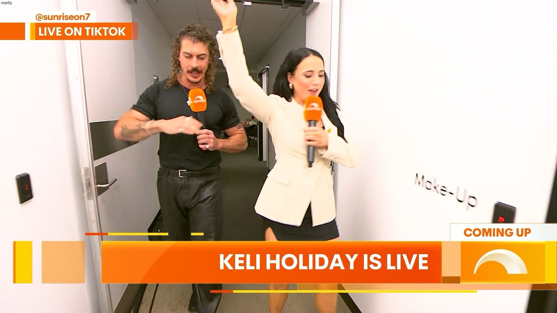 Georgia at 8.38 on sunrise today and she will be on again before the show finishes. Showing a lot of leg. Can we get some photos please. She is in the studio in Sydney