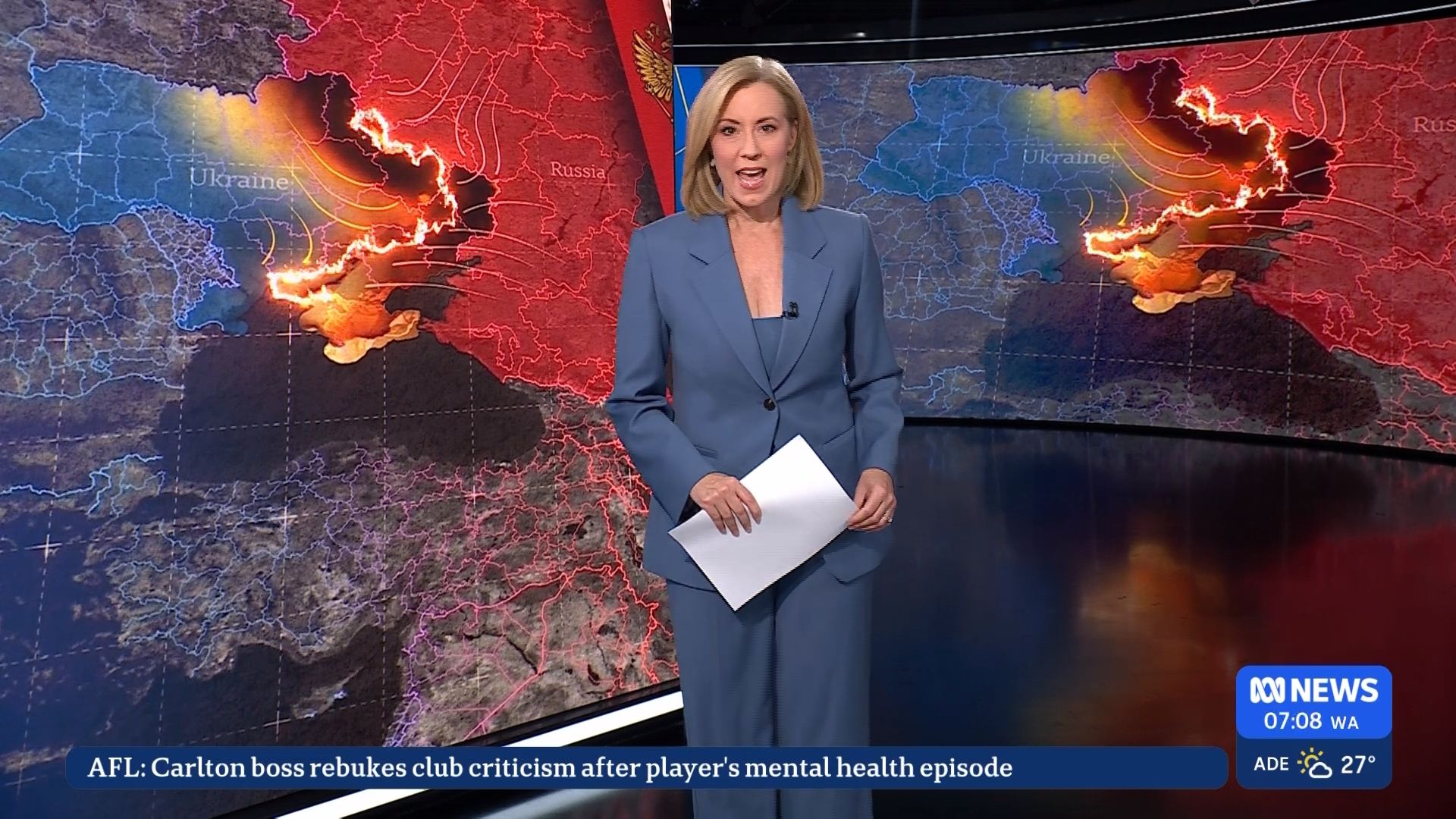 Good follow-up 20b ......Kath in a new(?) dark navy suit and showing a distracting amount of cleavage. However she struggled through the program, much of it dealing with the death of colleague James Valentine, who she is currently "filling-in" for (really permanent) on Tuesday Sydney afternoon radio.